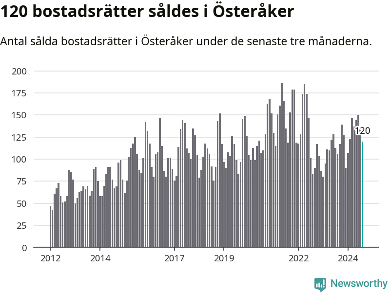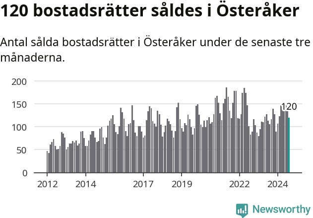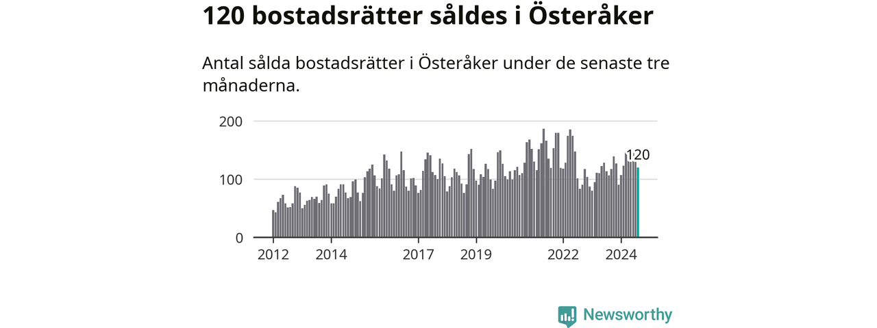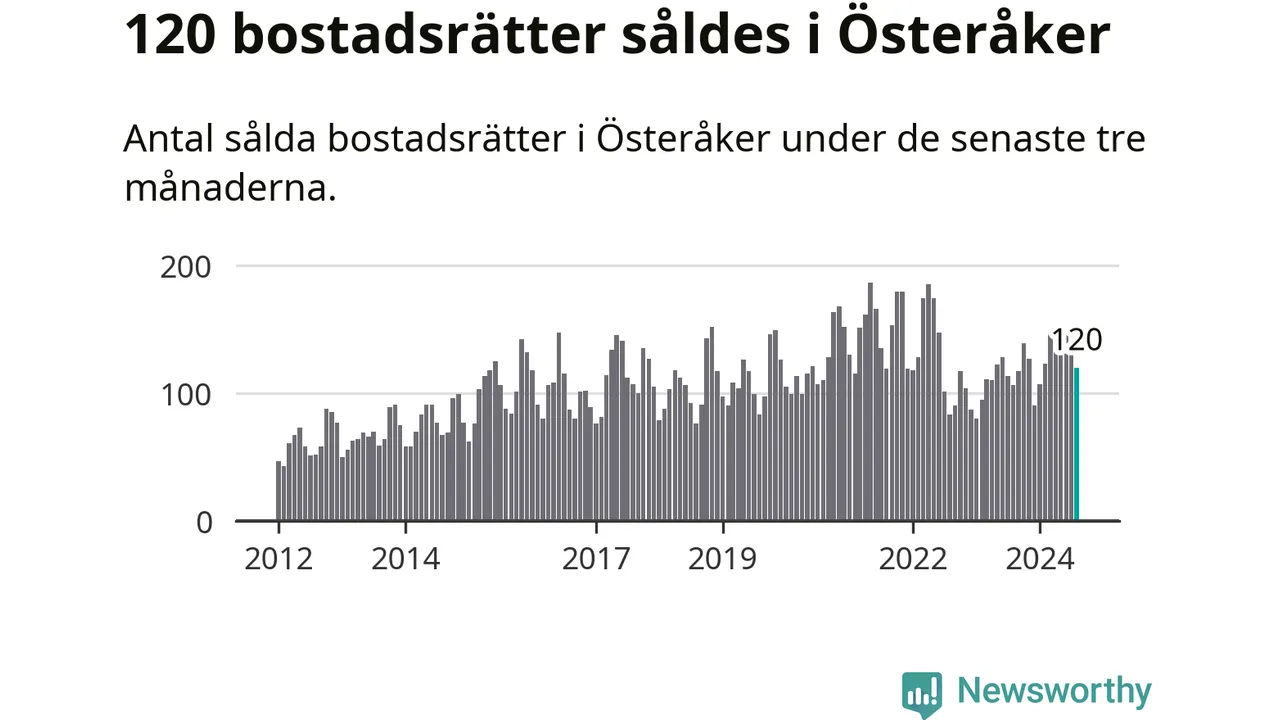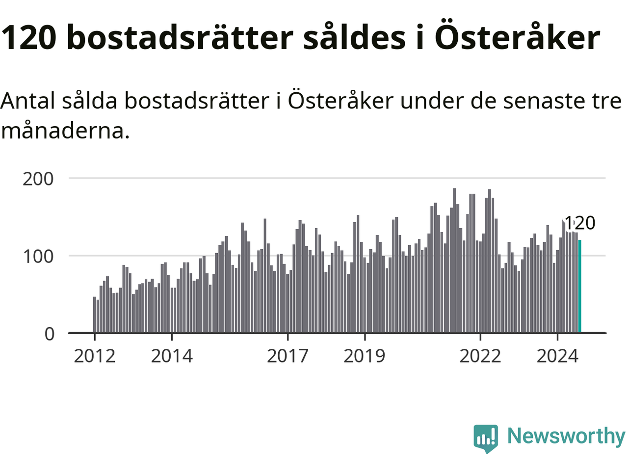 Sammanlagt såldes 120 bostadsrätter i Österåkers kommun mellan juni och augusti till ett genomsnittligt pris på 3,1 miljoner kronor. I fjol gjordes 106 affärer vid den här tiden på året.