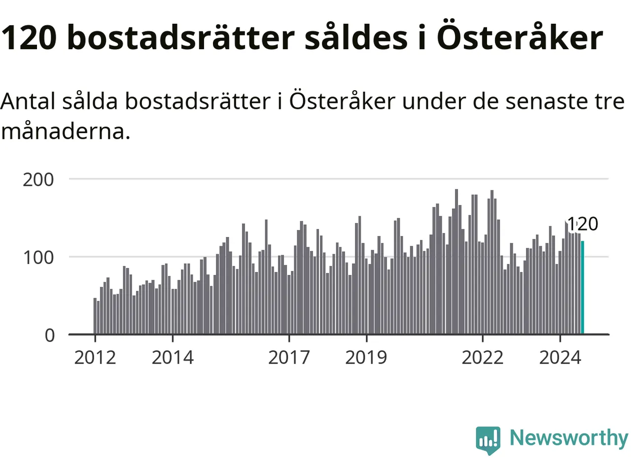 | Österåker | +5 % ▲ | 121 | 5,6 miljoner |