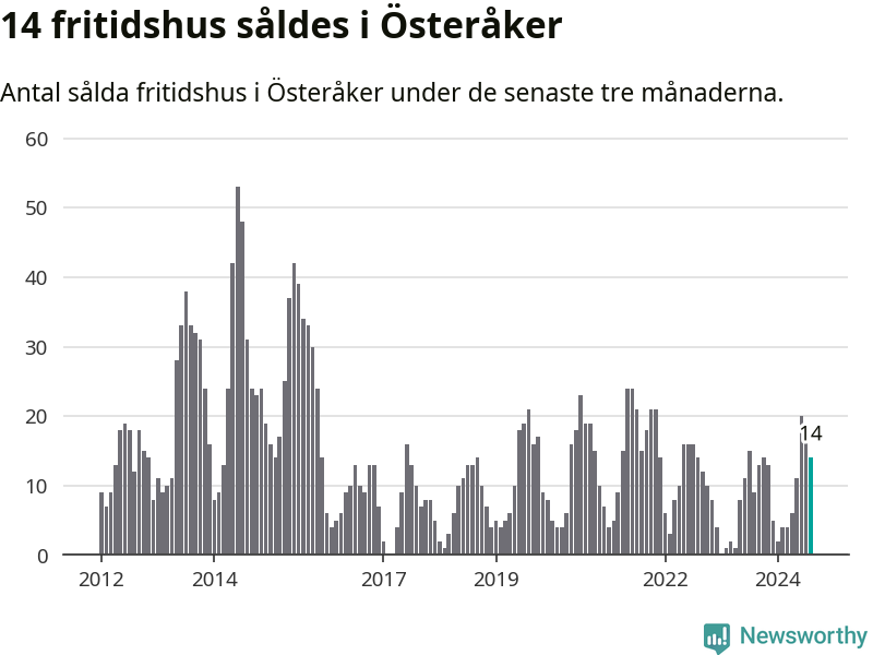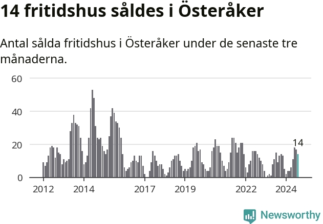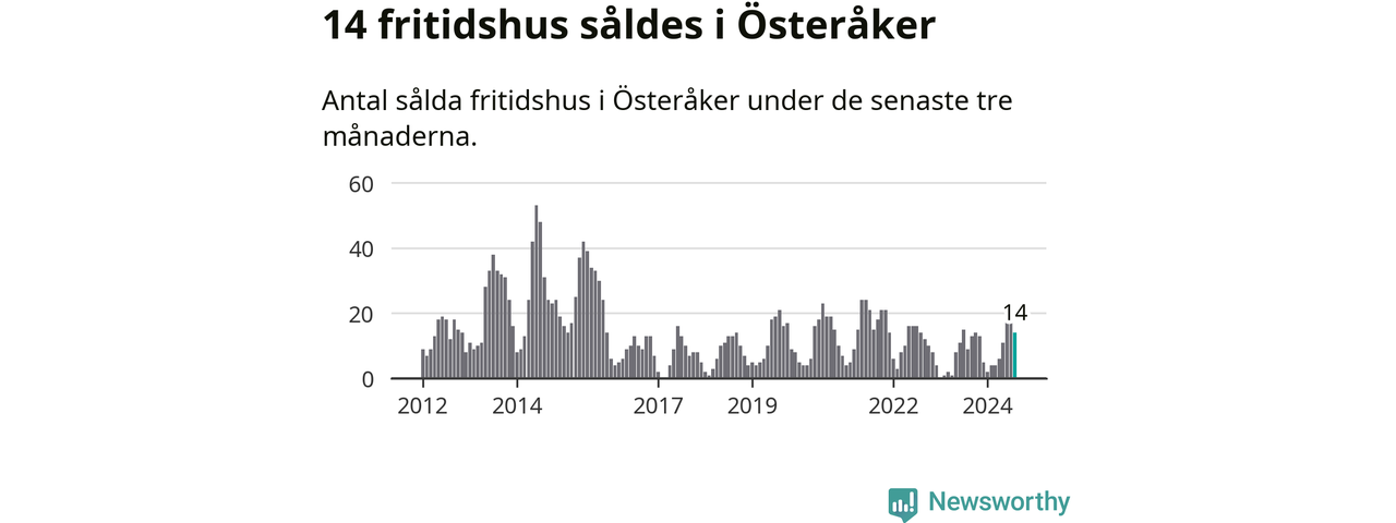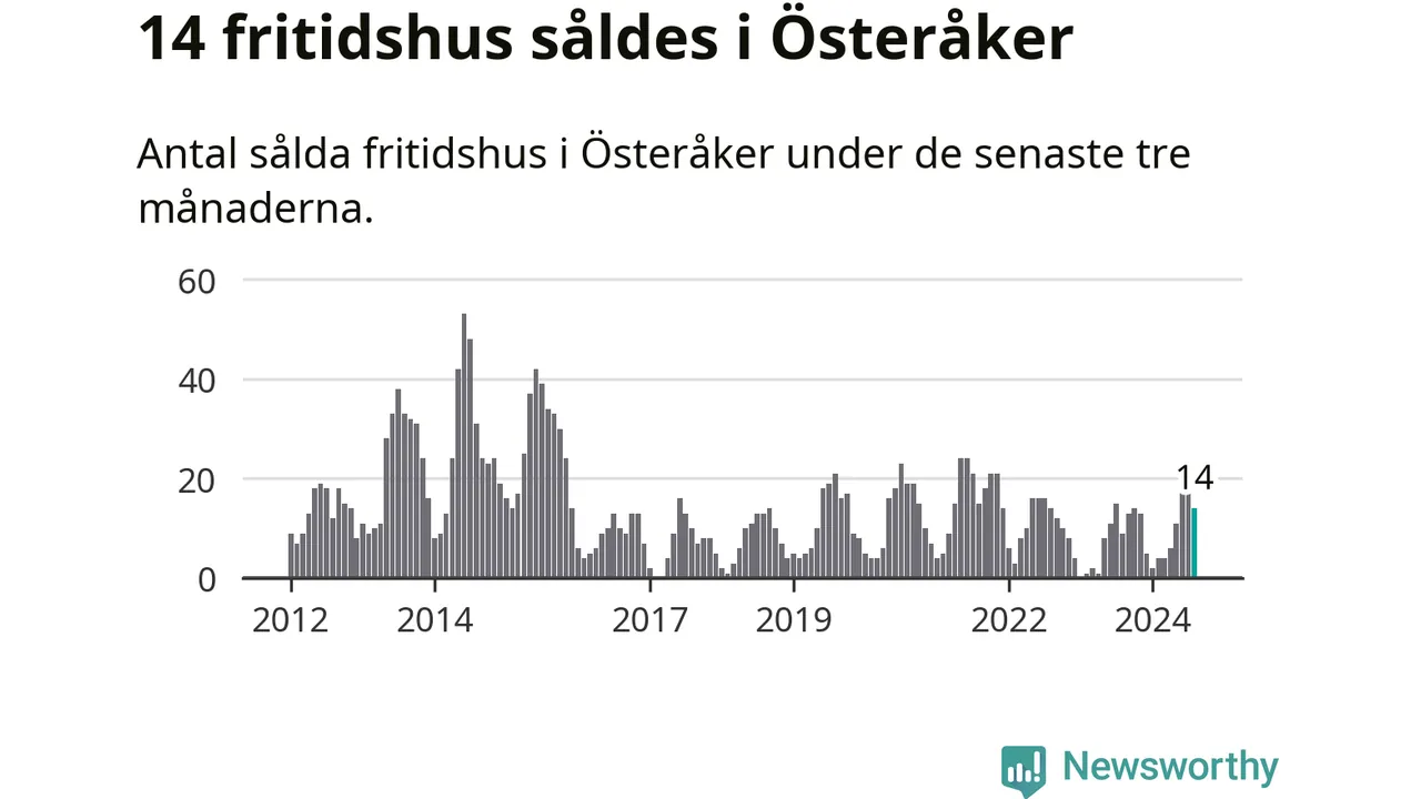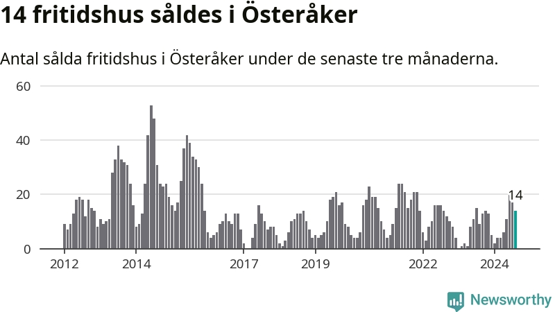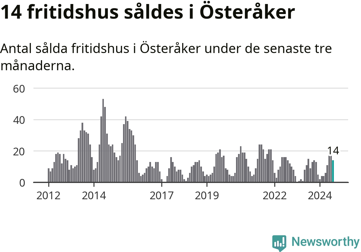 Sammanlagt såldes 14 fritidshus i Österåkers kommun mellan juni och augusti till ett genomsnittligt pris på 3,5 miljoner kronor. I fjol gjordes nio affärer vid den här tiden på året.