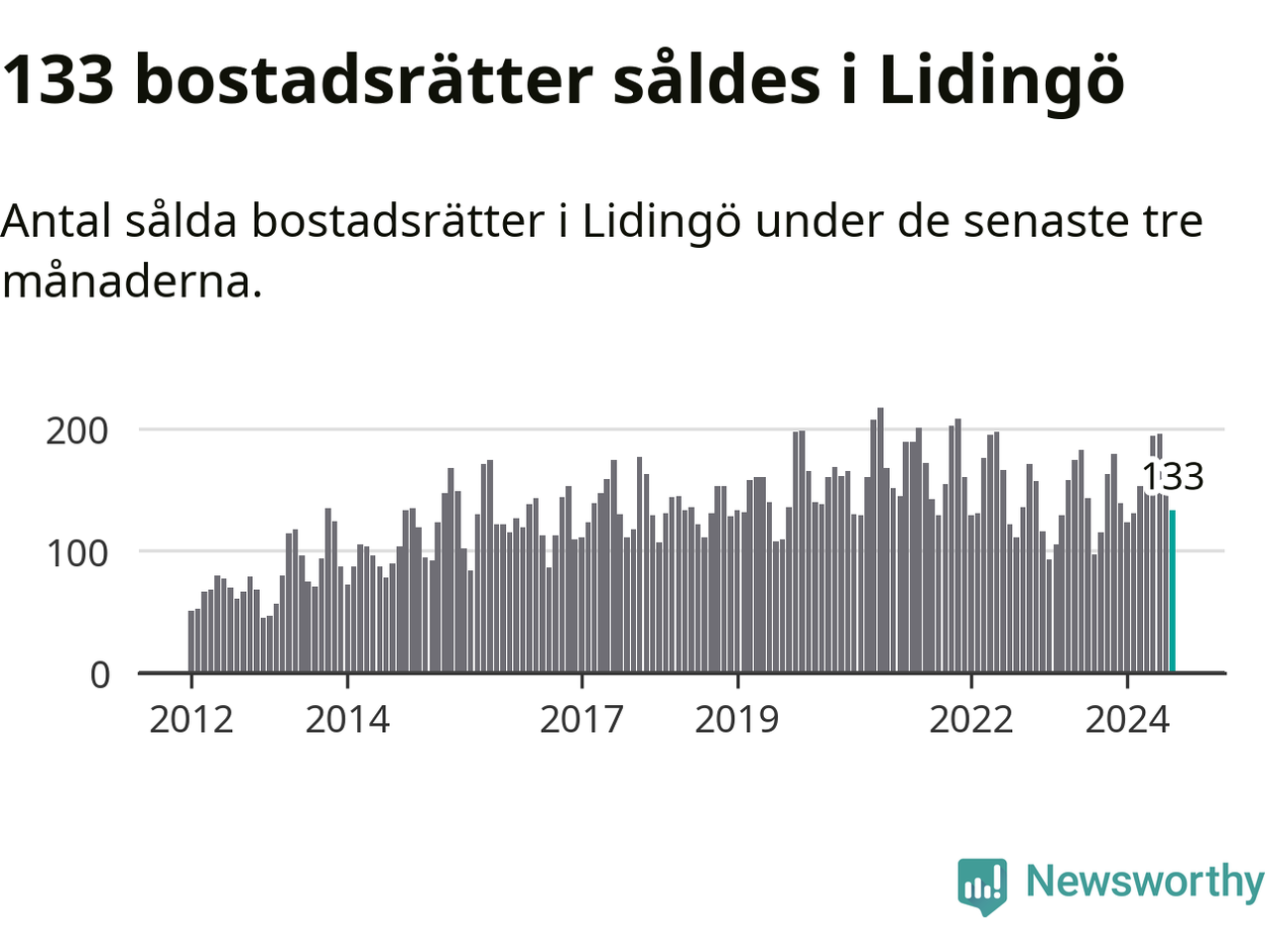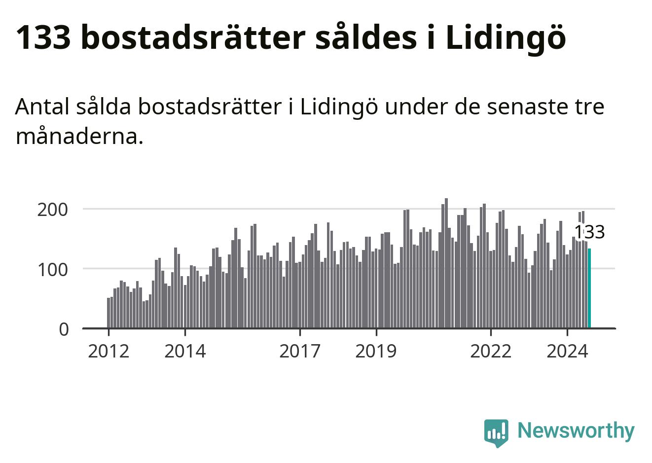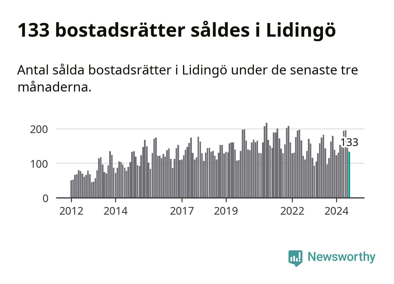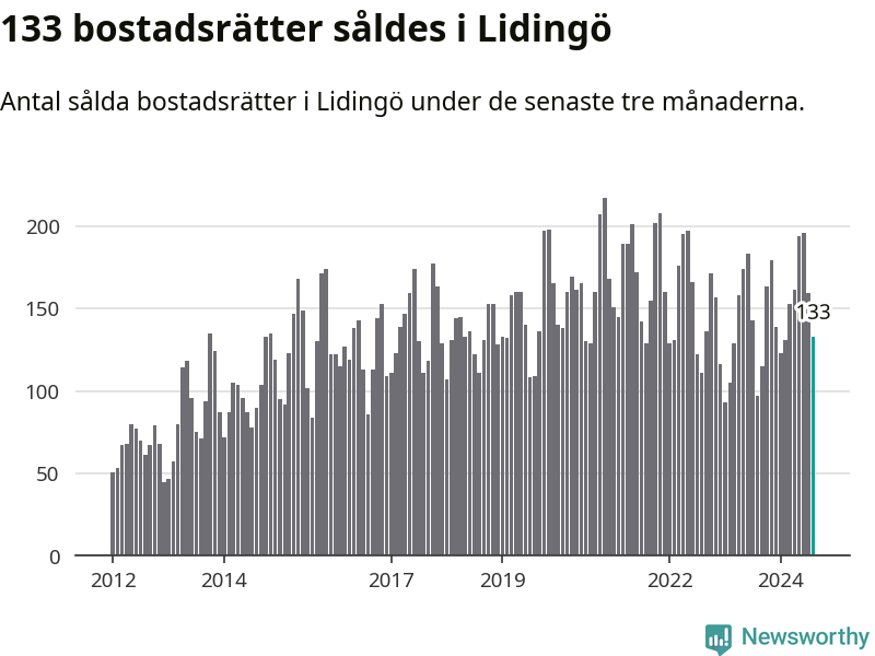 Sammanlagt såldes 133 bostadsrätter i Lidingö kommun mellan juni och augusti till ett genomsnittligt pris på 4,7 miljoner kronor. I fjol gjordes 97 affärer vid den här tiden på året.