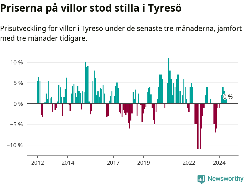 | Täby | +1 % ▲ | 320 | 3,5 miljoner |