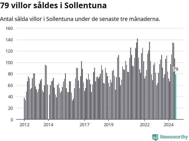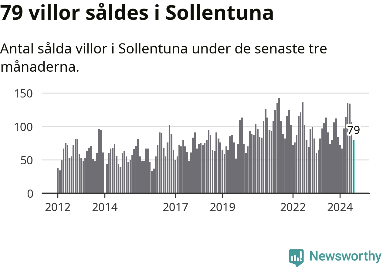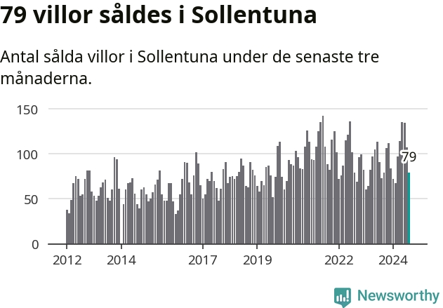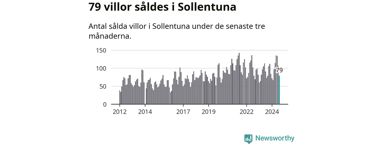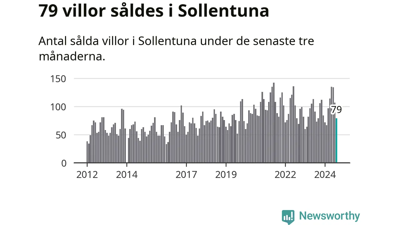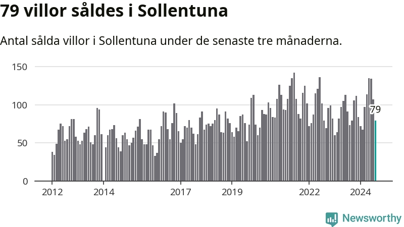 Sammanlagt såldes 79 villor i Sollentuna kommun mellan juni och augusti till ett genomsnittligt pris på 8,2 miljoner kronor. I fjol gjordes 73 affärer vid den här tiden på året.