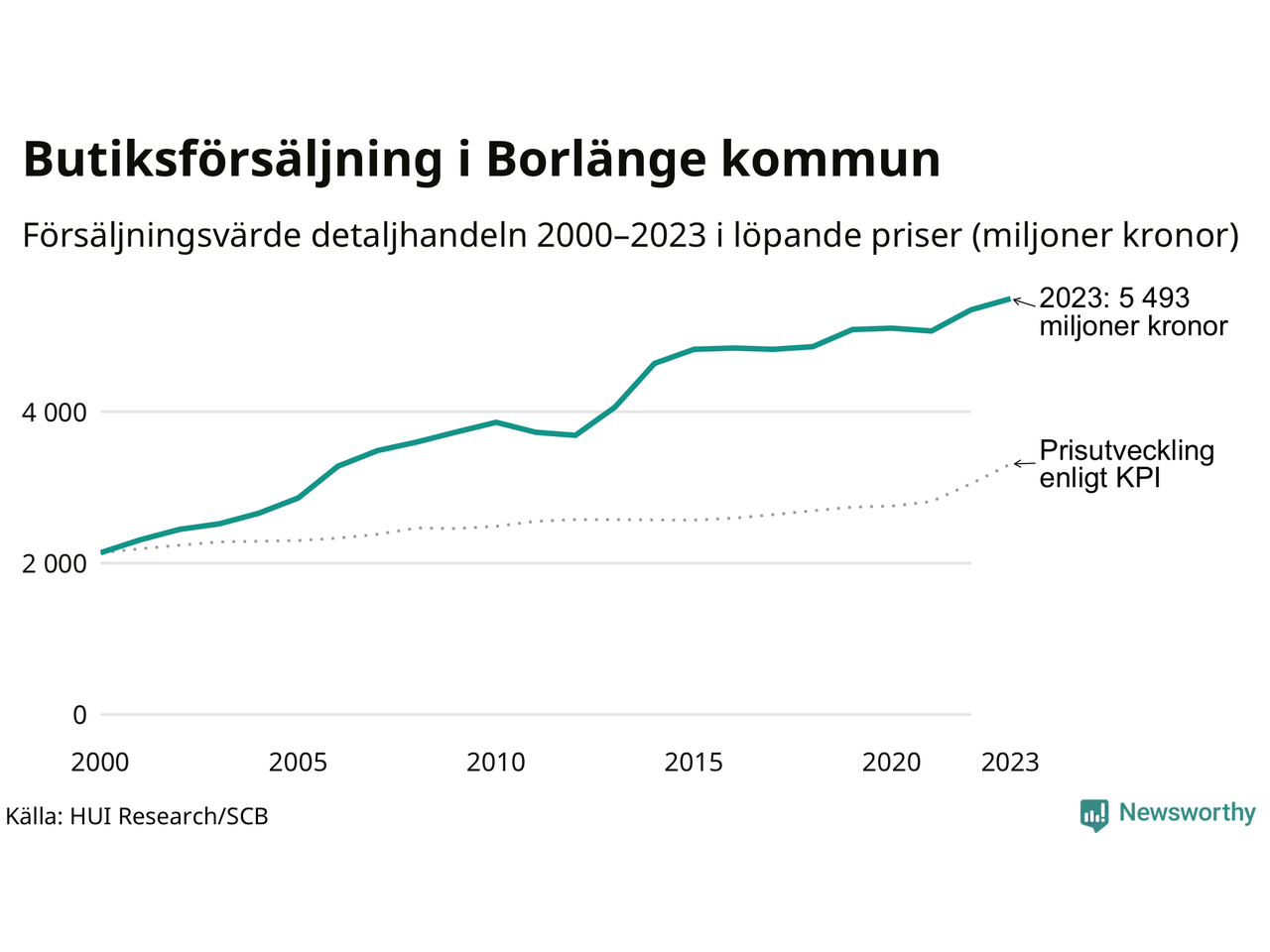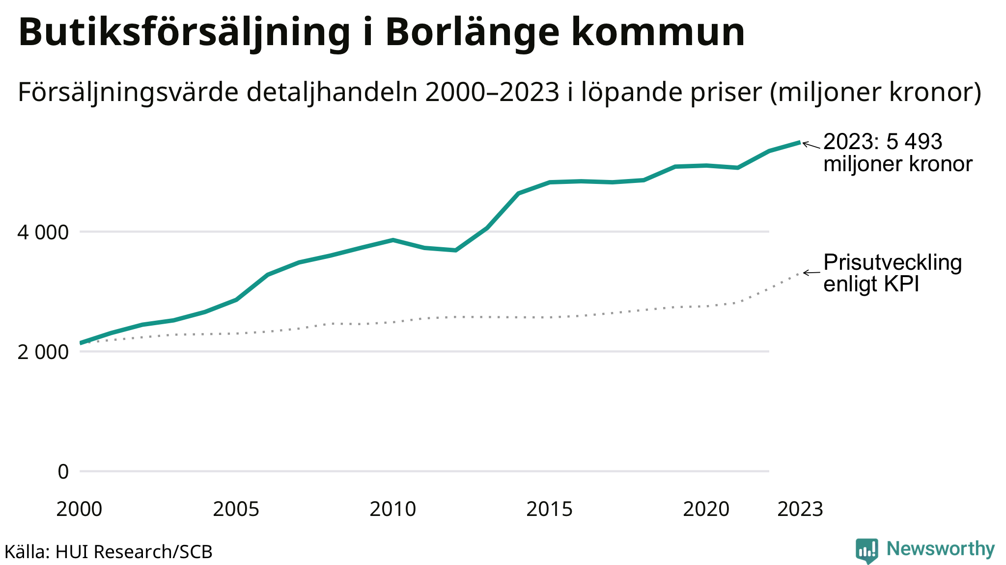 Försäljning i detaljhandeln sedan millennieskiftet i Borlänge-kommun