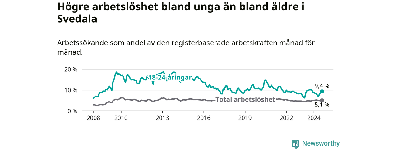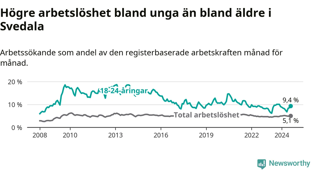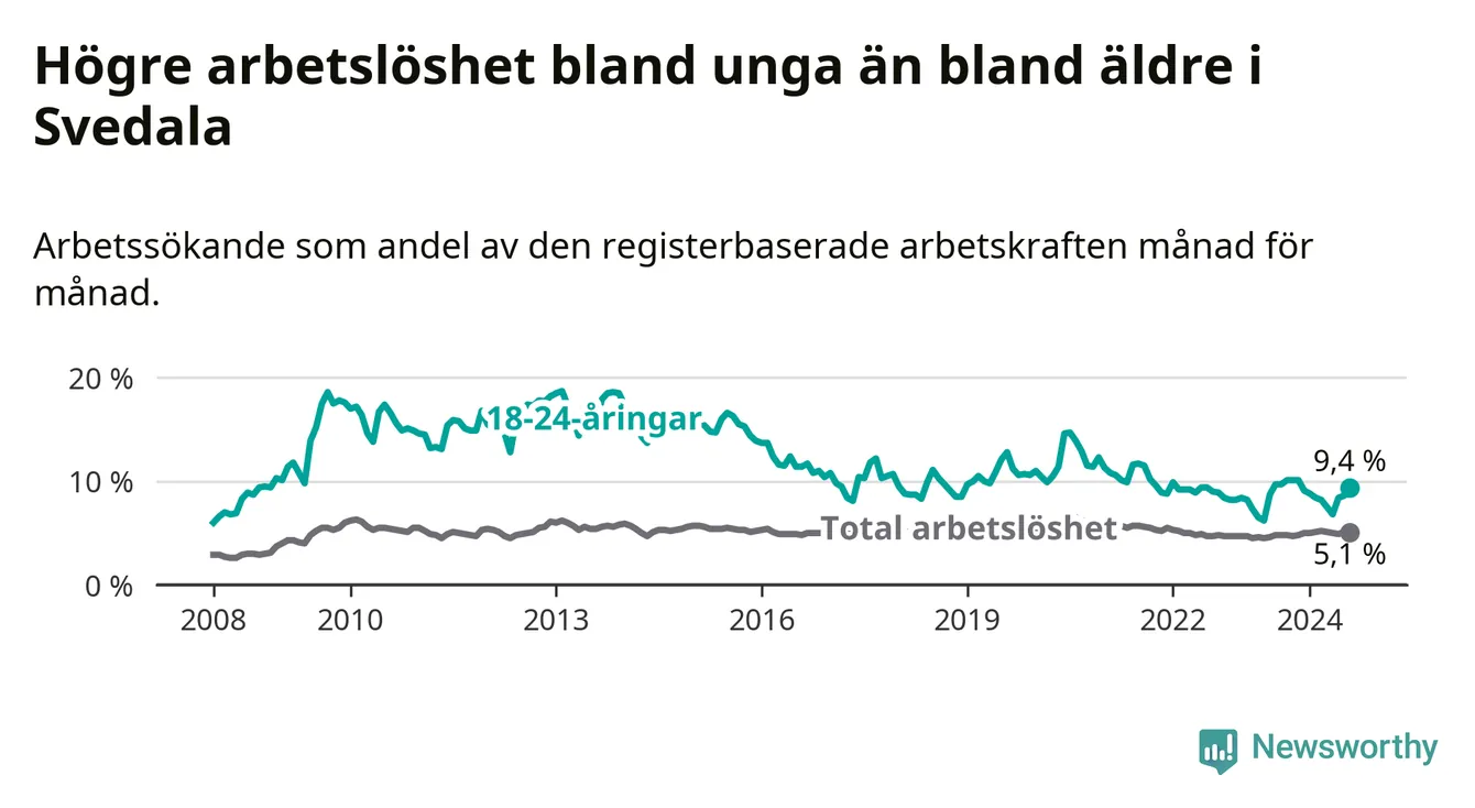 Graf: Arbetslöshet bland unga i Svedala kommun och Skåne län