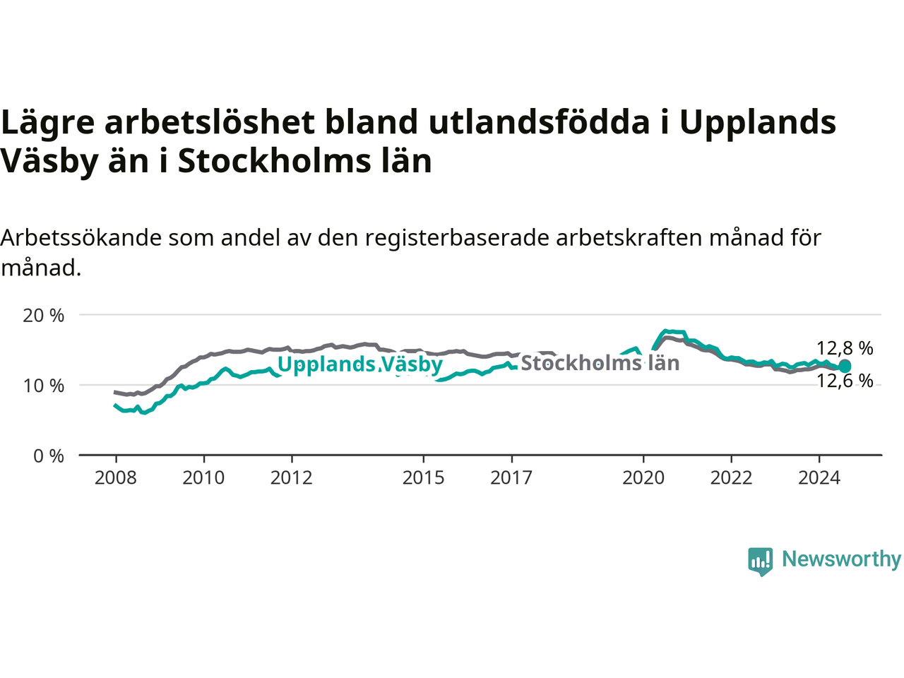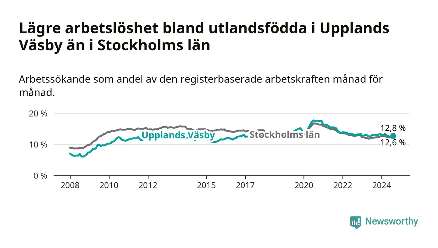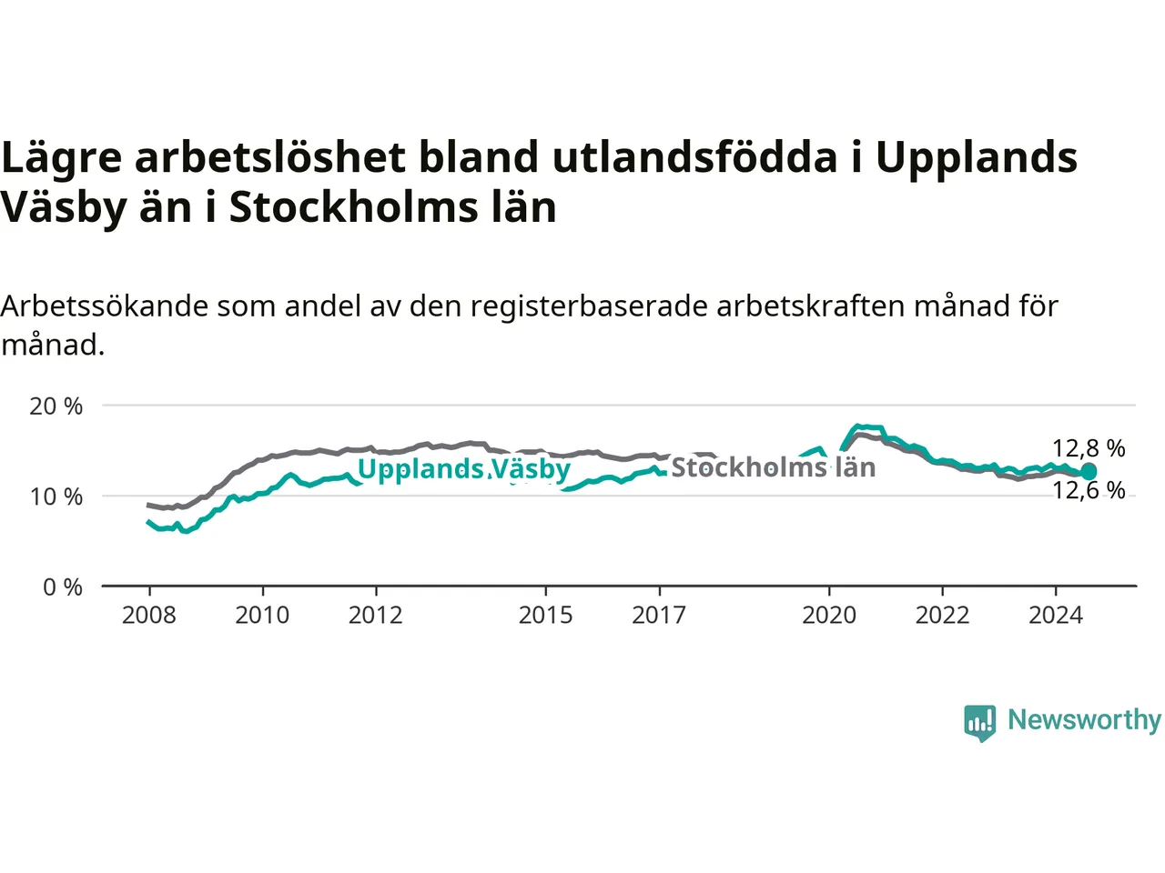 Arbetslösheten bland utlandsfödda i Upplands Väsby faller – medan den stiger i andra kommuner i Stockholms län