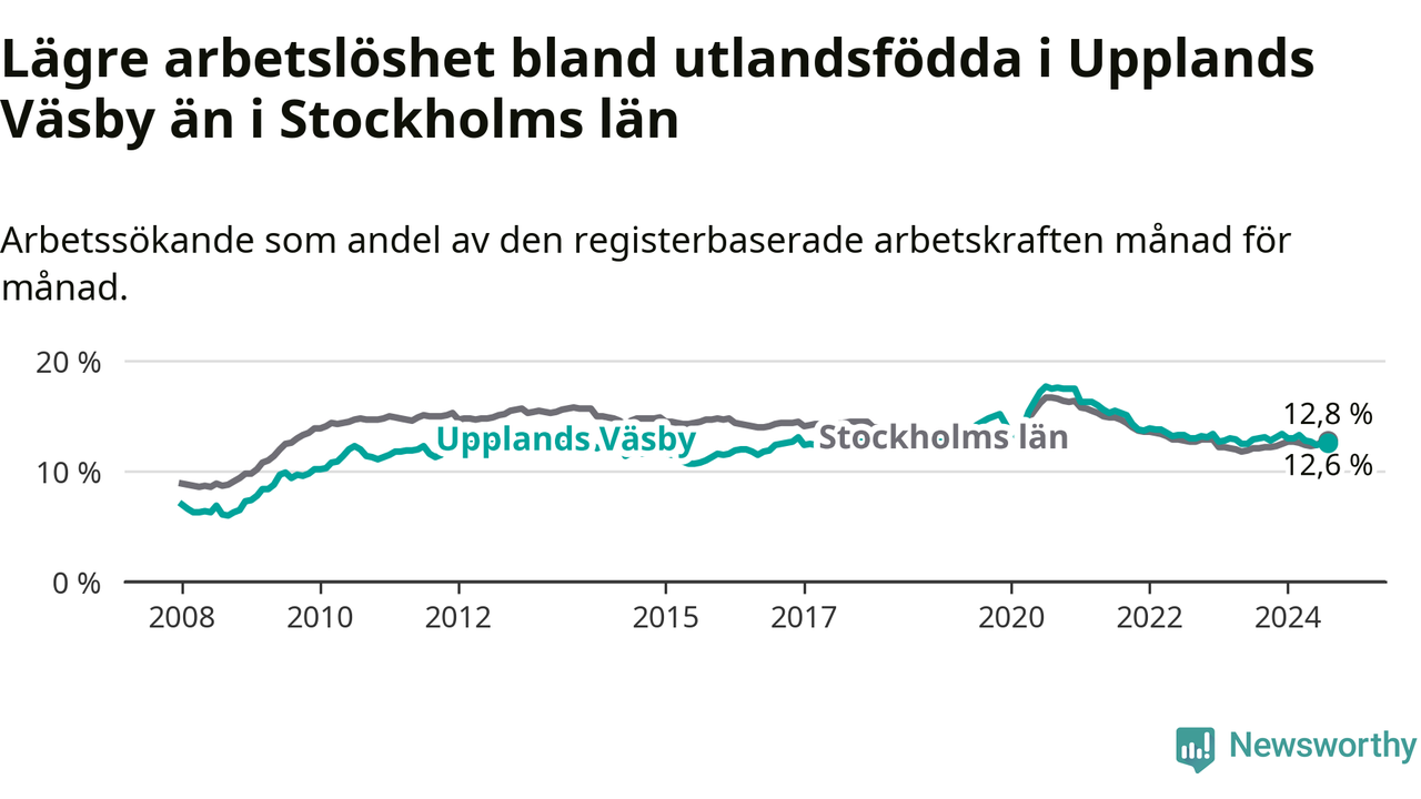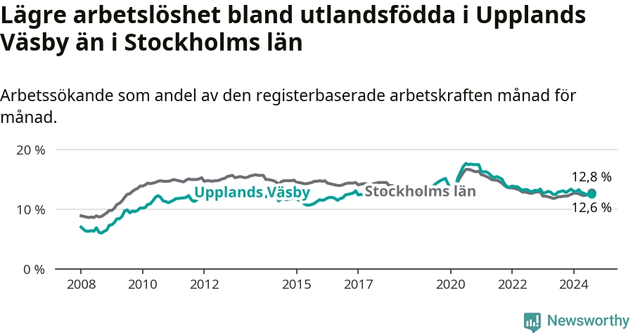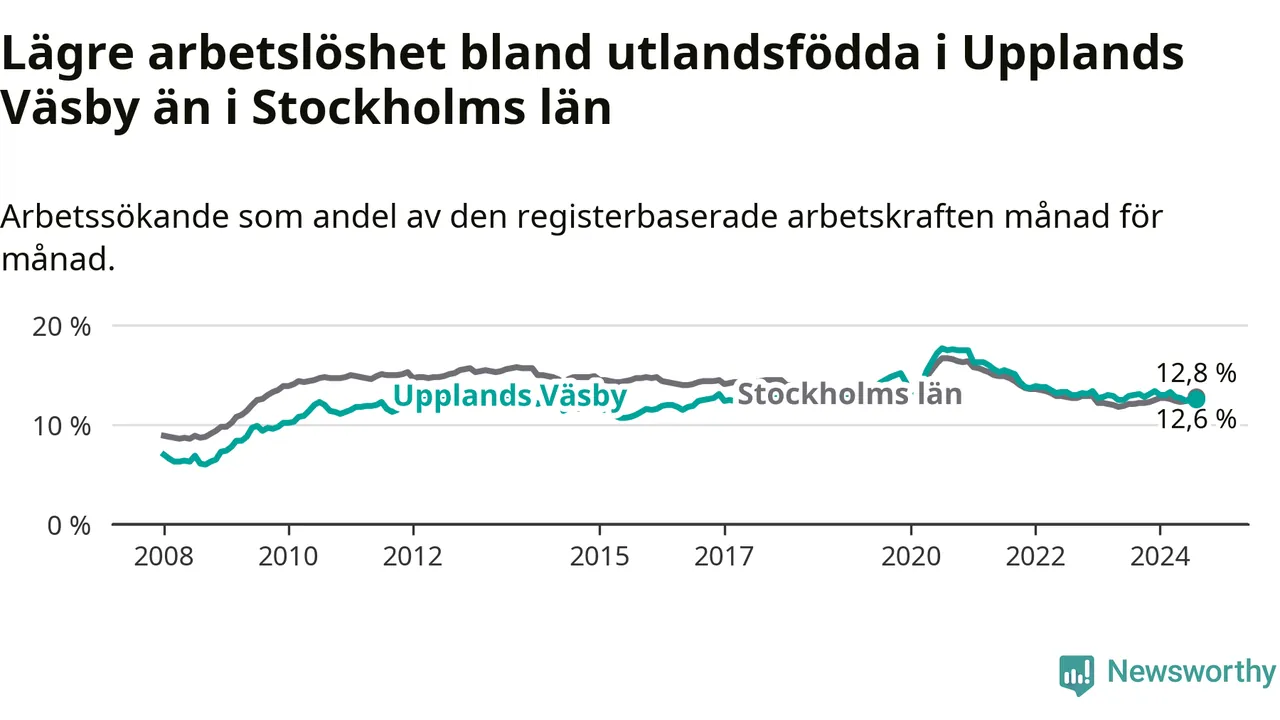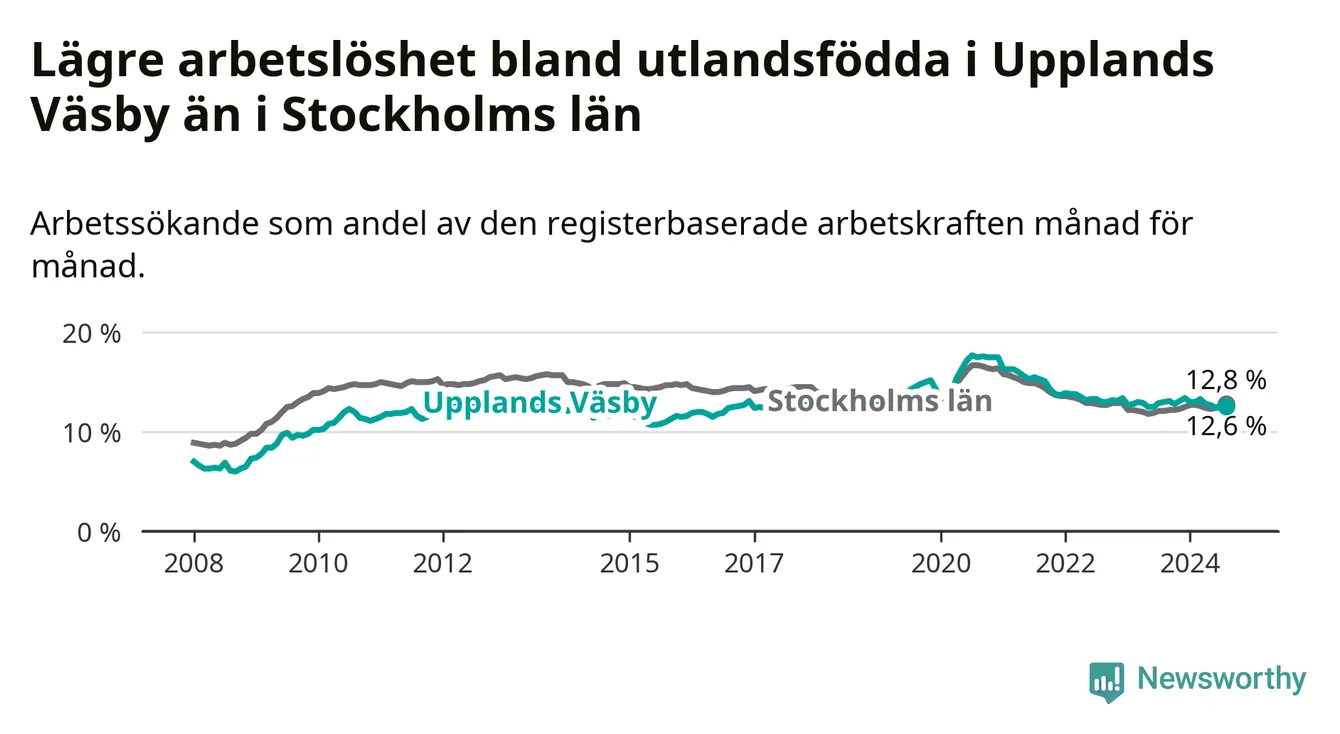 Arbetslösheten bland utlandsfödda i Upplands Väsby faller – medan den stiger i andra kommuner i Stockholms län