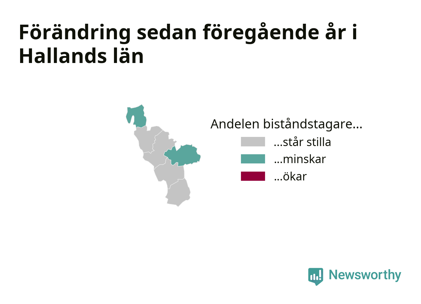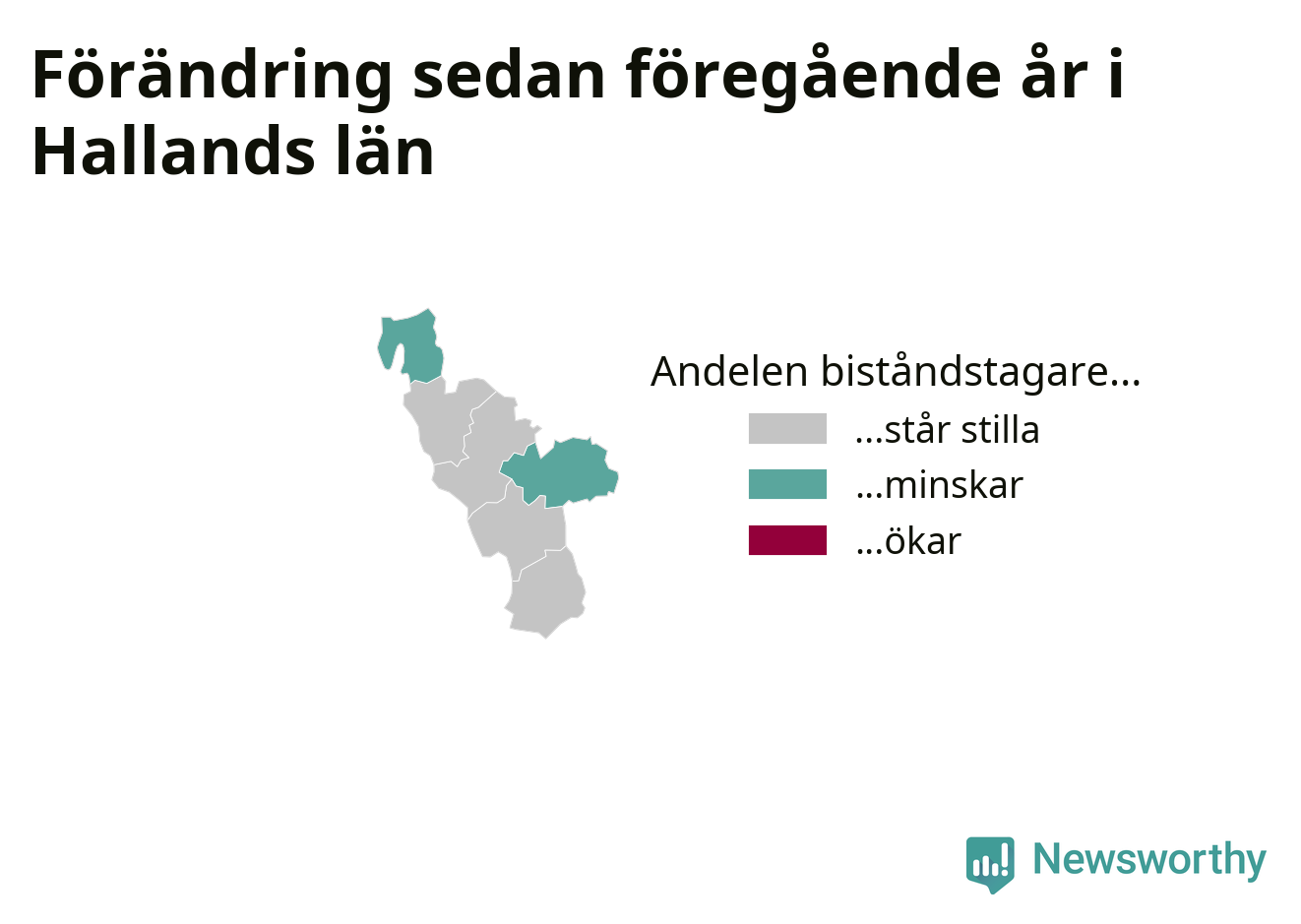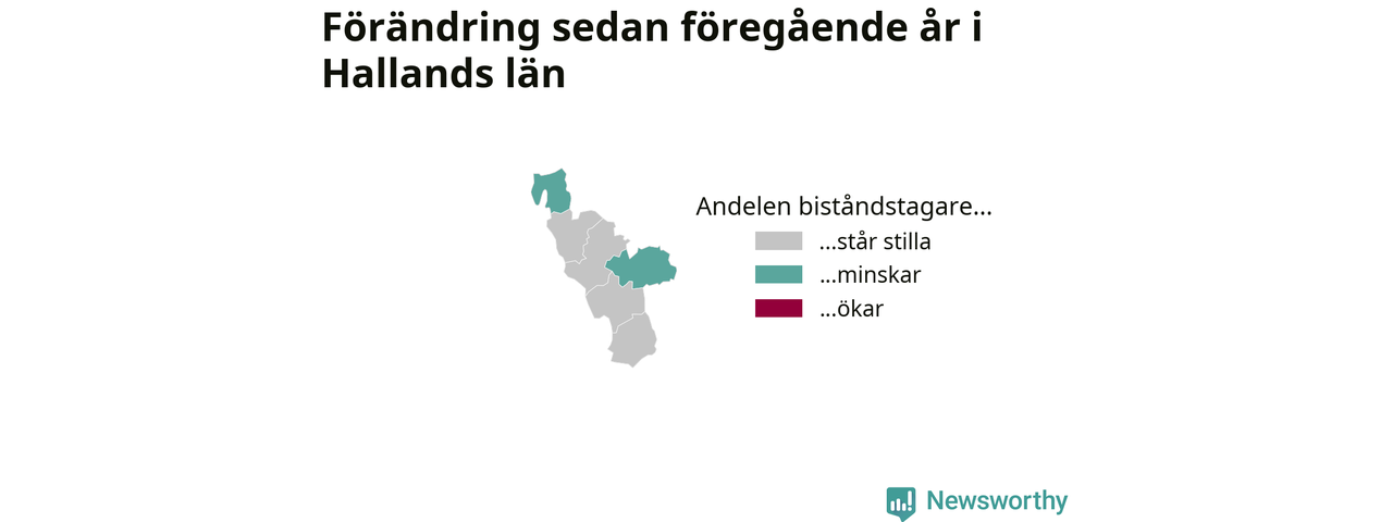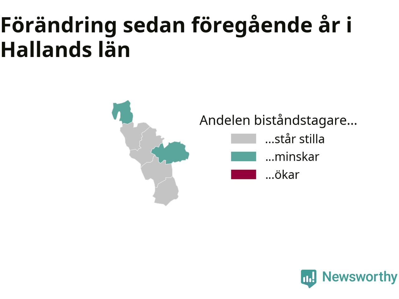 I Halland som helhet var andelen biståndstagare 0,7 procent, vilket är ungefär samma nivå som månaden innan.
