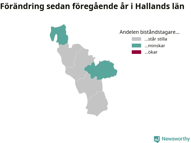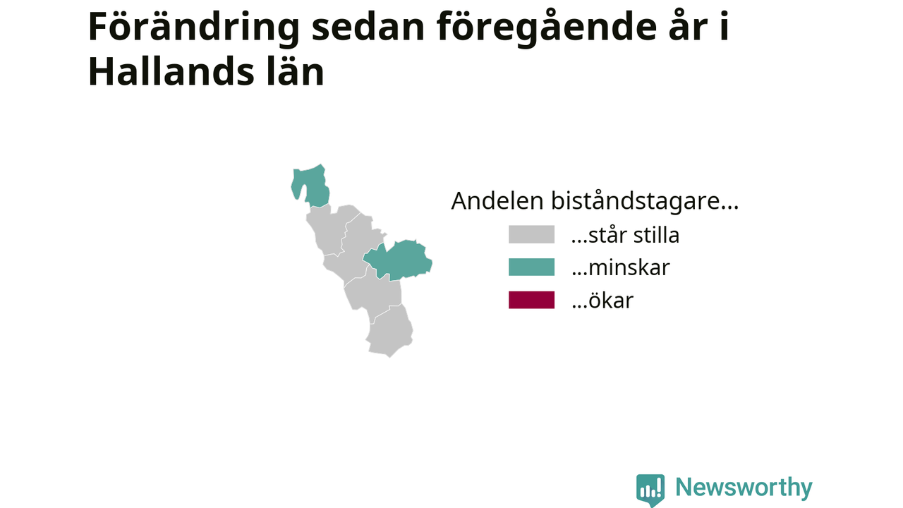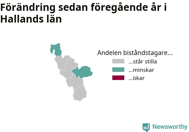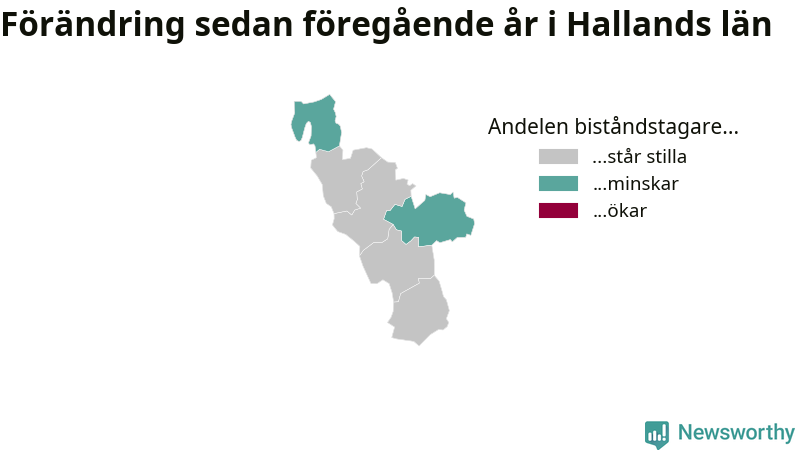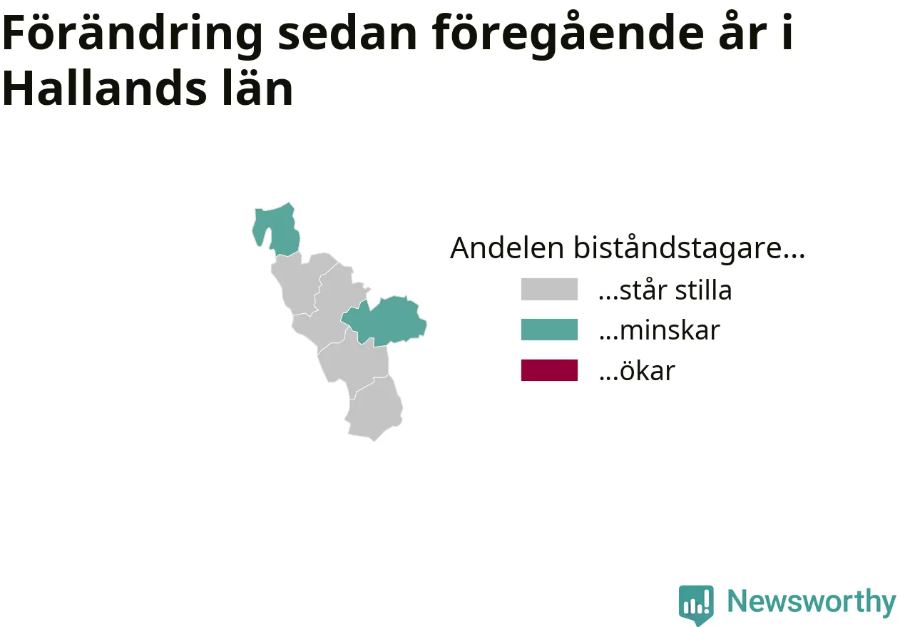 I Halland som helhet var andelen biståndstagare 0,7 procent, vilket är ungefär samma nivå som månaden innan.