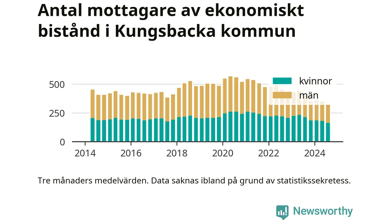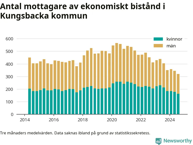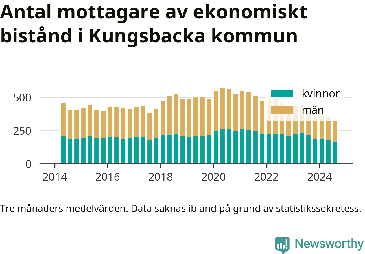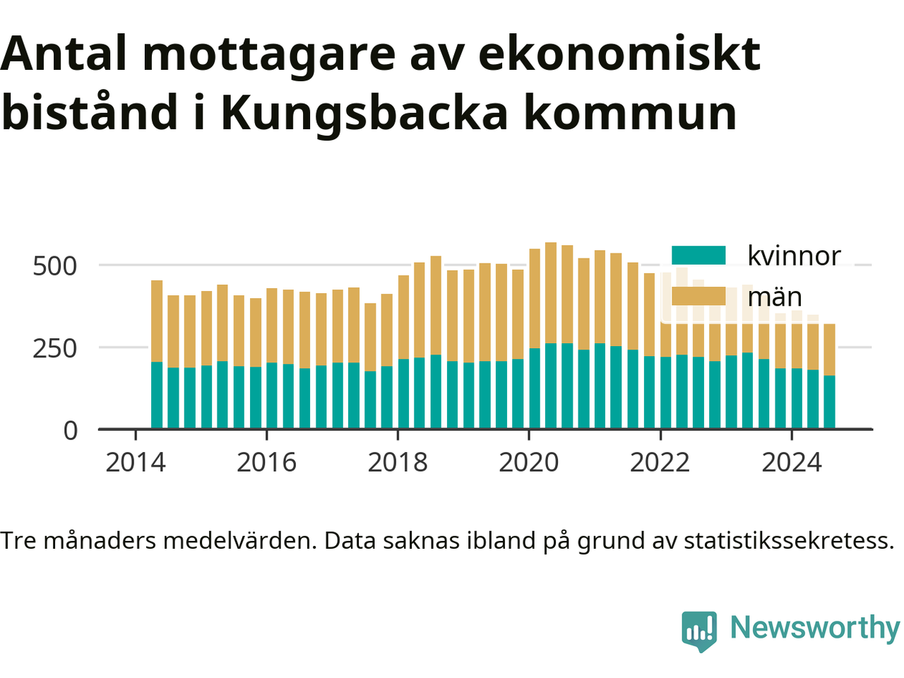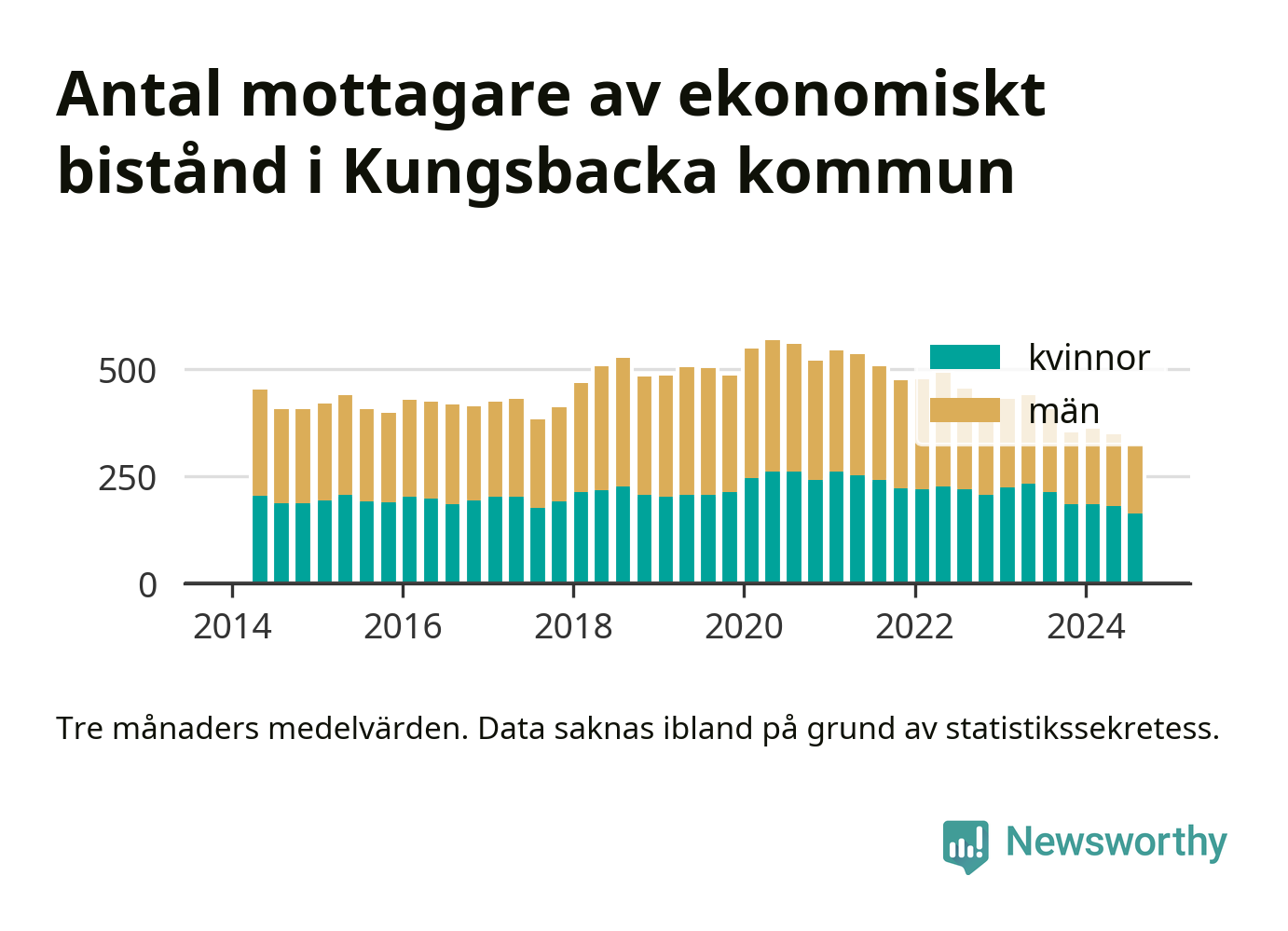 I genomsnitt 321 personer per månad fick ekonomiskt bistånd i Kungsbacka kommun under sommarmånaderna (juni till augusti), vilket motsvarar 0,4 procent av den vuxna befolkningen. Det är marginellt mindre än i våras, och något mindre andel än under sommaren för ett år sedan.