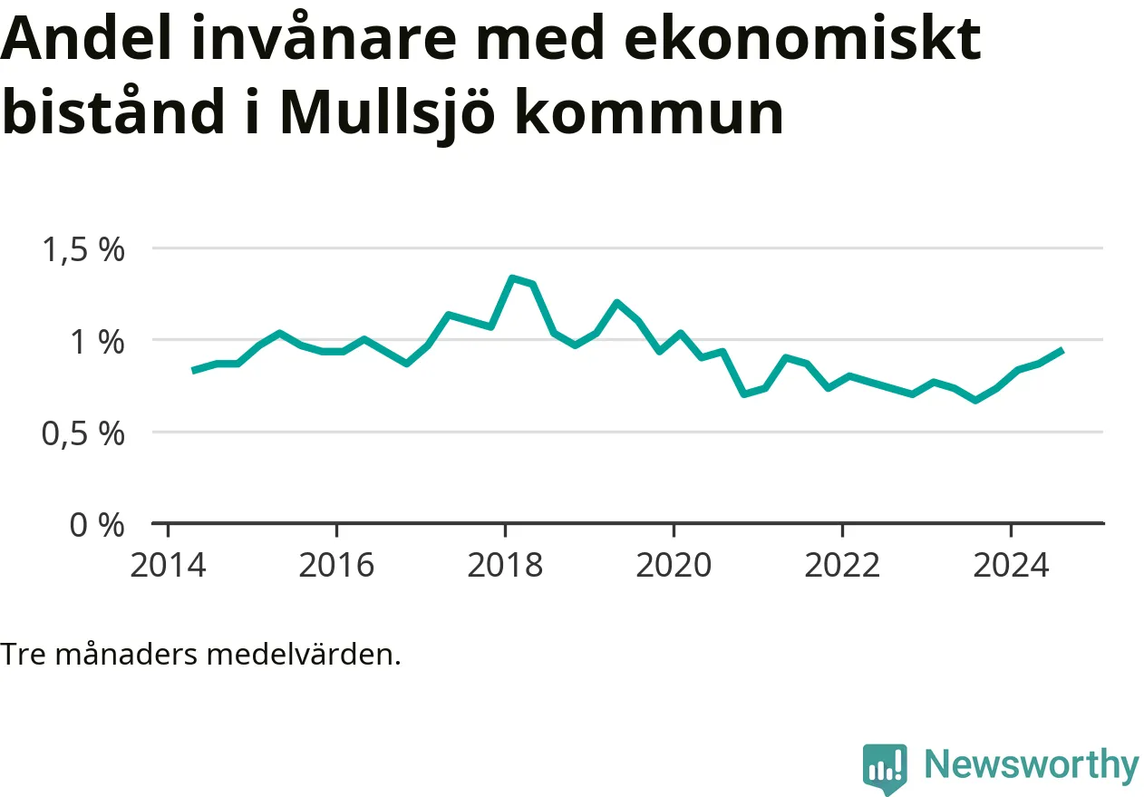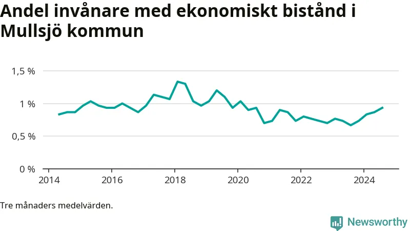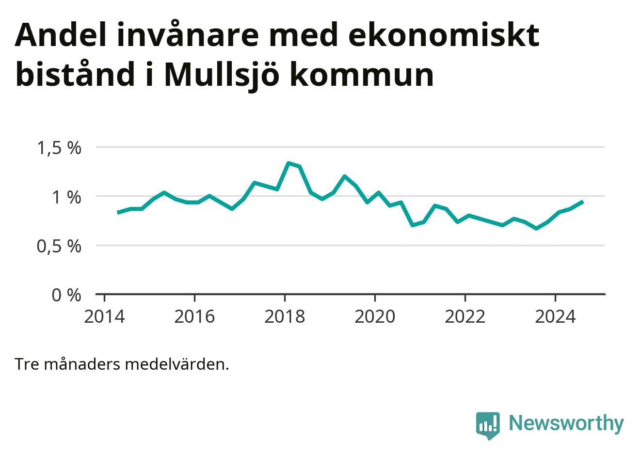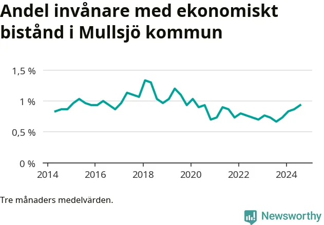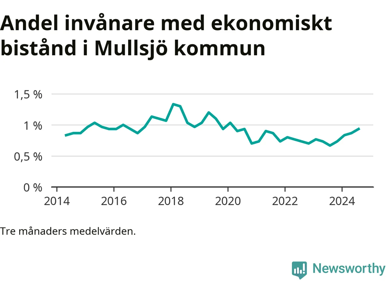Andelen invånare med ekonomiskt bistånd i Mullsjö kommun var högre under sommaren jämfört med motsvarande period året innan. Det visar den senaste, preliminära statistiken från Socialstyrelsen.