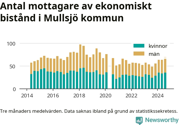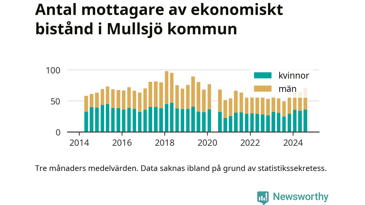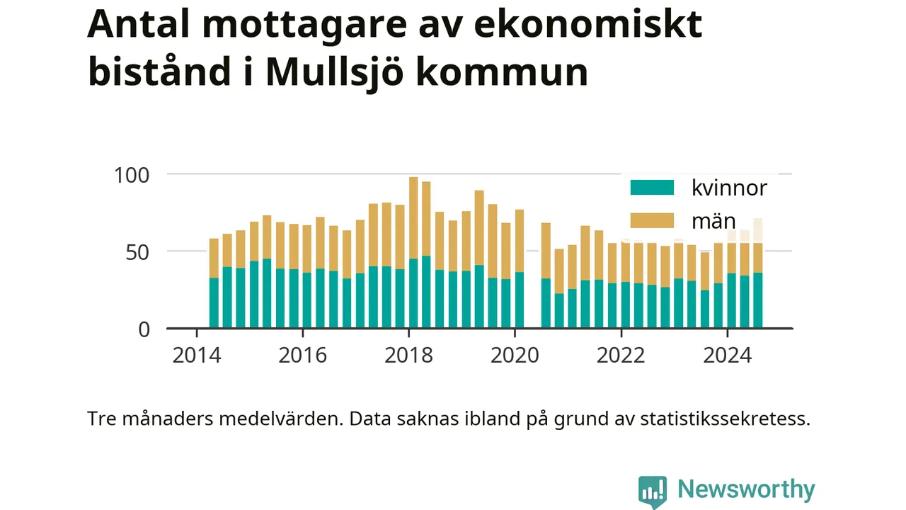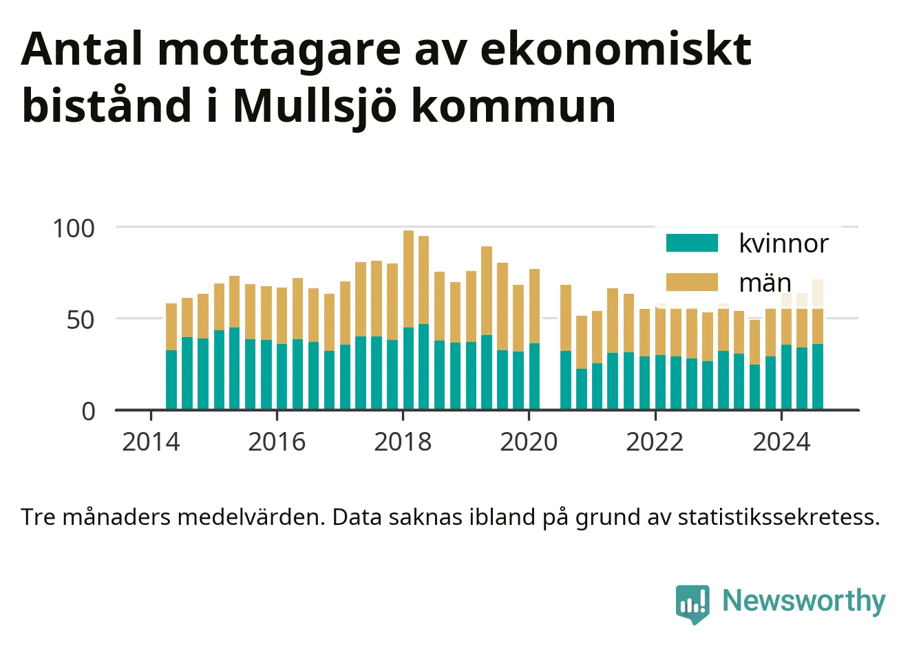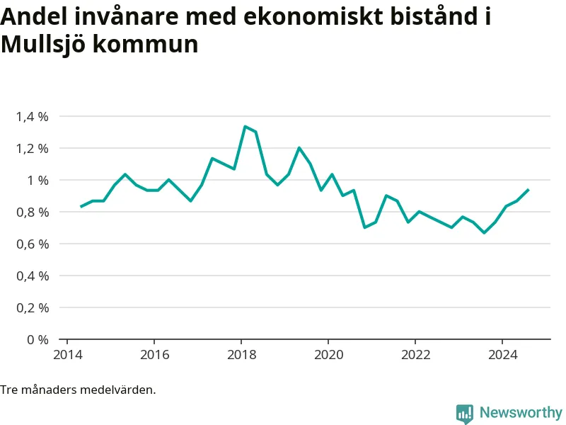 Andelen invånare med ekonomiskt bistånd i Mullsjö kommun var högre under sommaren jämfört med motsvarande period året innan. Det visar den senaste, preliminära statistiken från Socialstyrelsen.