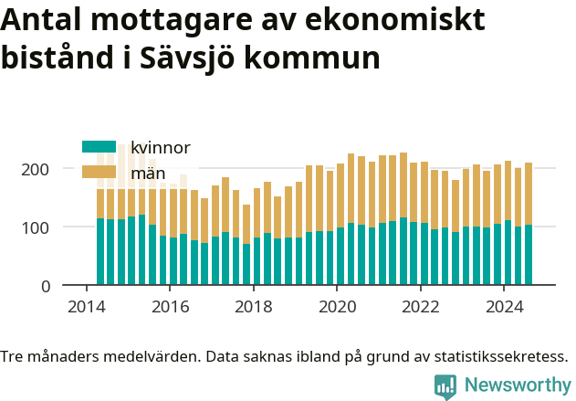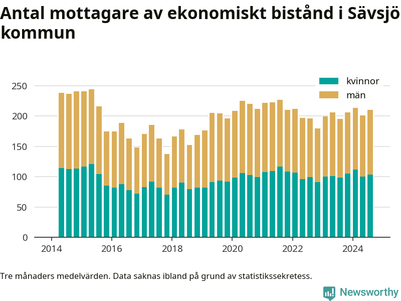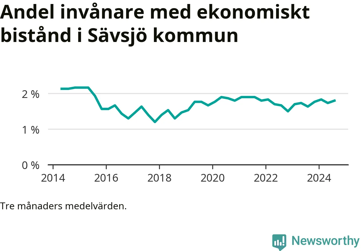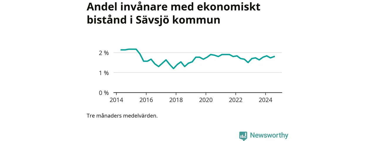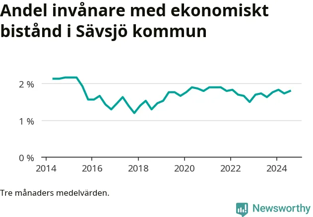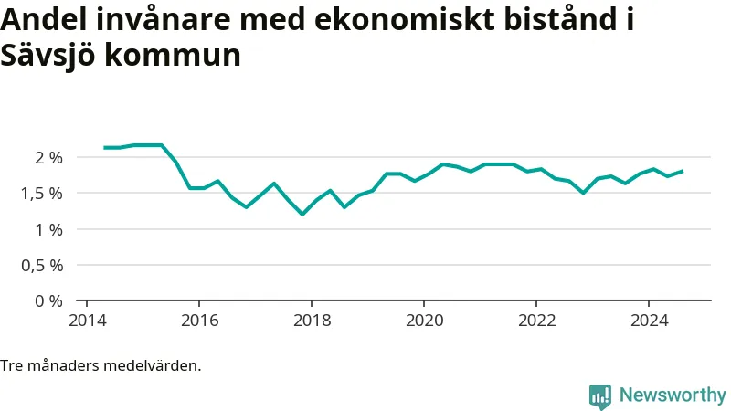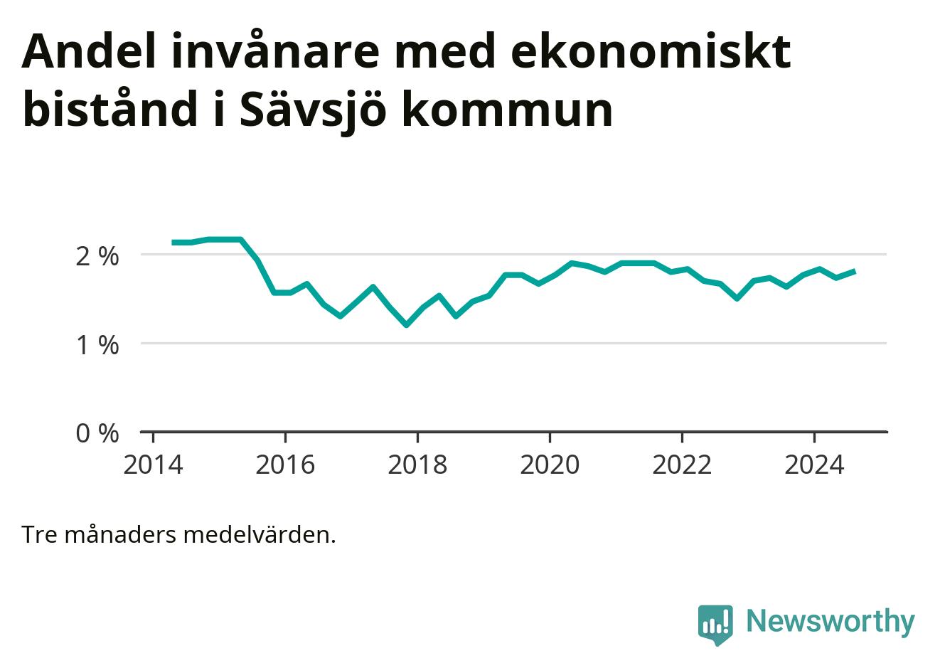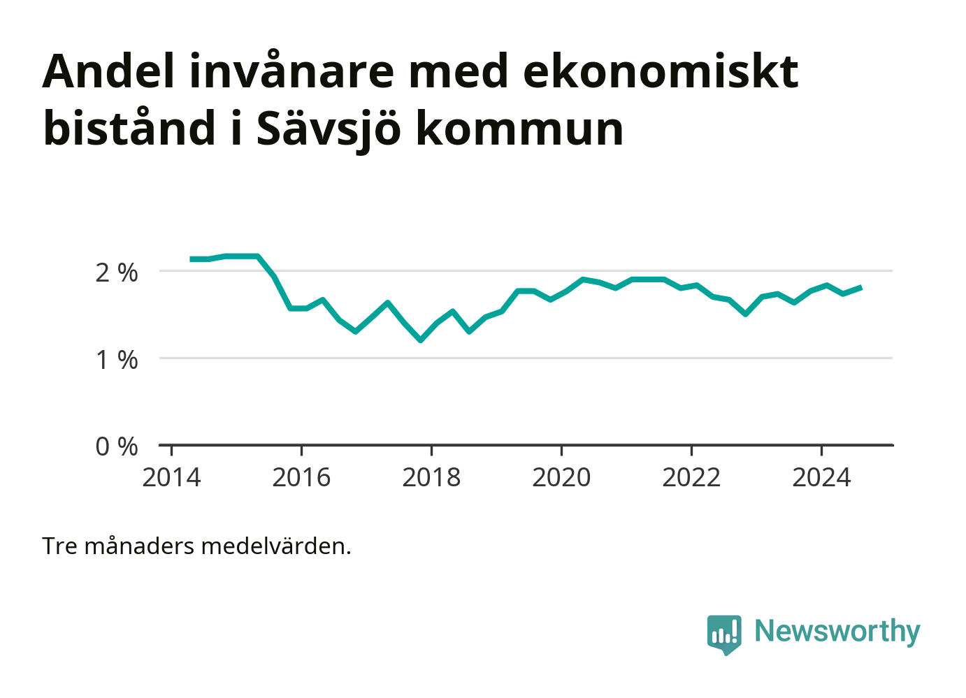 I genomsnitt 210 personer per månad fick ekonomiskt bistånd i Sävsjö kommun under sommarmånaderna (juni till augusti), vilket motsvarar 1,8 procent av den vuxna befolkningen. Det är marginellt mer än i våras, och något större andel än under sommaren för ett år sedan.