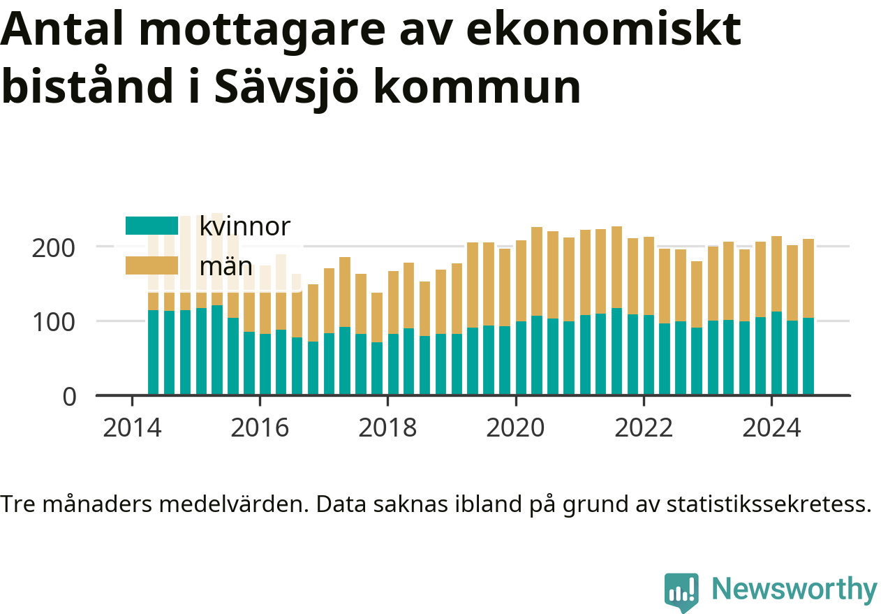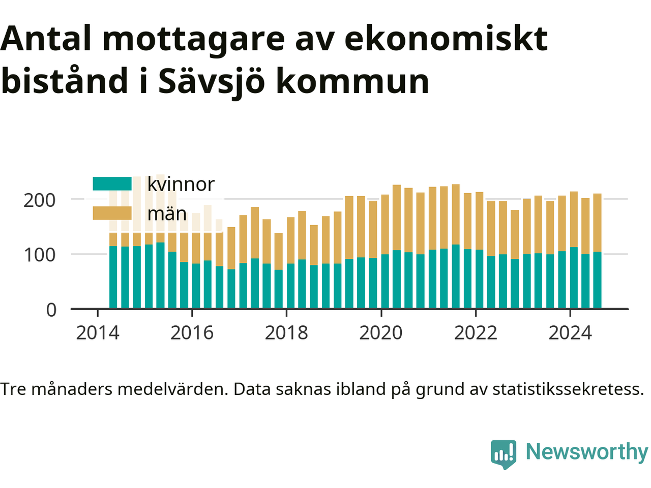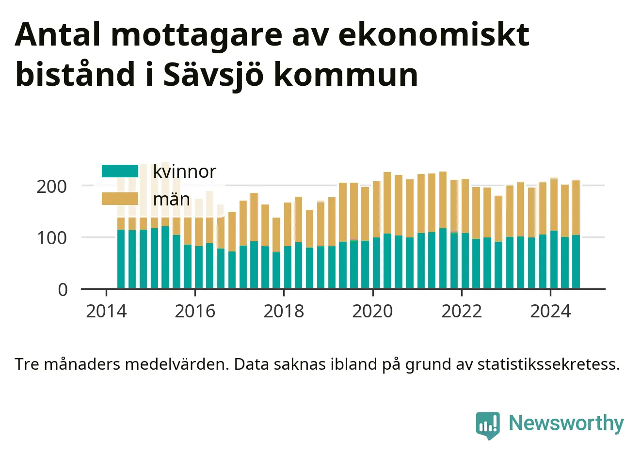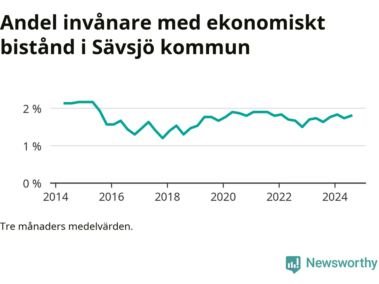 Andelen invånare med ekonomiskt bistånd i Sävsjö kommun var högre under sommaren jämfört med motsvarande period året innan. Det visar den senaste, preliminära statistiken från Socialstyrelsen.