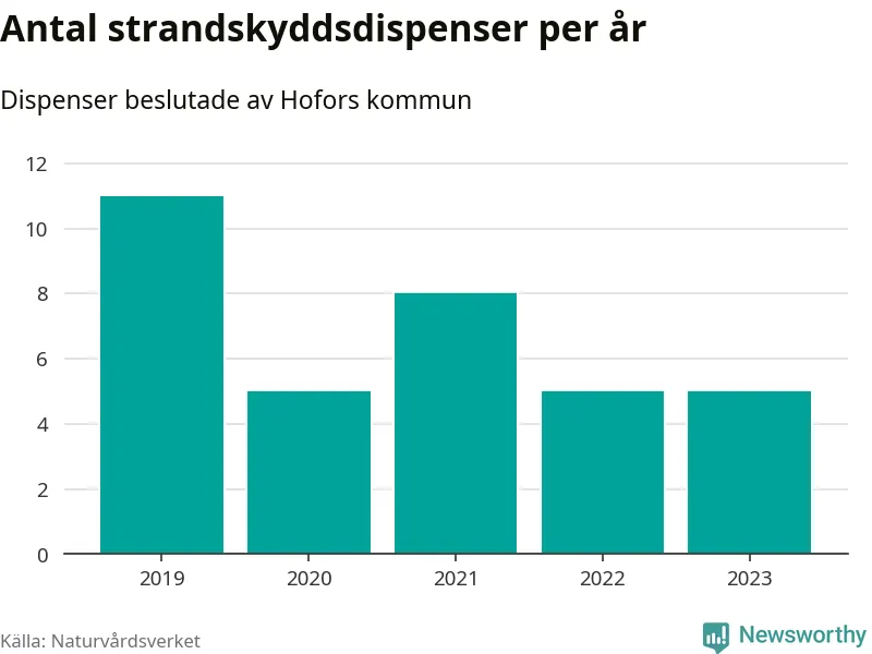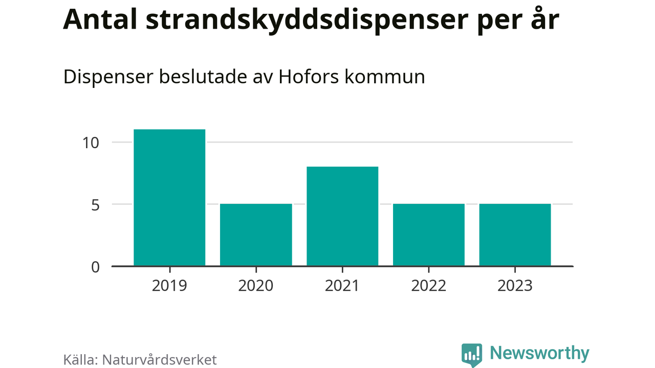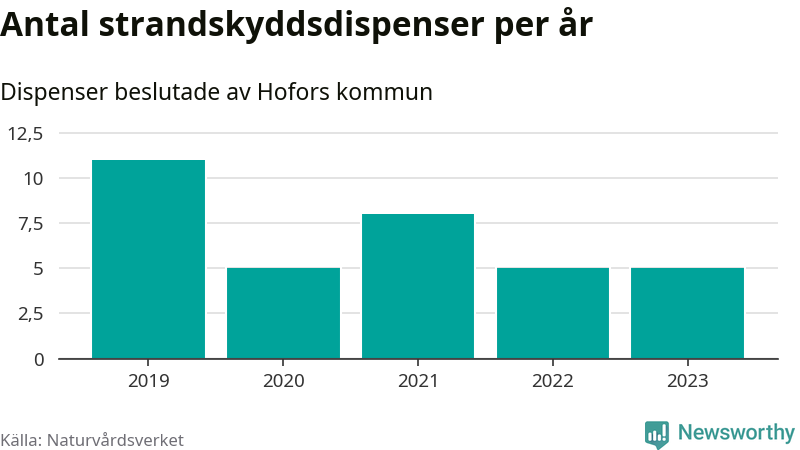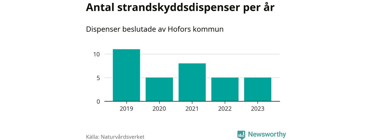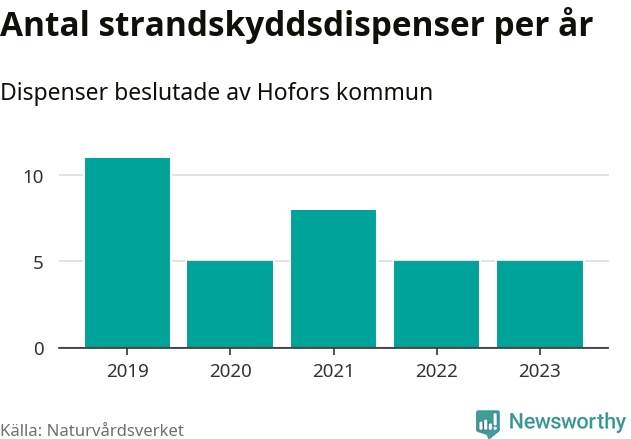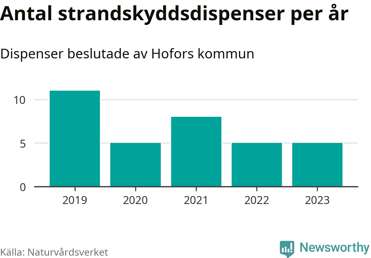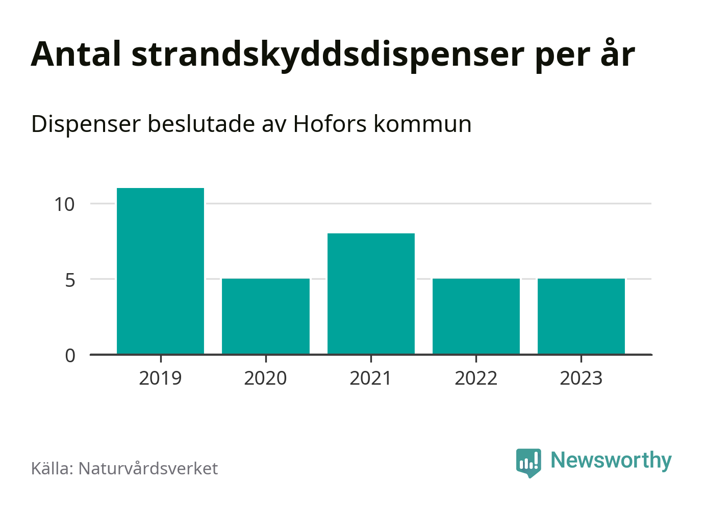 Den som vill bygga nära vatten behöver dispens från strandskyddet, lagstiftningen som ska säkra allmänhetens tillgång till stränderna och bevara livsvillkor för djur och växter. I de flesta fall är det kommunerna som godkänner dispenserna, och under de senaste fem åren har Hofors kommun fattat 34 beslut för totalt 54 åtgärder inom strandskyddat område, enligt den sammanställning Naturvårdsverket varje år gör. Det är färre än i de flesta kommuner i landet. Flest dispenser i Gävleborgs län har godkänts i Hudiksvall – 526 stycken.