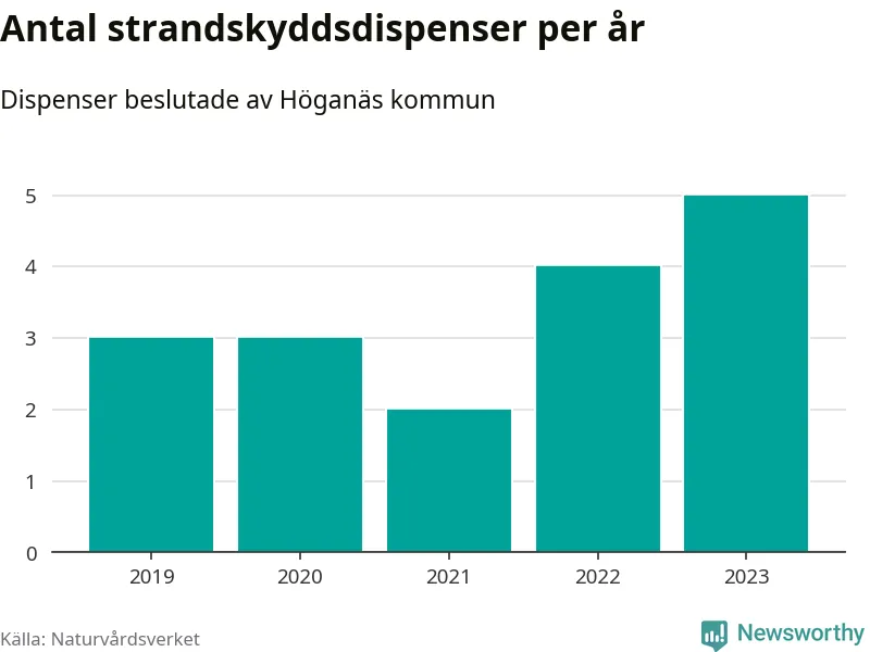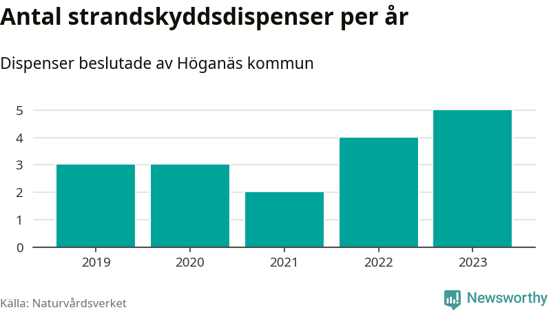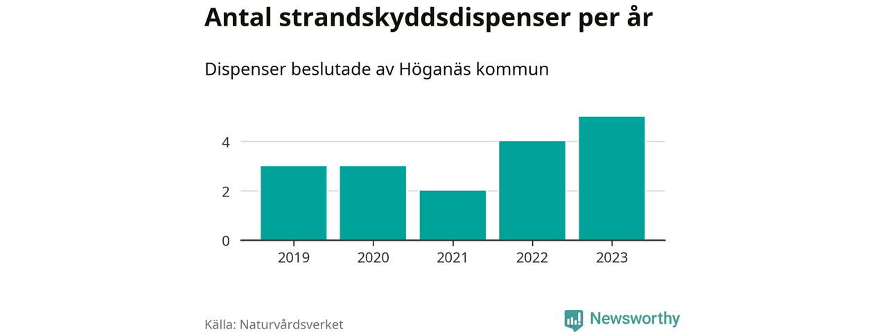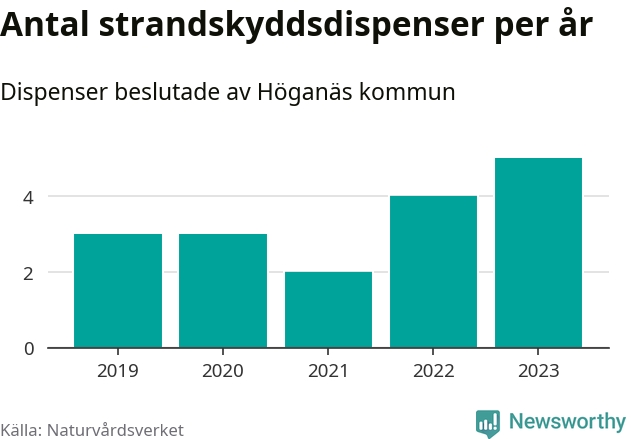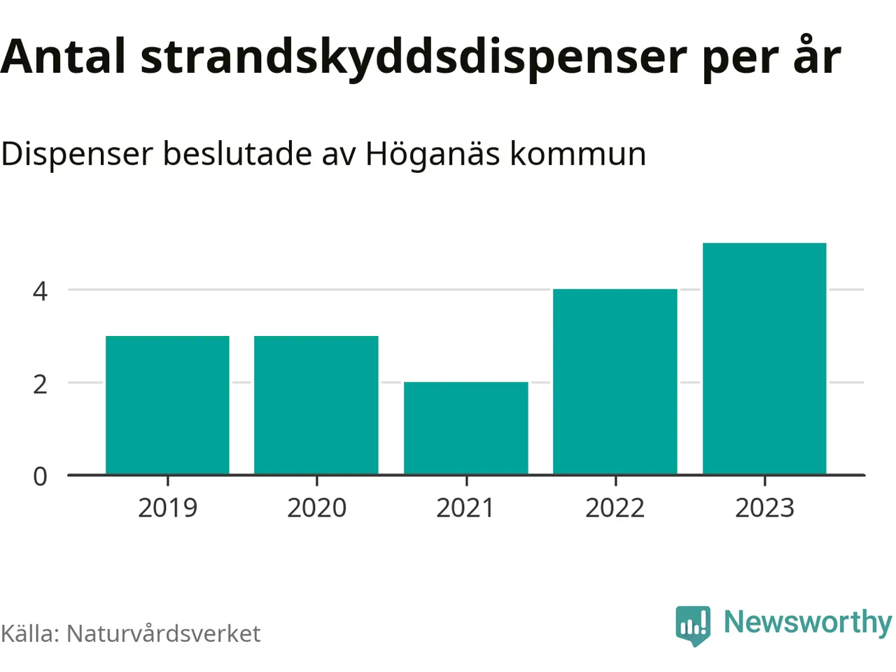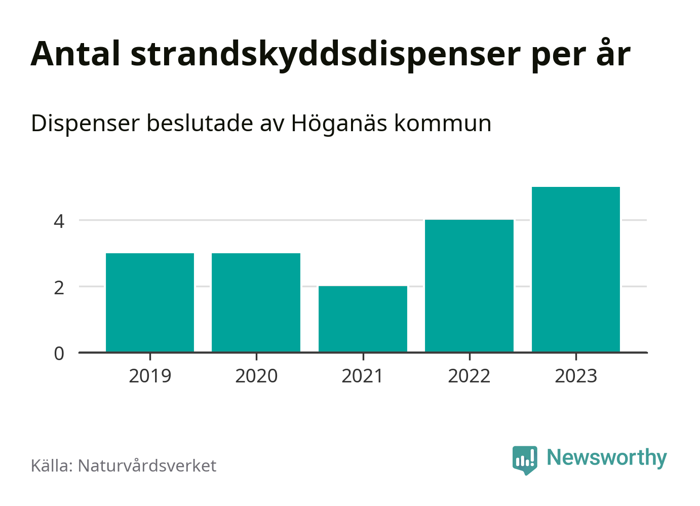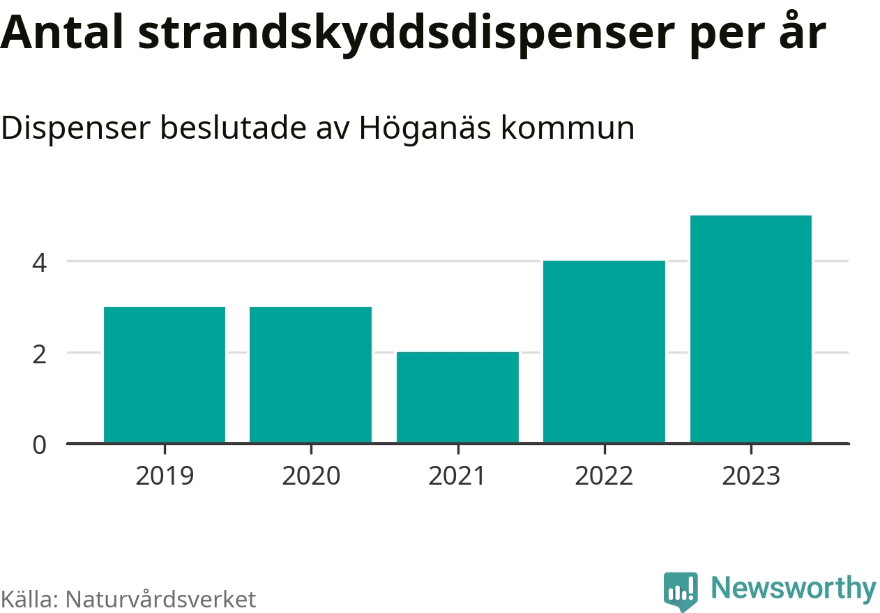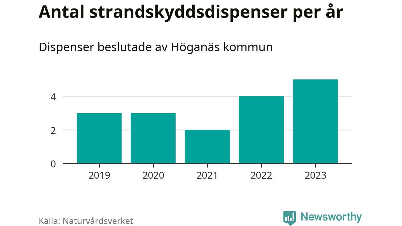 Den som vill bygga nära vatten behöver dispens från strandskyddet, lagstiftningen som ska säkra allmänhetens tillgång till stränderna och bevara livsvillkor för djur och växter. I de flesta fall är det kommunerna som godkänner dispenserna, och under de senaste fem åren har Höganäs kommun fattat 17 beslut för totalt 26 åtgärder inom strandskyddat område, enligt den sammanställning Naturvårdsverket varje år gör. Det är färre än i de flesta kommuner i landet. Flest dispenser i Skåne län har godkänts i Kristianstad – 111 stycken.