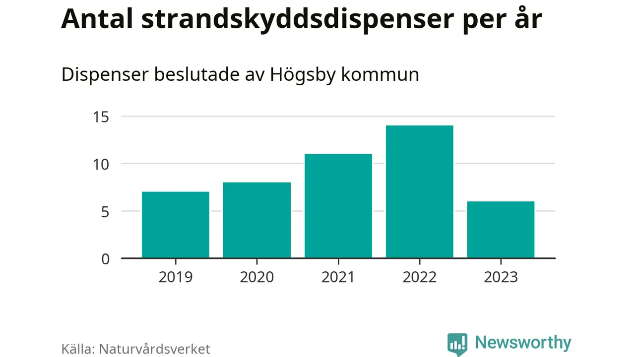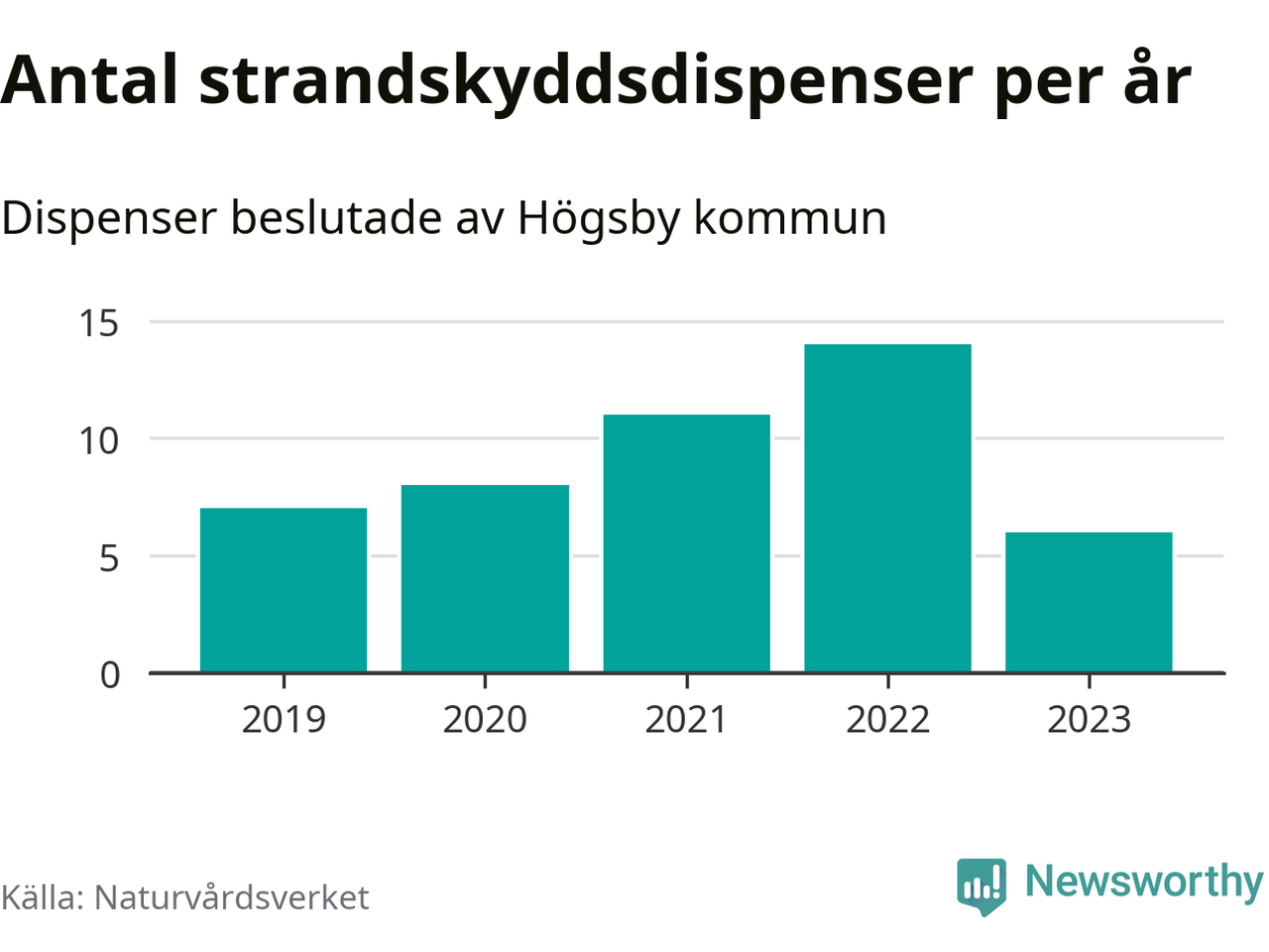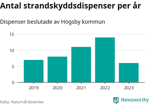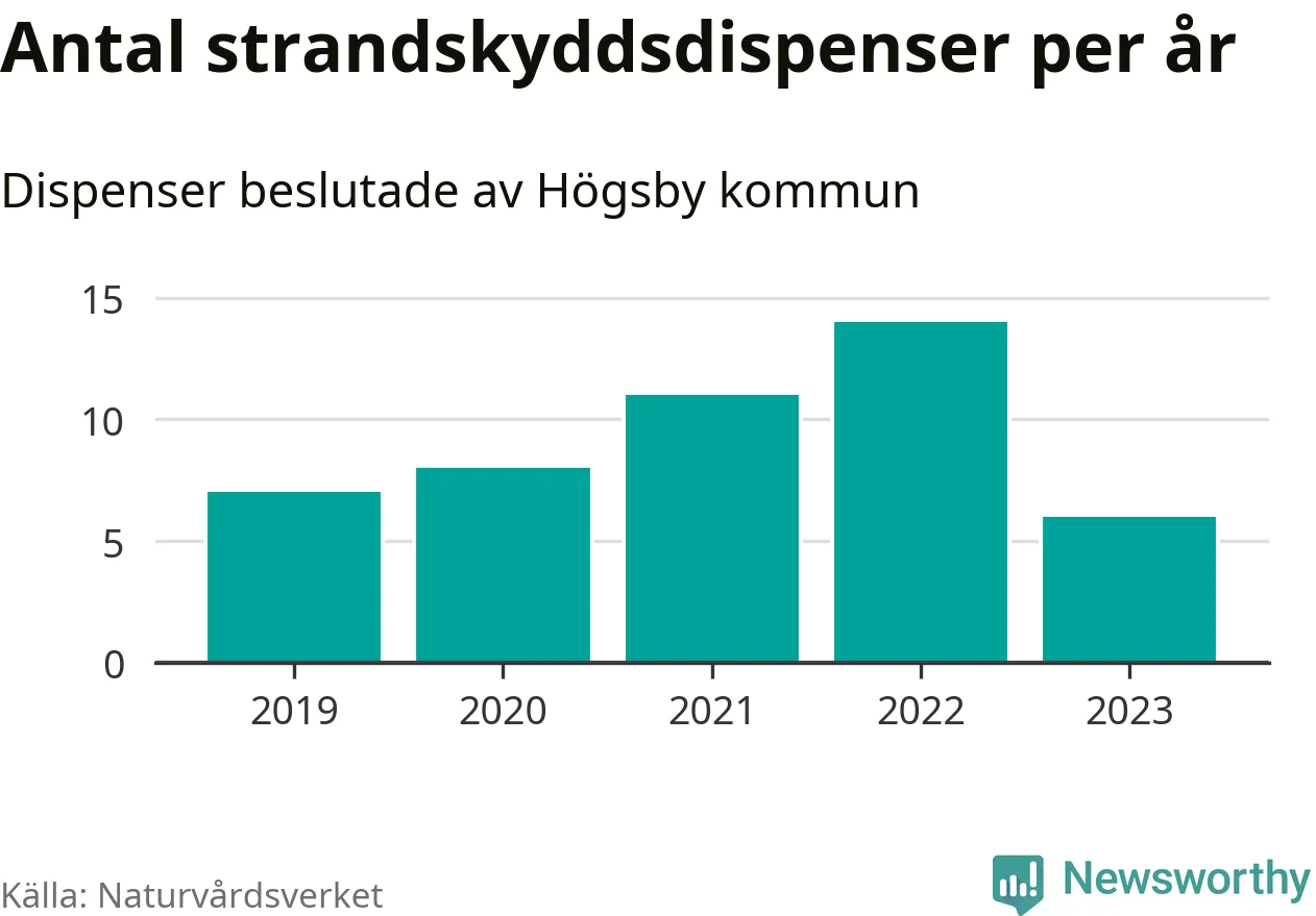 Den som vill bygga nära vatten behöver dispens från strandskyddet, lagstiftningen som ska säkra allmänhetens tillgång till stränderna och bevara livsvillkor för djur och växter. I de flesta fall är det kommunerna som godkänner dispenserna, och under de senaste fem åren har Högsby kommun fattat 46 beslut för totalt 65 åtgärder inom strandskyddat område, enligt den sammanställning Naturvårdsverket varje år gör. Det är inte en siffra som sticker ut särskilt jämfört med andra kommuner. Flest dispenser i Kalmar län har godkänts i Västervik – 178 stycken.
