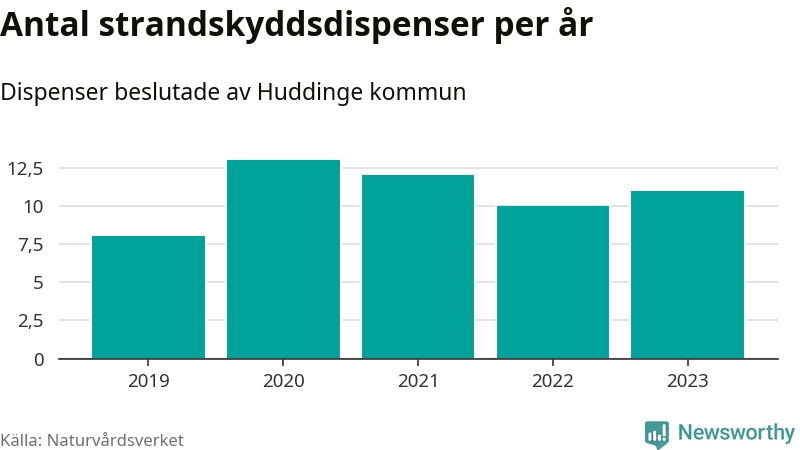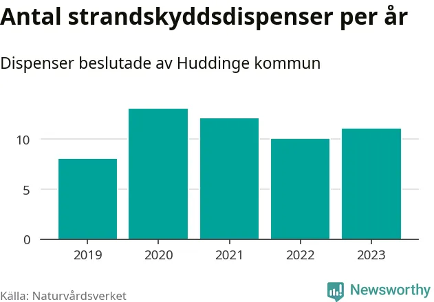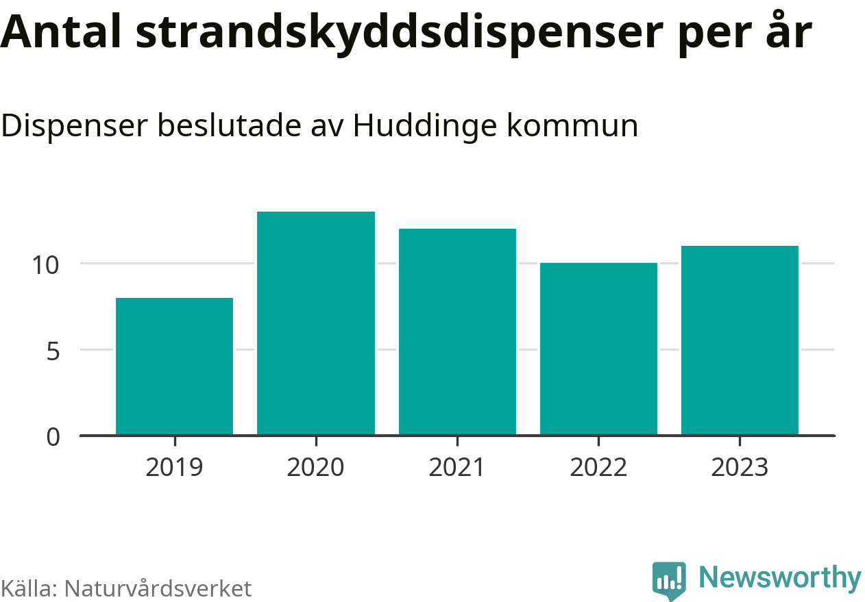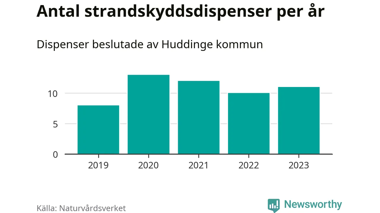Den som vill bygga nära vatten behöver dispens från strandskyddet, lagstiftningen som ska säkra allmänhetens tillgång till stränderna och bevara livsvillkor för djur och växter. I de flesta fall är det kommunerna som godkänner dispenserna, och under de senaste fem åren har Huddinge kommun fattat 54 beslut för totalt 75 åtgärder inom strandskyddat område, enligt den sammanställning Naturvårdsverket varje år gör. Det är inte en siffra som sticker ut särskilt jämfört med andra kommuner. Flest dispenser i Stockholms län har godkänts i Värmdö – 1 571 stycken.