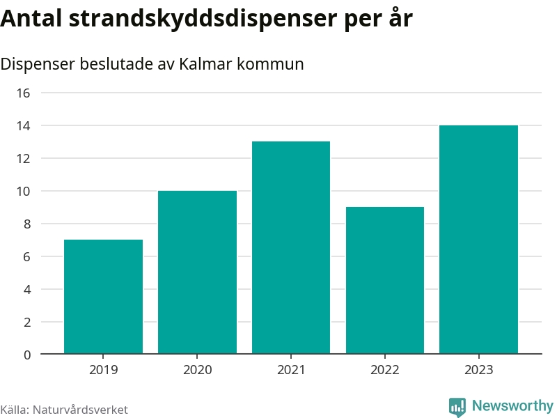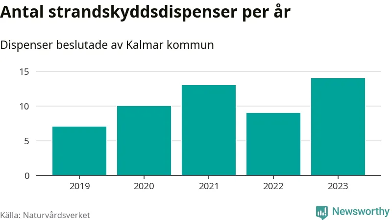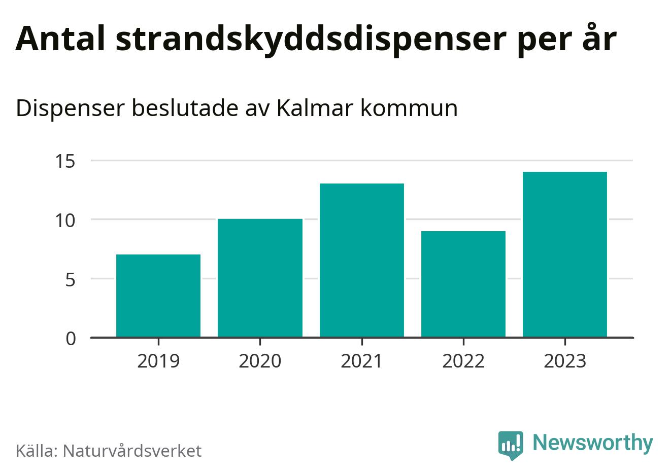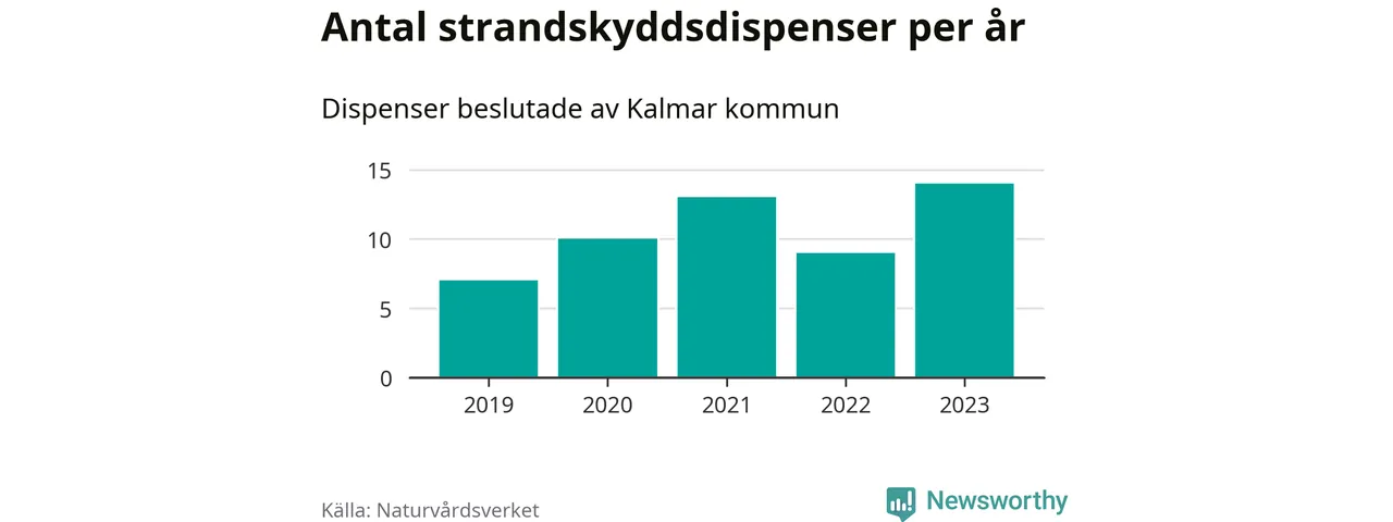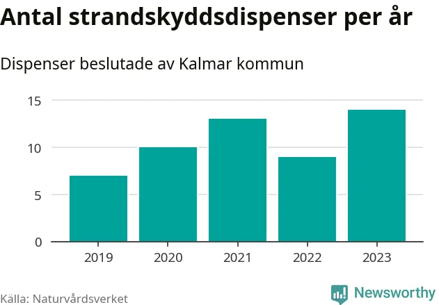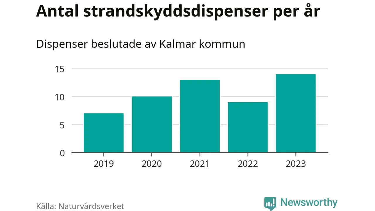 Den som vill bygga nära vatten behöver dispens från strandskyddet, lagstiftningen som ska säkra allmänhetens tillgång till stränderna och bevara livsvillkor för djur och växter. I de flesta fall är det kommunerna som godkänner dispenserna, och under de senaste fem åren har Kalmar kommun fattat 53 beslut för totalt 83 åtgärder inom strandskyddat område, enligt den sammanställning Naturvårdsverket varje år gör. Det är inte en siffra som sticker ut särskilt jämfört med andra kommuner. Flest dispenser i Kalmar län har godkänts i Västervik – 178 stycken.