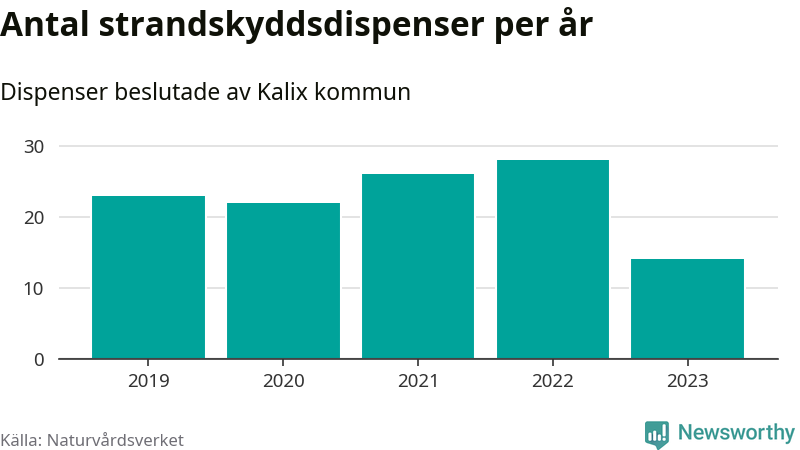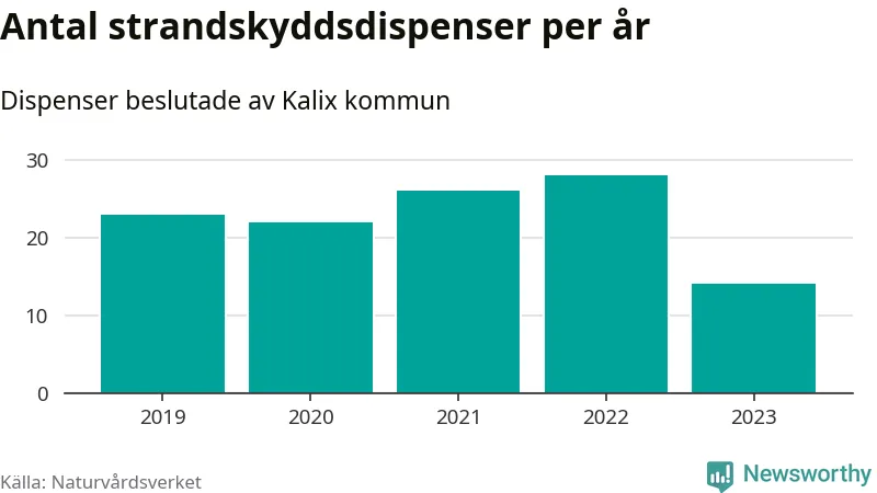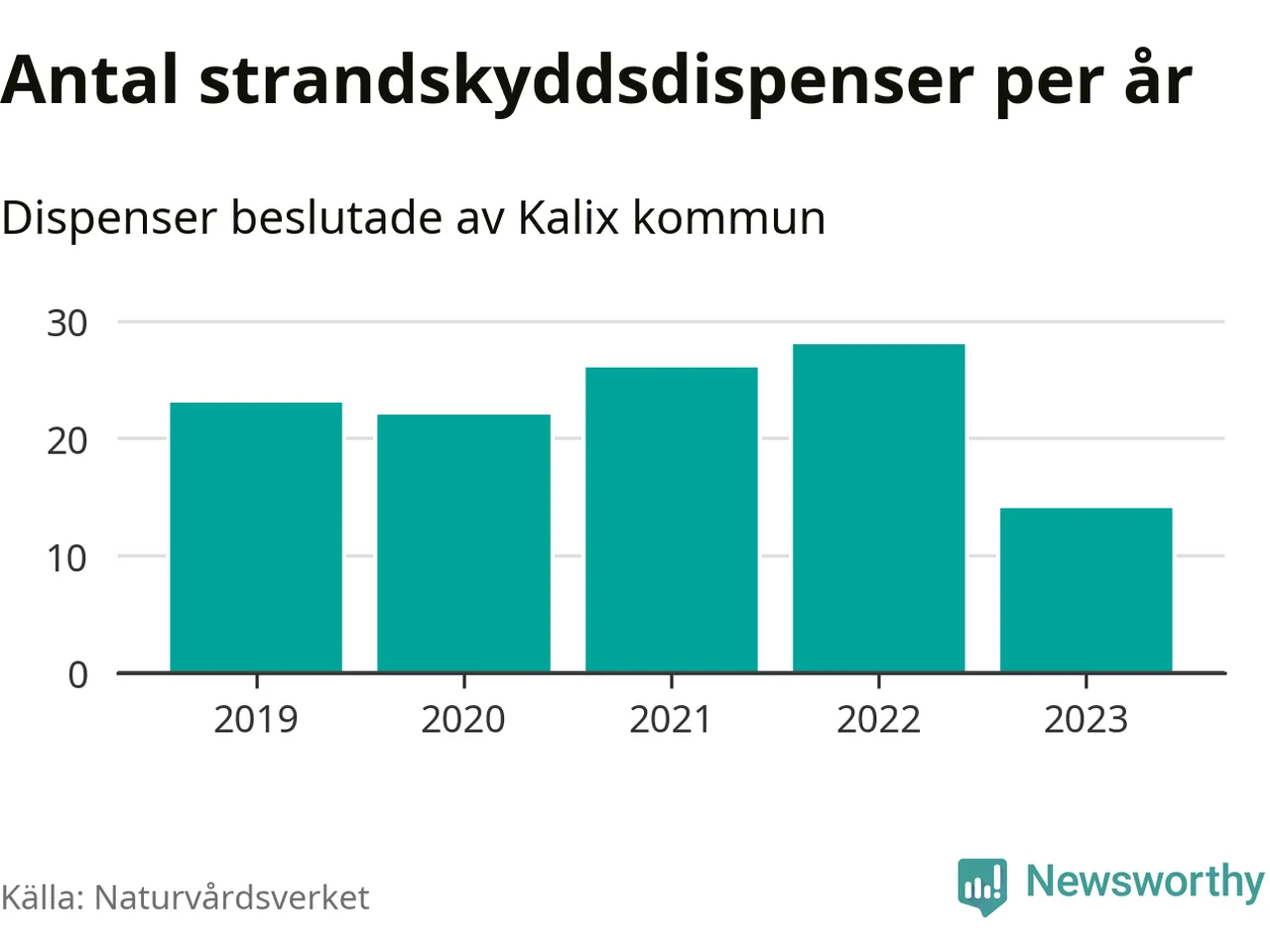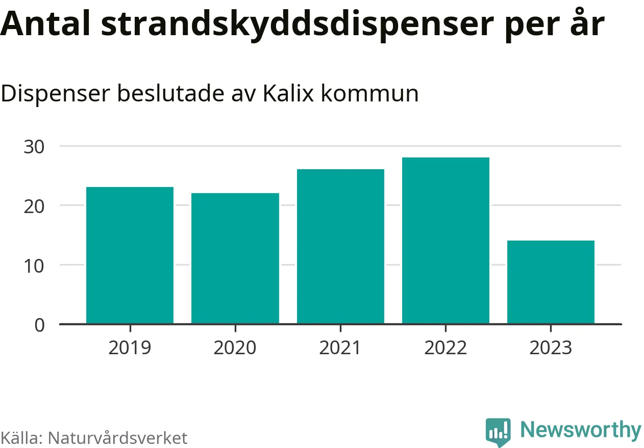 Den som vill bygga nära vatten behöver dispens från strandskyddet, lagstiftningen som ska säkra allmänhetens tillgång till stränderna och bevara livsvillkor för djur och växter. I de flesta fall är det kommunerna som godkänner dispenserna, och under de senaste fem åren har Kalix kommun fattat 113 beslut för totalt 152 åtgärder inom strandskyddat område, enligt den sammanställning Naturvårdsverket varje år gör. Det är fler än i de flesta kommuner i landet. Flest dispenser i Norrbottens län har godkänts i Luleå – 199 stycken.