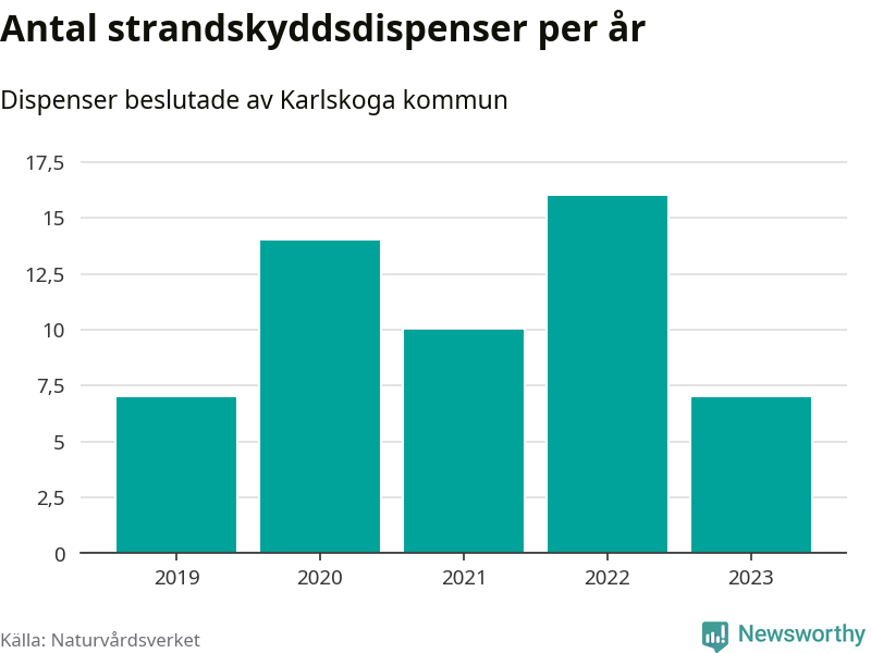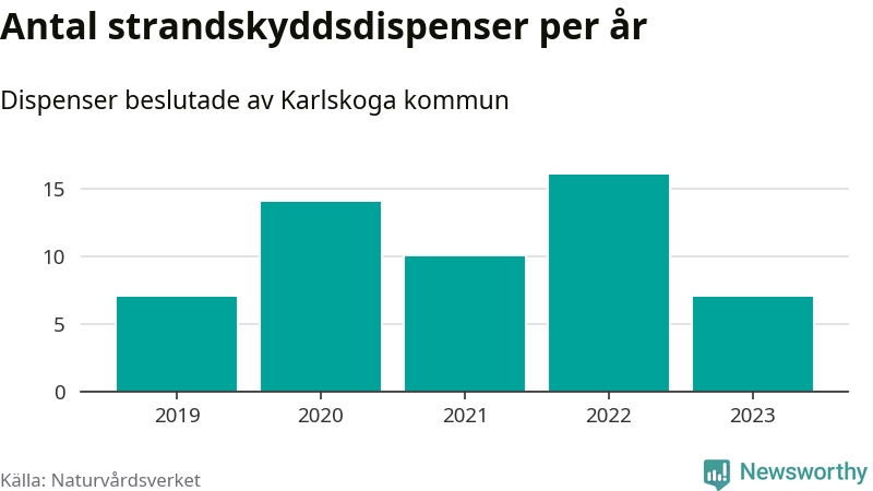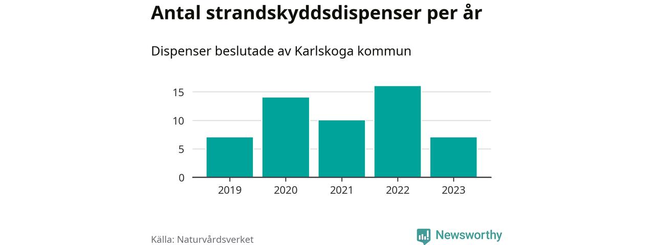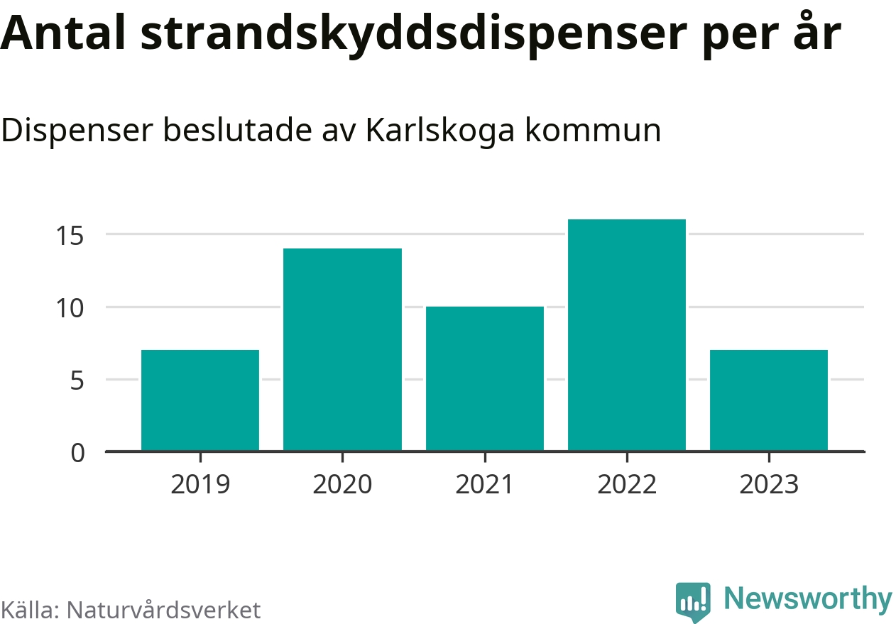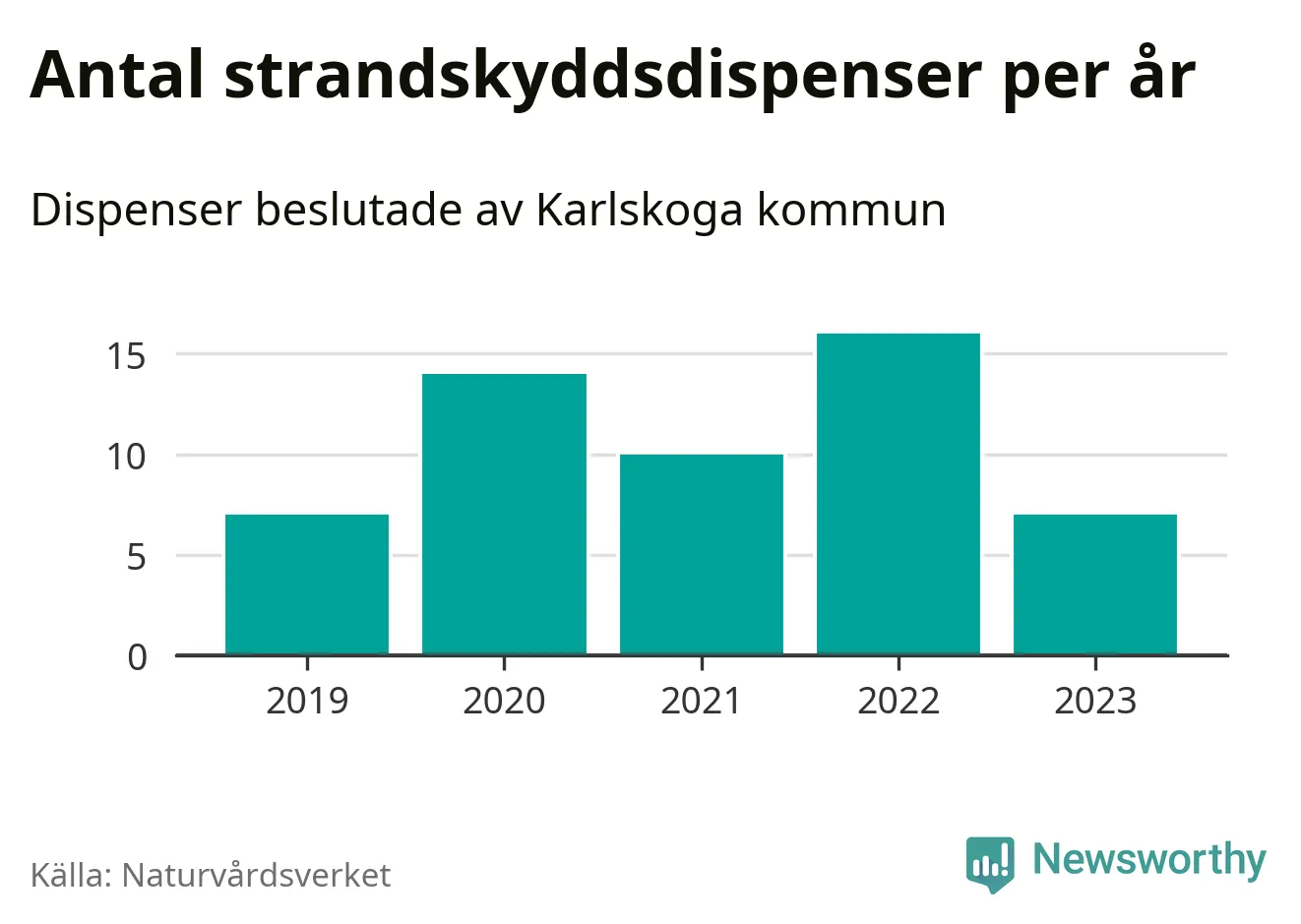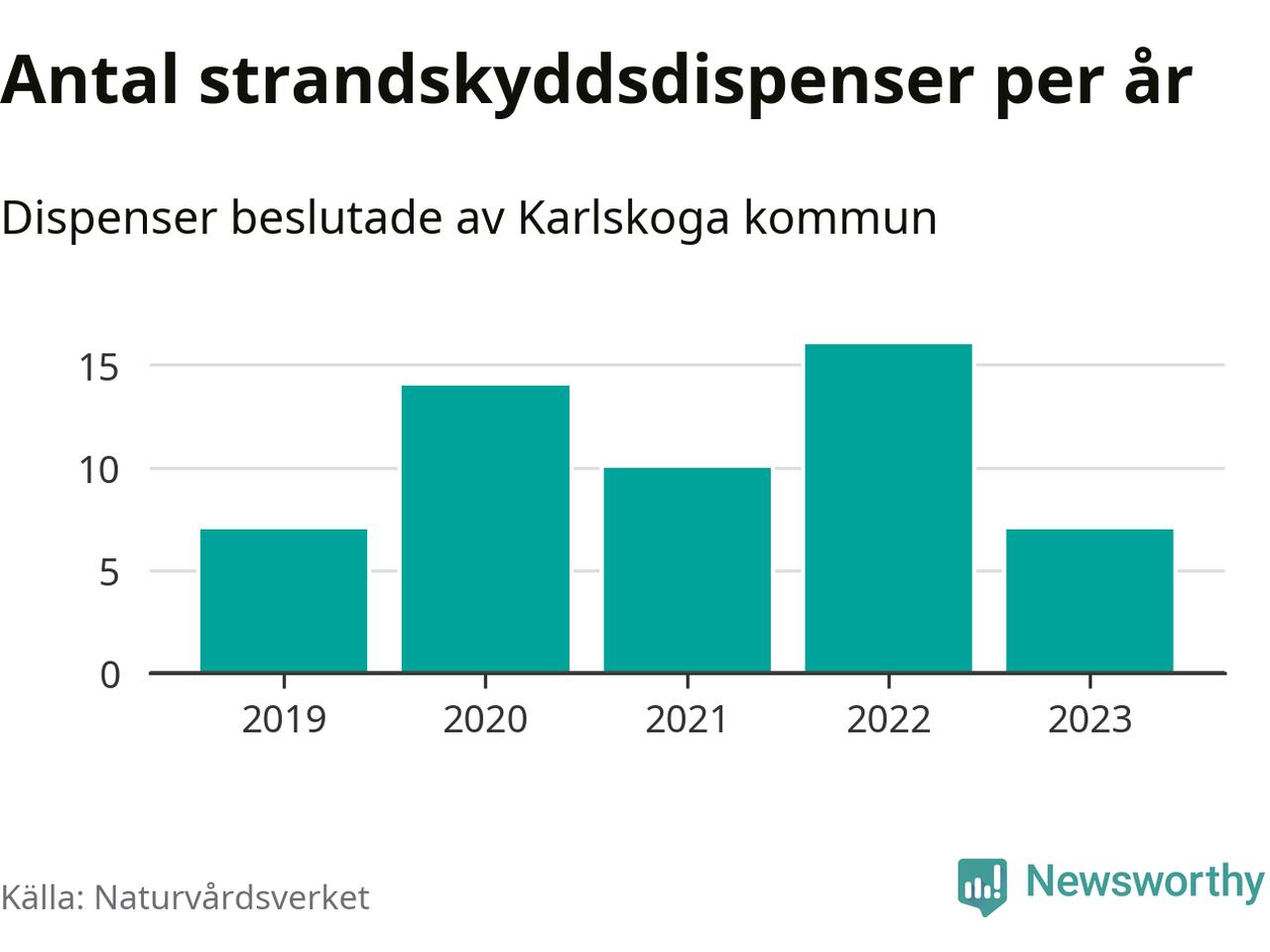 Den som vill bygga nära vatten behöver dispens från strandskyddet, lagstiftningen som ska säkra allmänhetens tillgång till stränderna och bevara livsvillkor för djur och växter. I de flesta fall är det kommunerna som godkänner dispenserna, och under de senaste fem åren har Karlskoga kommun fattat 54 beslut för totalt 72 åtgärder inom strandskyddat område, enligt den sammanställning Naturvårdsverket varje år gör. Det är inte en siffra som sticker ut särskilt jämfört med andra kommuner. Flest dispenser i Örebro län har godkänts i Askersund – 91 stycken.