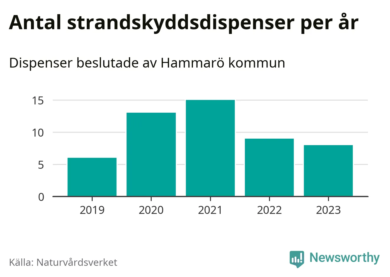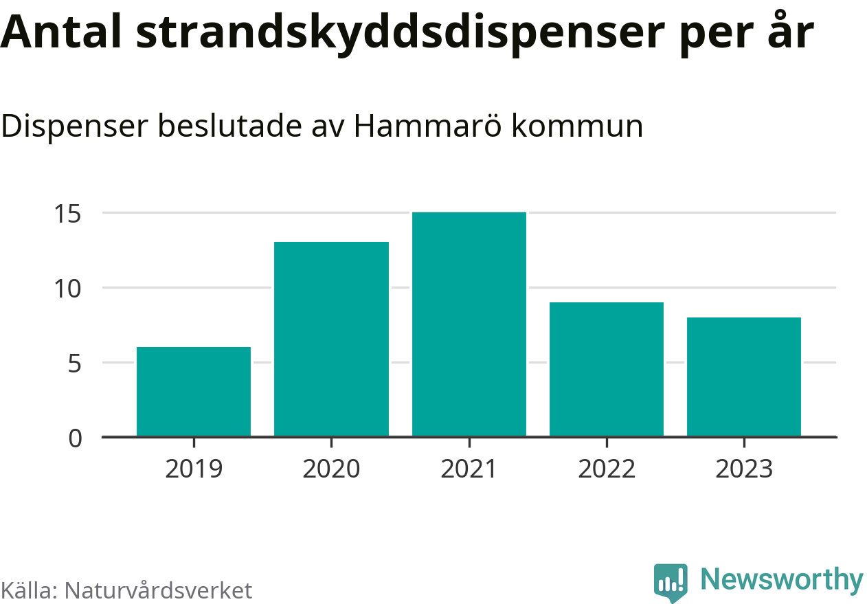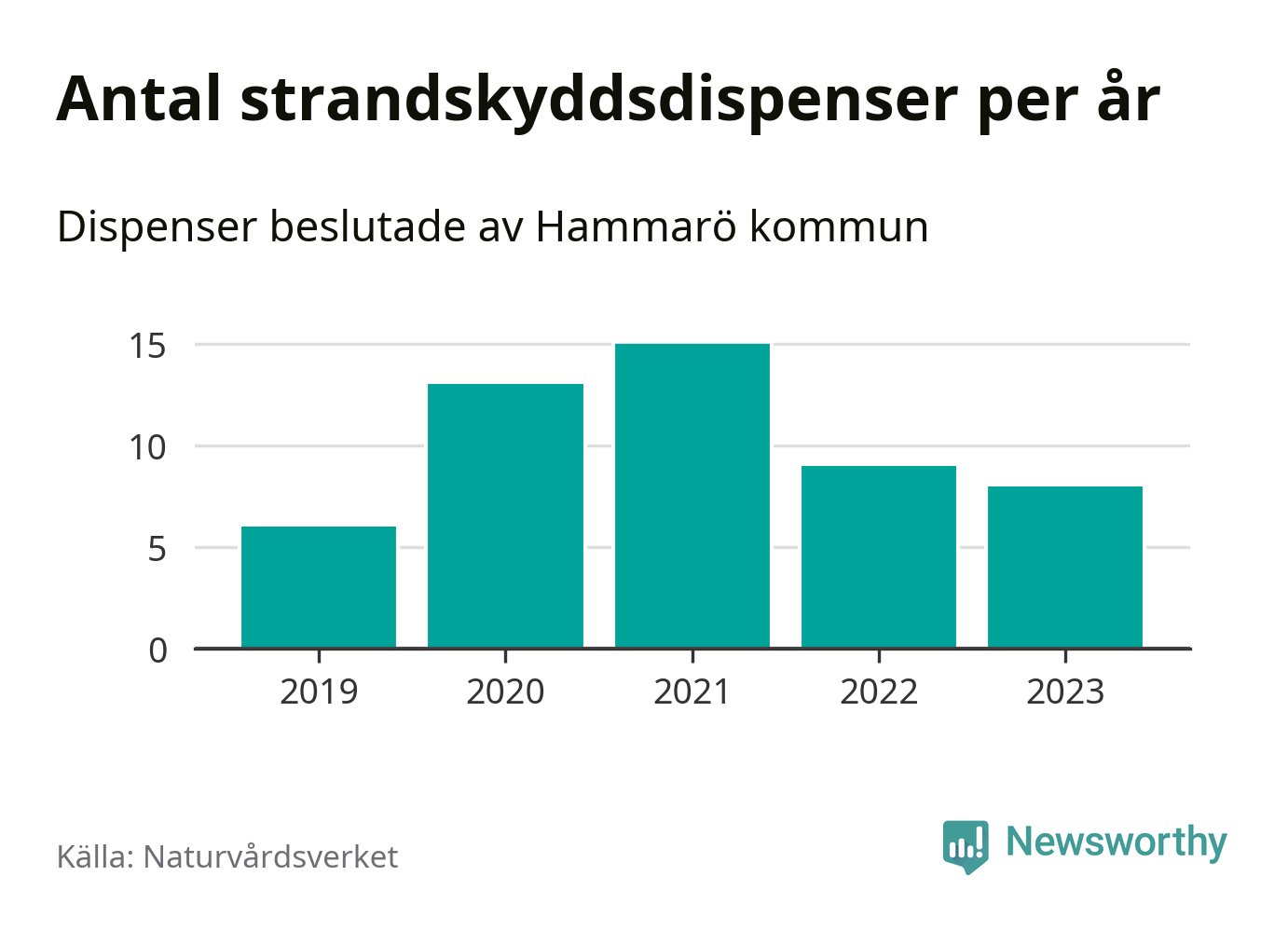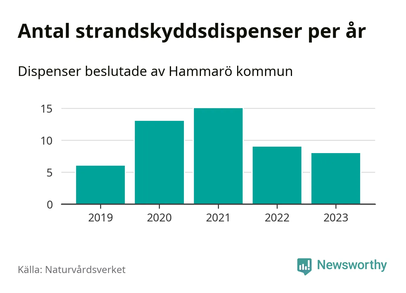 Den som vill bygga nära vatten behöver dispens från strandskyddet, lagstiftningen som ska säkra allmänhetens tillgång till stränderna och bevara livsvillkor för djur och växter. I de flesta fall är det kommunerna som godkänner dispenserna, och under de senaste fem åren har Hammarö kommun fattat 51 beslut för totalt 70 åtgärder inom strandskyddat område, enligt den sammanställning Naturvårdsverket varje år gör. Det är inte en siffra som sticker ut särskilt jämfört med andra kommuner. Flest dispenser i Värmlands län har godkänts i Arvika – 137 stycken.
