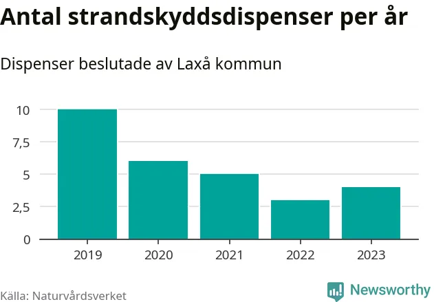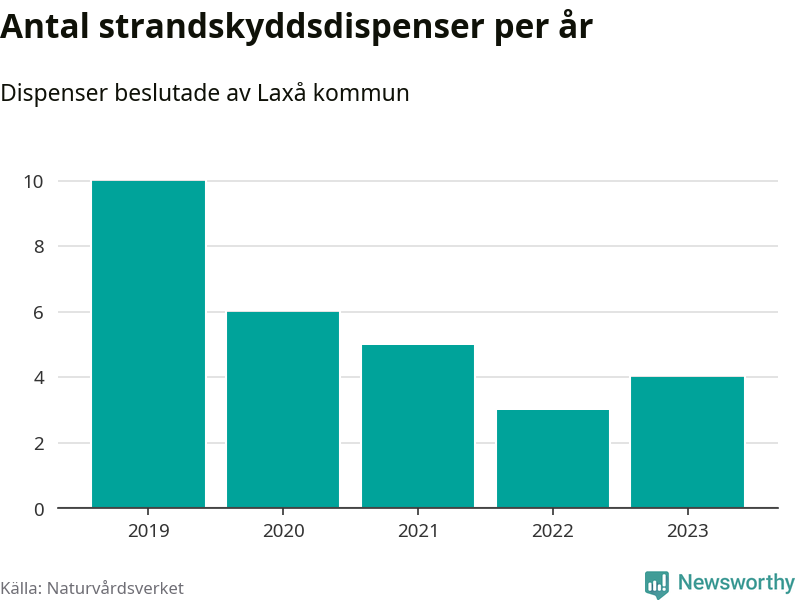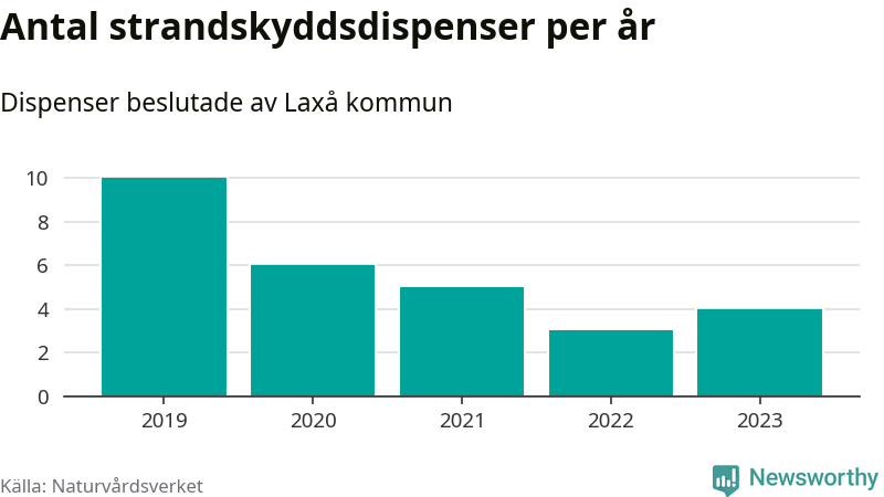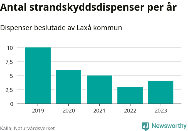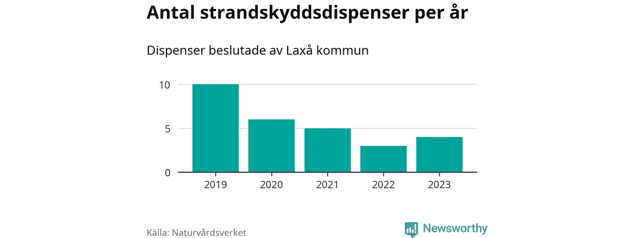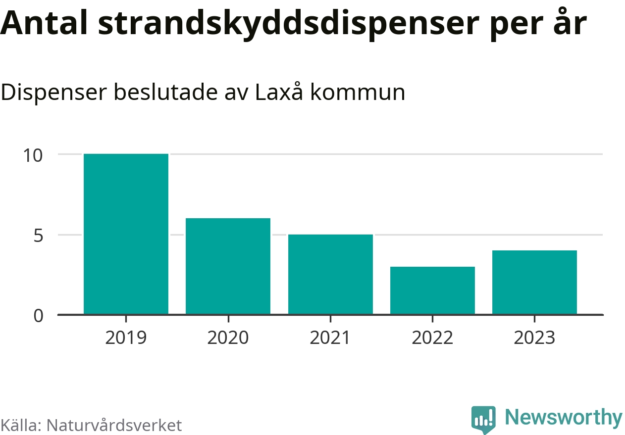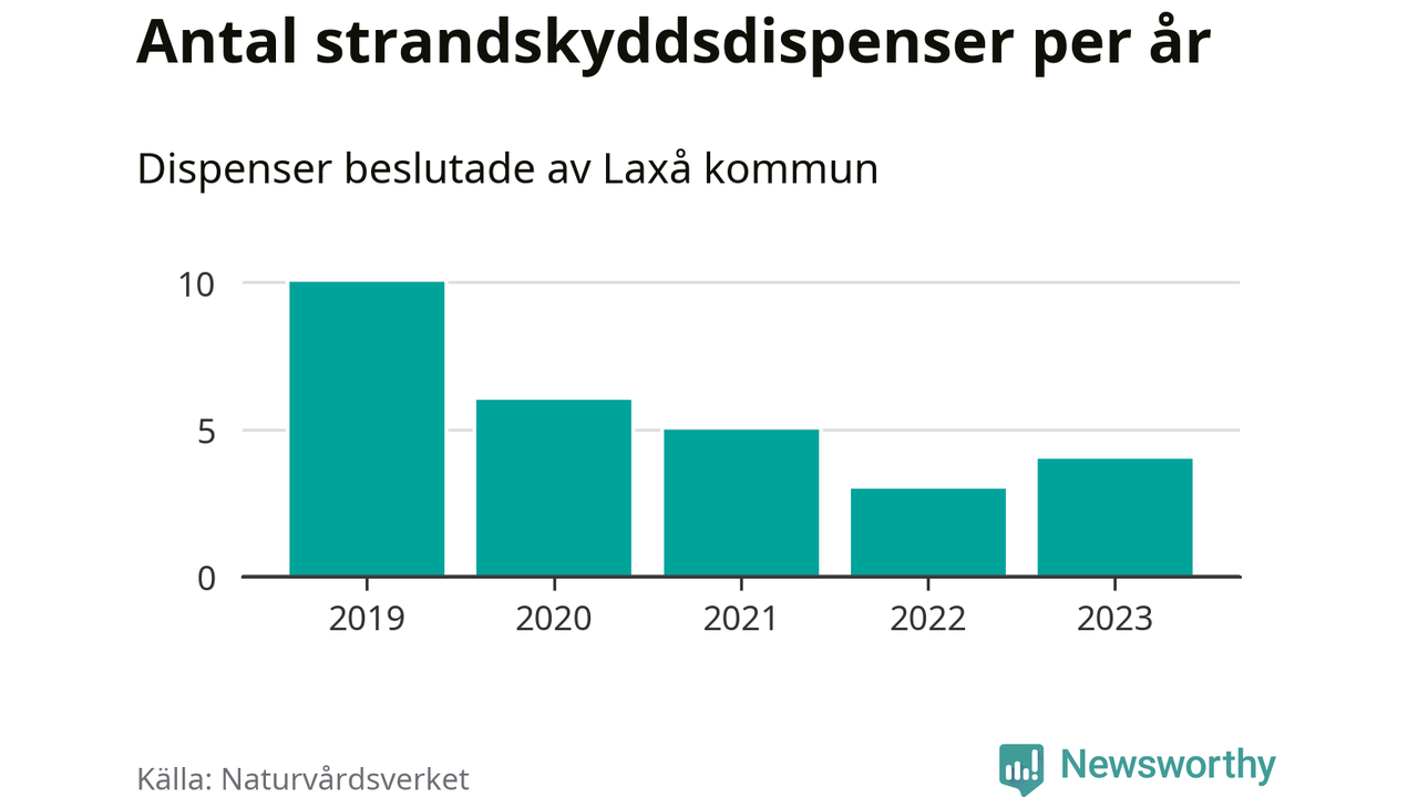Den som vill bygga nära vatten behöver dispens från strandskyddet, lagstiftningen som ska säkra allmänhetens tillgång till stränderna och bevara livsvillkor för djur och växter. I de flesta fall är det kommunerna som godkänner dispenserna, och under de senaste fem åren har Laxå kommun fattat 28 beslut för totalt 36 åtgärder inom strandskyddat område, enligt den sammanställning Naturvårdsverket varje år gör. Det är färre än i de flesta kommuner i landet. Flest dispenser i Örebro län har godkänts i Askersund – 91 stycken.