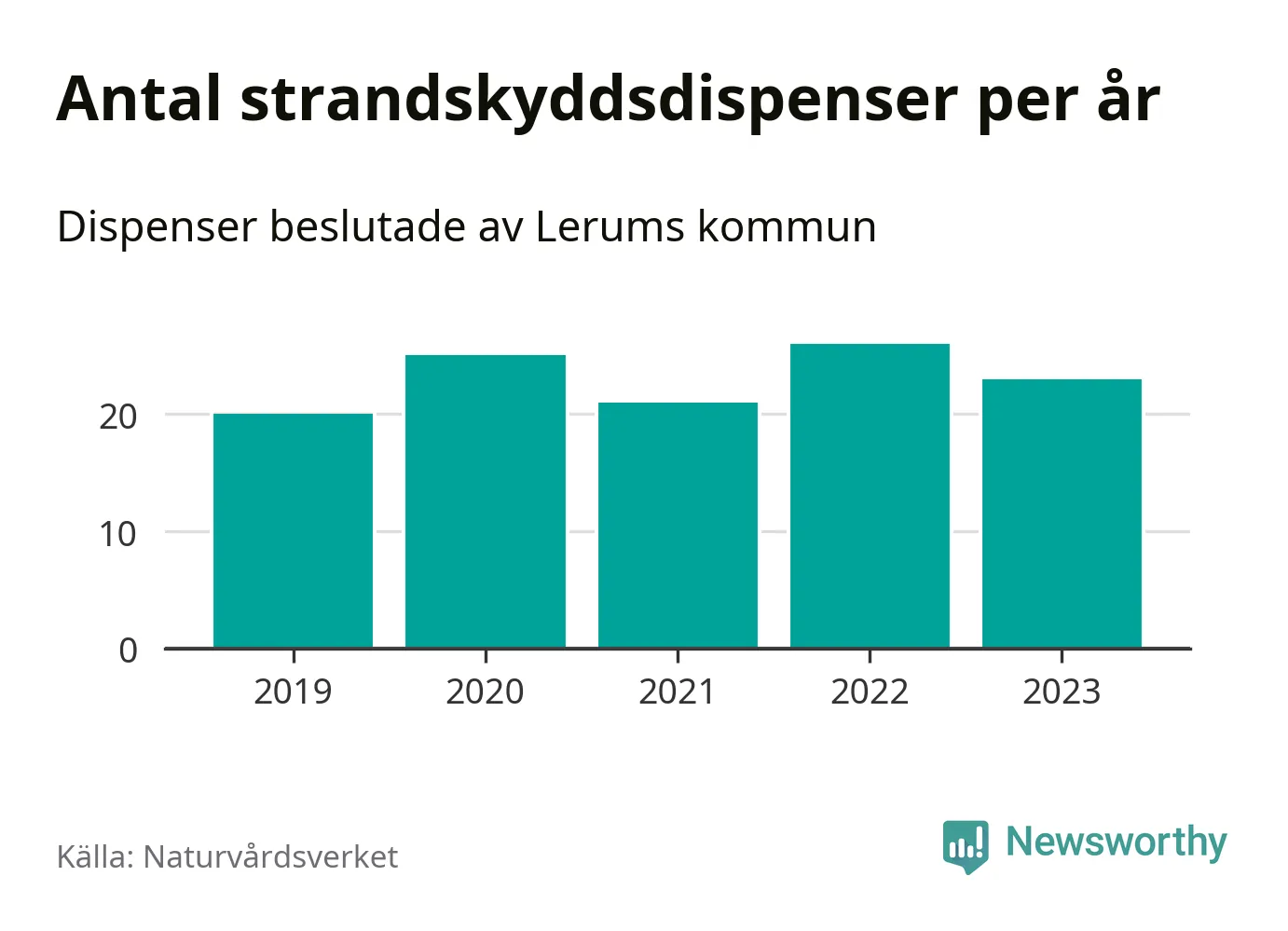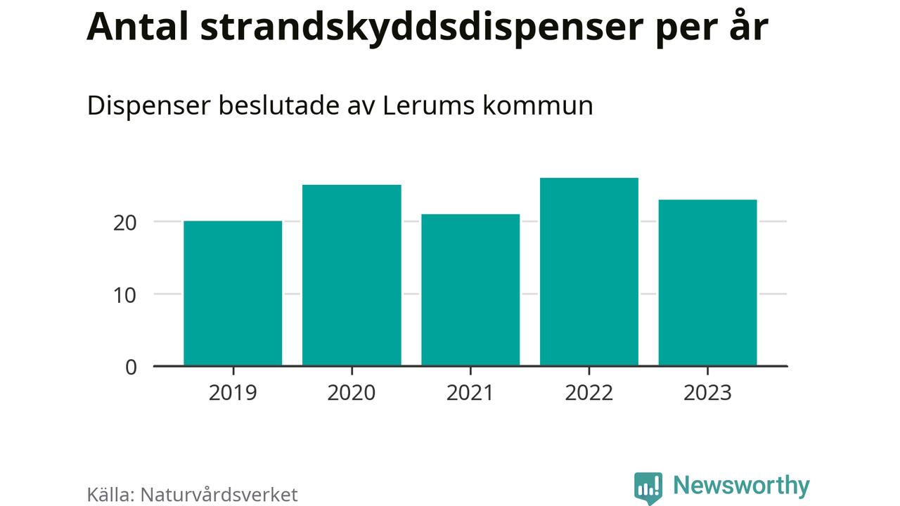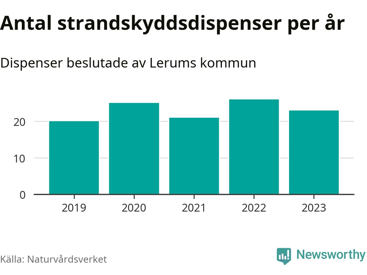 Den som vill bygga nära vatten behöver dispens från strandskyddet, lagstiftningen som ska säkra allmänhetens tillgång till stränderna och bevara livsvillkor för djur och växter. I de flesta fall är det kommunerna som godkänner dispenserna, och under de senaste fem åren har Lerums kommun fattat 115 beslut för totalt 201 åtgärder inom strandskyddat område, enligt den sammanställning Naturvårdsverket varje år gör. Det är fler än i de flesta kommuner i landet. Flest dispenser i Västra Götalands län har godkänts i Borås – 220 stycken.