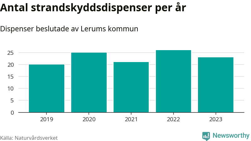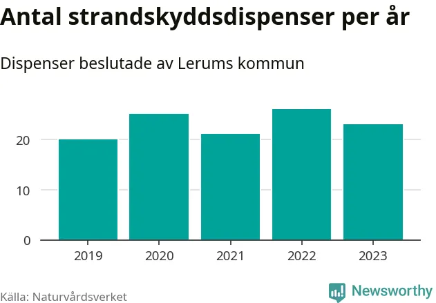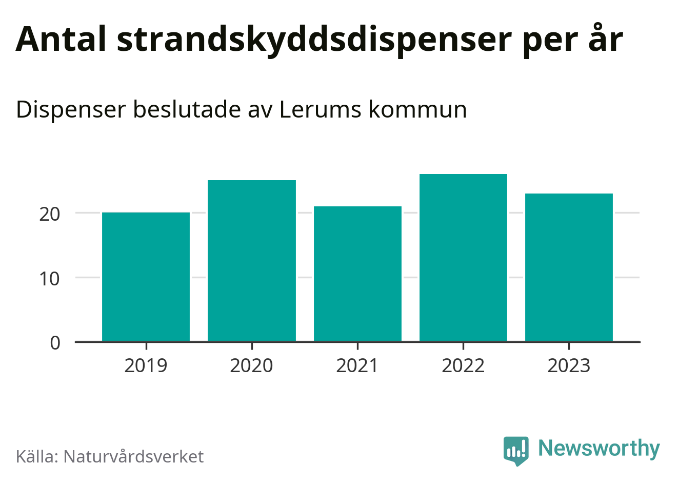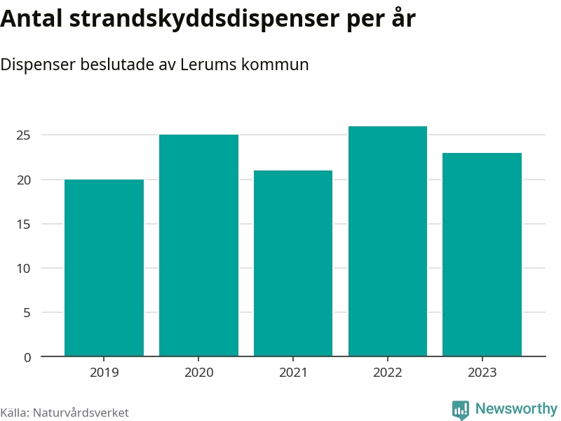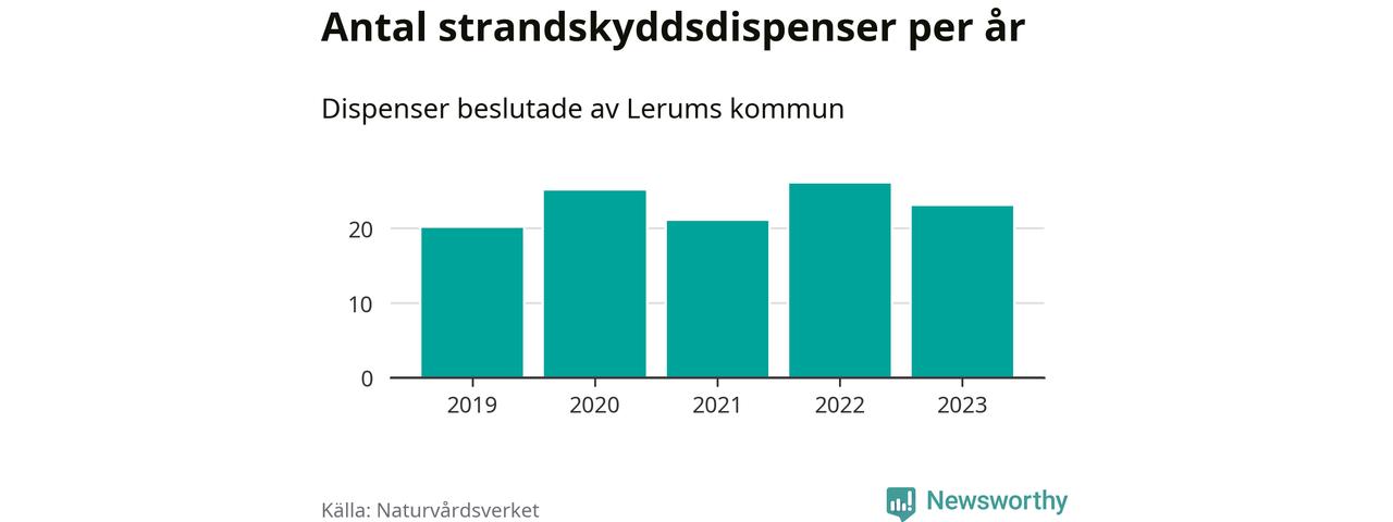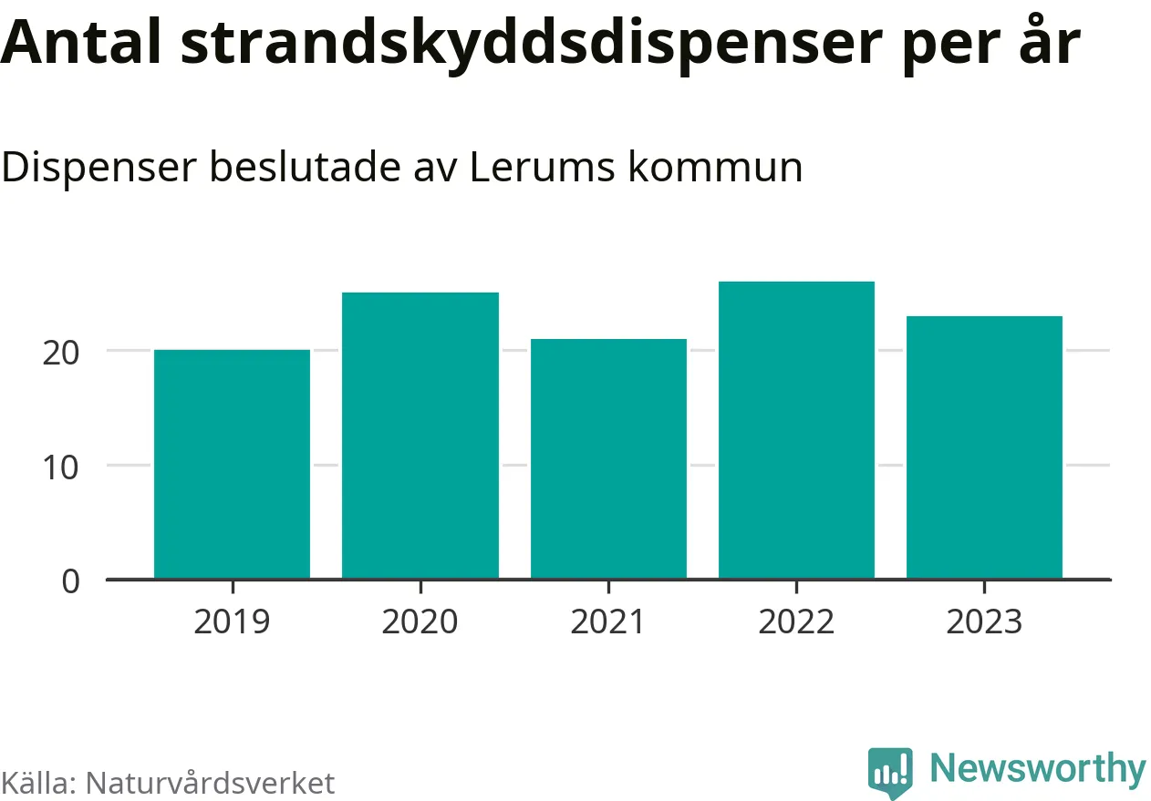 Den som vill bygga nära vatten behöver dispens från strandskyddet, lagstiftningen som ska säkra allmänhetens tillgång till stränderna och bevara livsvillkor för djur och växter. I de flesta fall är det kommunerna som godkänner dispenserna, och under de senaste fem åren har Lerums kommun fattat 115 beslut för totalt 201 åtgärder inom strandskyddat område, enligt den sammanställning Naturvårdsverket varje år gör. Det är fler än i de flesta kommuner i landet. Flest dispenser i Västra Götalands län har godkänts i Borås – 220 stycken.