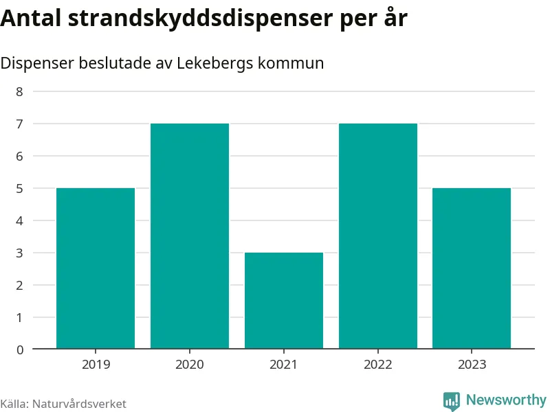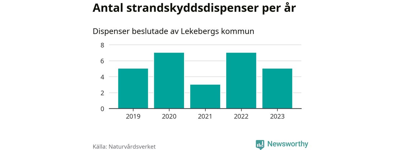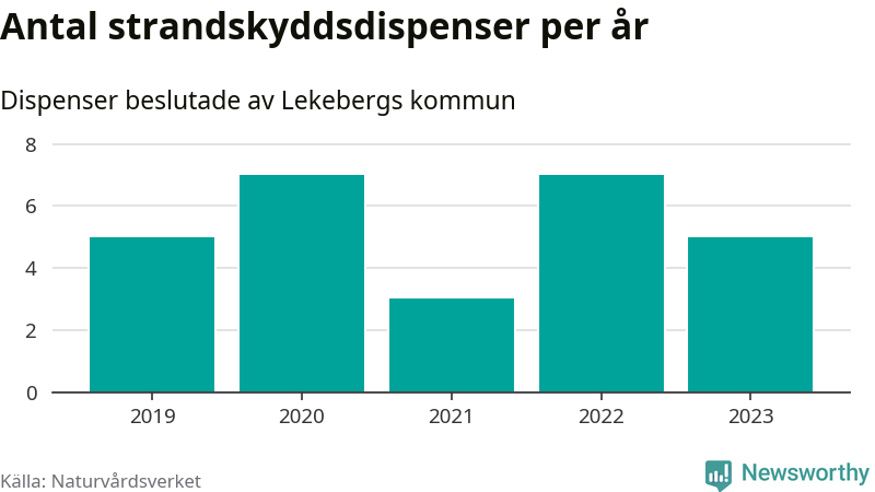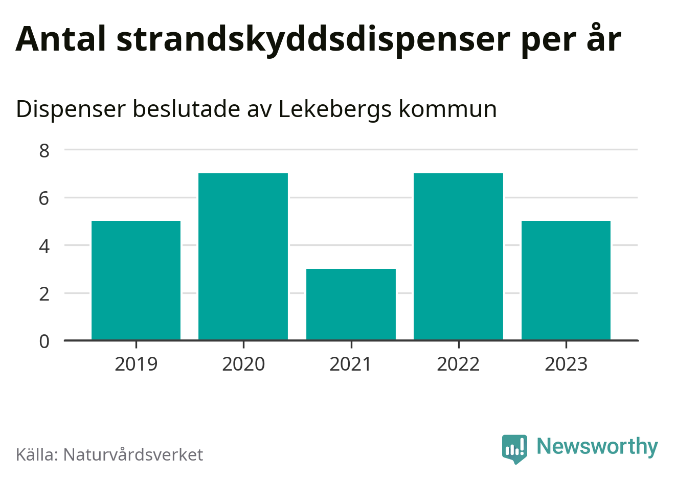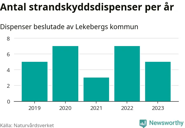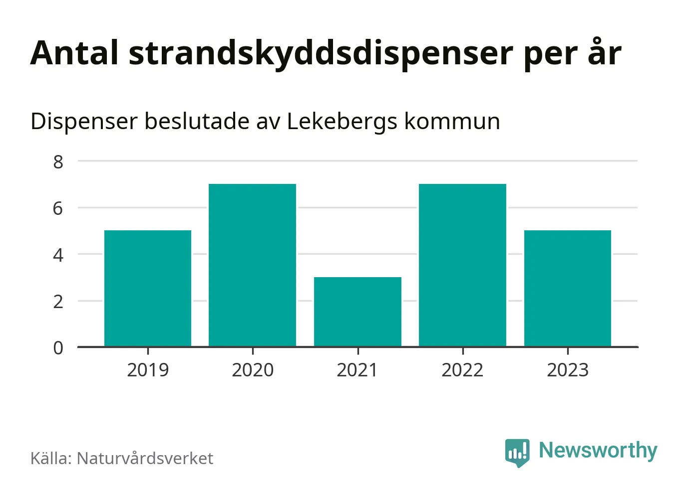 Den som vill bygga nära vatten behöver dispens från strandskyddet, lagstiftningen som ska säkra allmänhetens tillgång till stränderna och bevara livsvillkor för djur och växter. I de flesta fall är det kommunerna som godkänner dispenserna, och under de senaste fem åren har Lekebergs kommun fattat 27 beslut för totalt 31 åtgärder inom strandskyddat område, enligt den sammanställning Naturvårdsverket varje år gör. Det är färre än i de flesta kommuner i landet. Flest dispenser i Örebro län har godkänts i Askersund – 91 stycken.