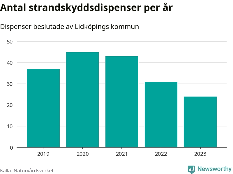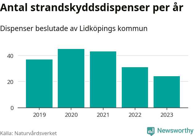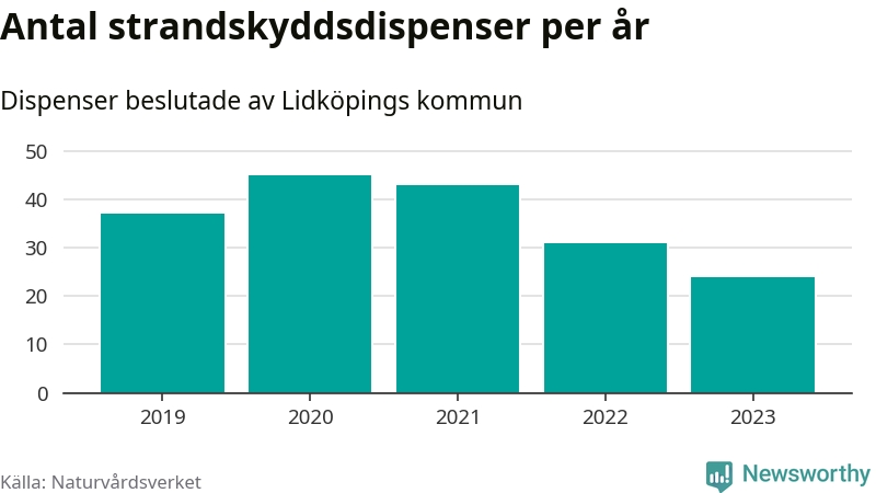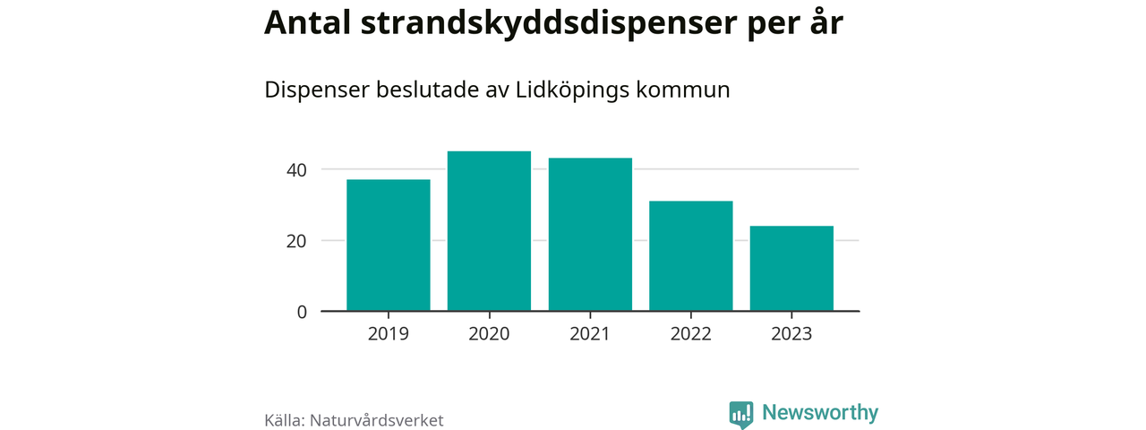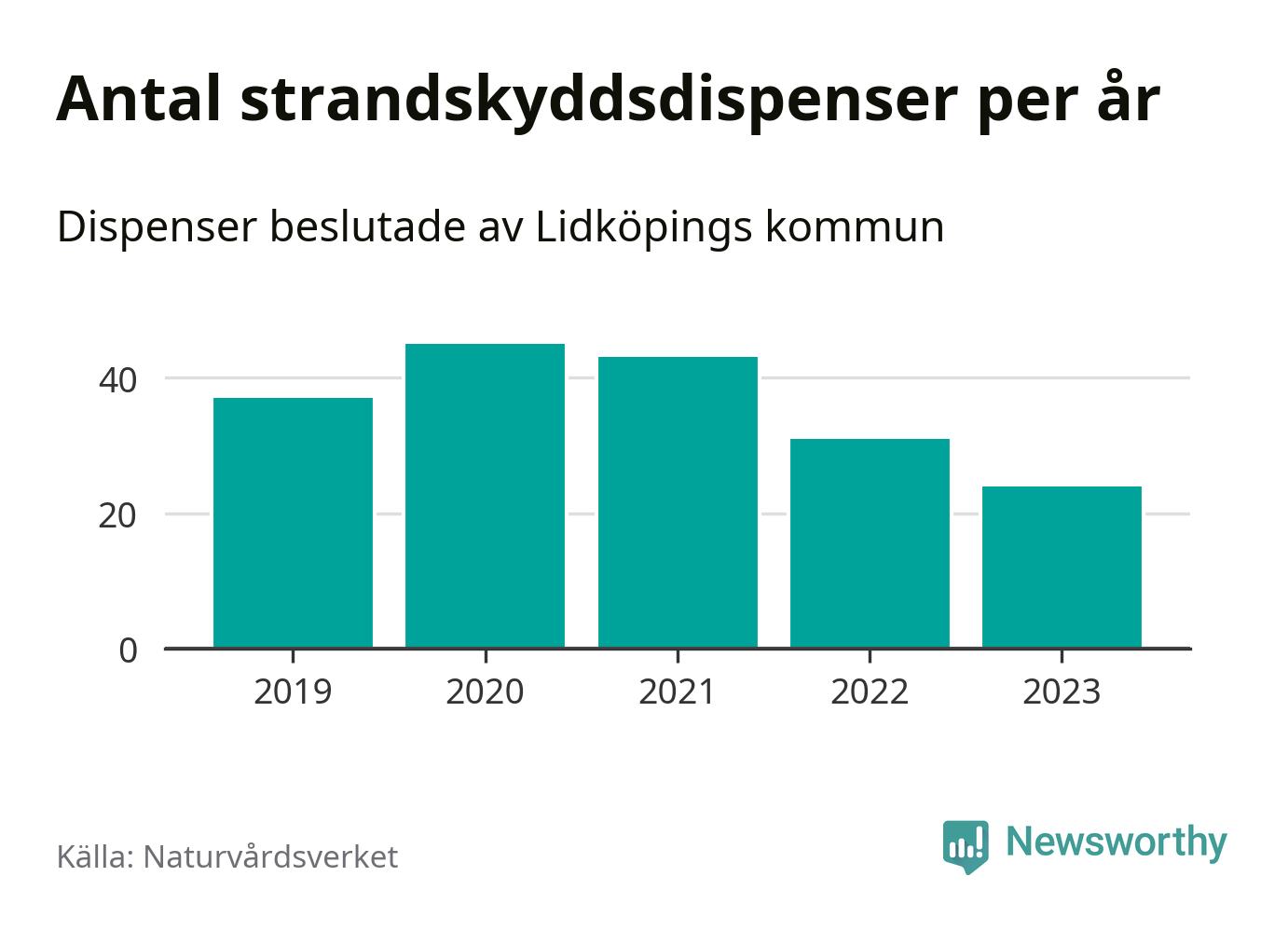 Den som vill bygga nära vatten behöver dispens från strandskyddet, lagstiftningen som ska säkra allmänhetens tillgång till stränderna och bevara livsvillkor för djur och växter. I de flesta fall är det kommunerna som godkänner dispenserna, och under de senaste fem åren har Lidköpings kommun fattat 180 beslut för totalt 309 åtgärder inom strandskyddat område, enligt den sammanställning Naturvårdsverket varje år gör. Det är fler än i de flesta kommuner i landet. Flest dispenser i Västra Götalands län har godkänts i Borås – 220 stycken.
