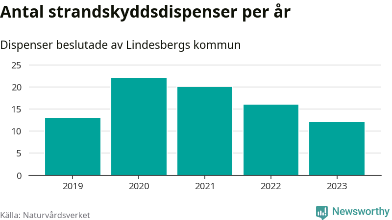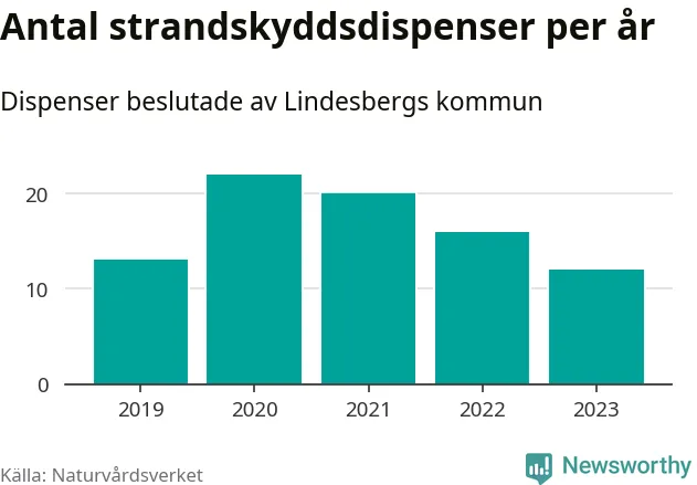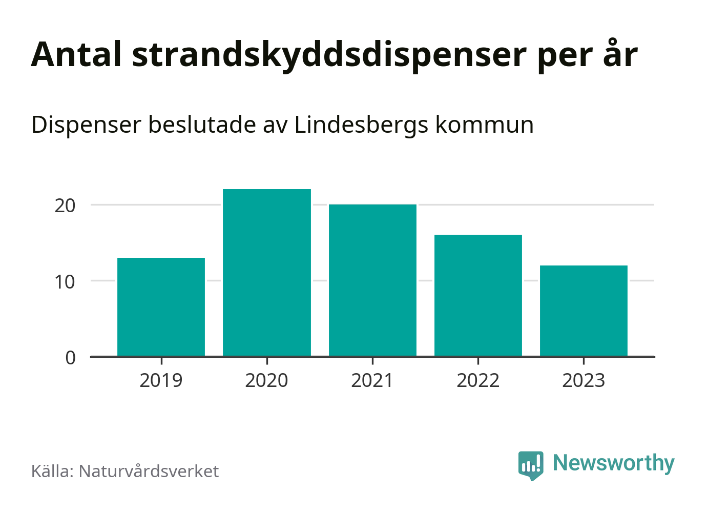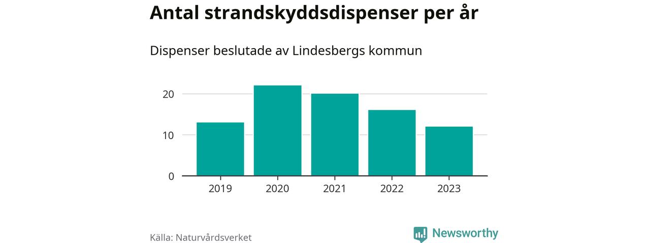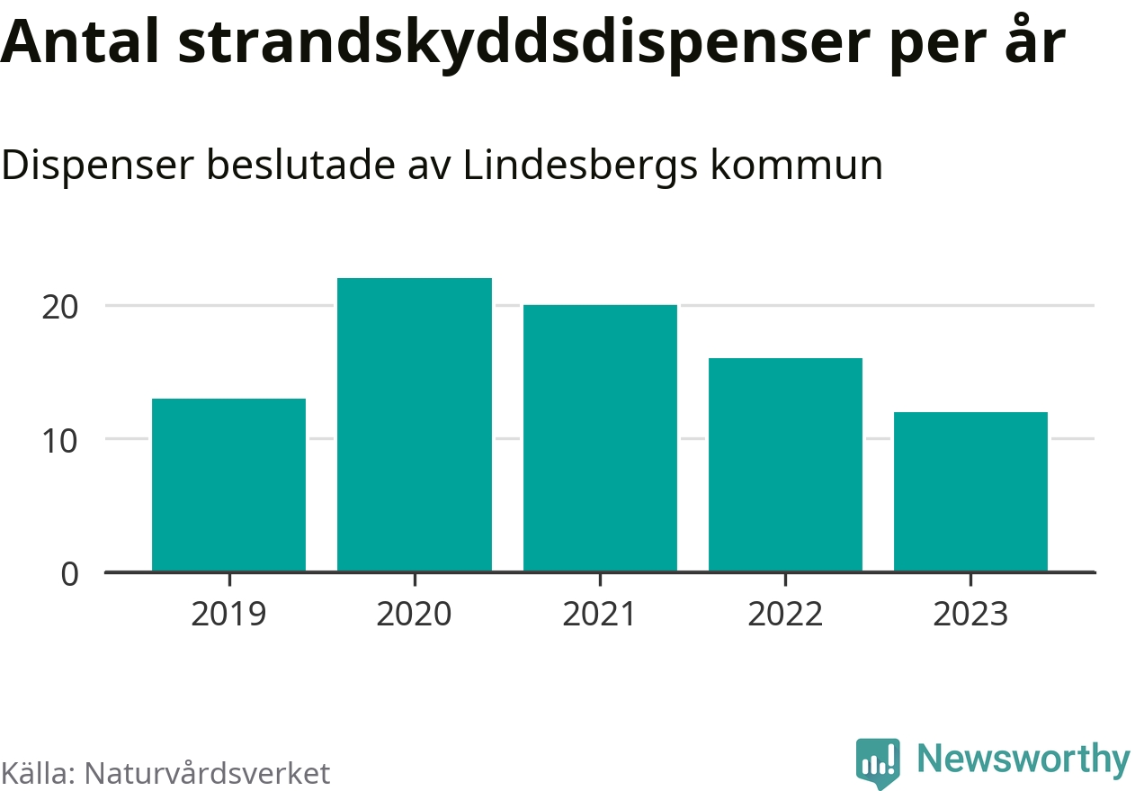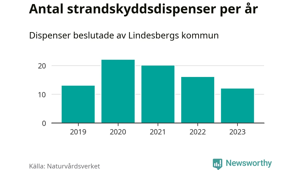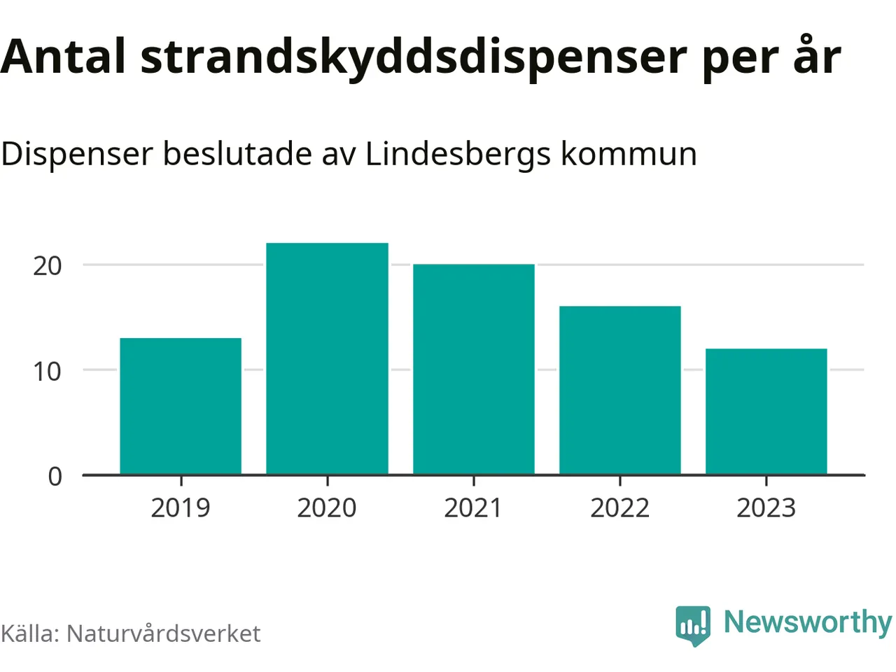 Den som vill bygga nära vatten behöver dispens från strandskyddet, lagstiftningen som ska säkra allmänhetens tillgång till stränderna och bevara livsvillkor för djur och växter. I de flesta fall är det kommunerna som godkänner dispenserna, och under de senaste fem åren har Lindesbergs kommun fattat 83 beslut för totalt 128 åtgärder inom strandskyddat område, enligt den sammanställning Naturvårdsverket varje år gör. Det är näst flest av kommunerna i Örebro län. Flest dispenser i länet har godkänts i Askersund – 91 stycken.
