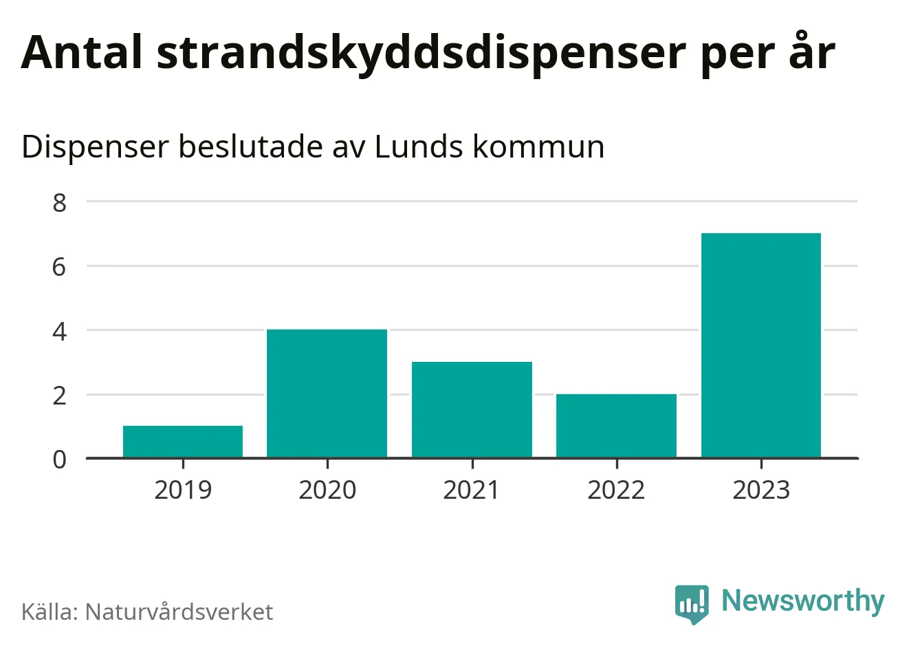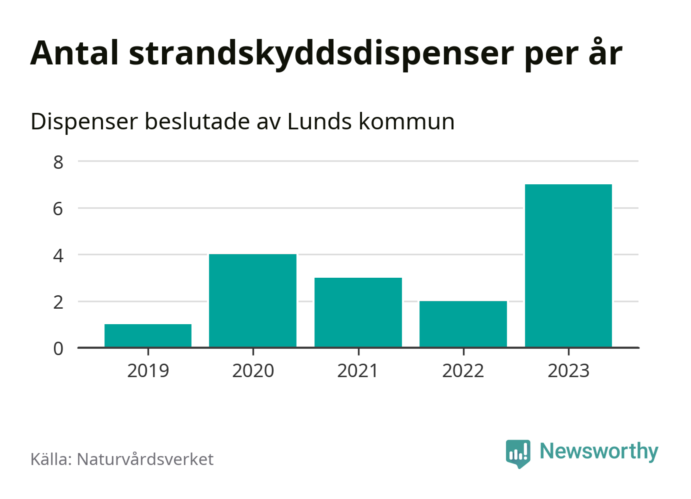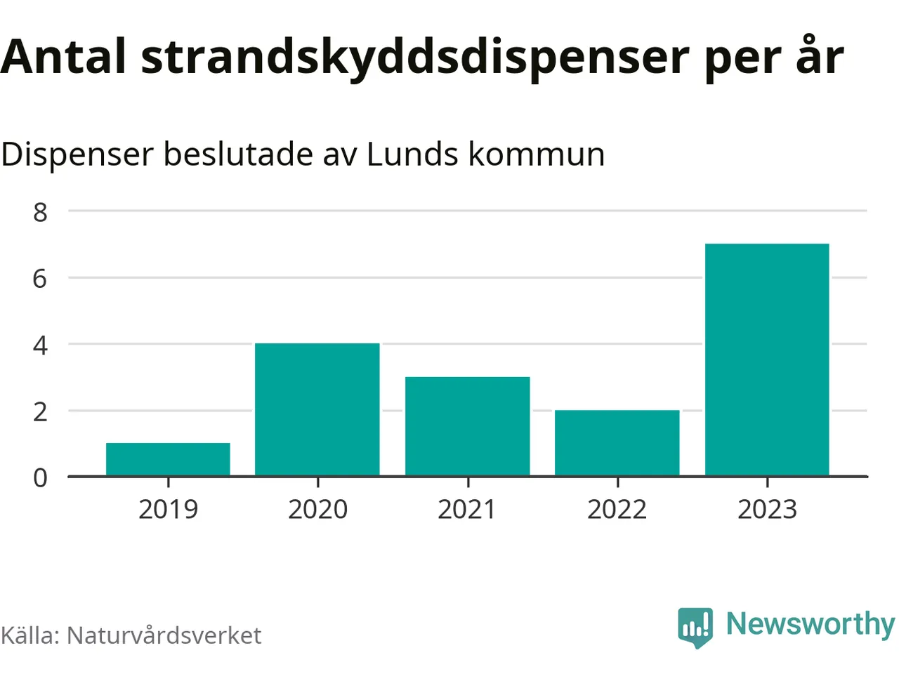 Den som vill bygga nära vatten behöver dispens från strandskyddet, lagstiftningen som ska säkra allmänhetens tillgång till stränderna och bevara livsvillkor för djur och växter. I de flesta fall är det kommunerna som godkänner dispenserna, och under de senaste fem åren har Lunds kommun fattat 17 beslut för totalt 21 åtgärder inom strandskyddat område, enligt den sammanställning Naturvårdsverket varje år gör. Det är färre än i de flesta kommuner i landet. Flest dispenser i Skåne län har godkänts i Kristianstad – 111 stycken.
