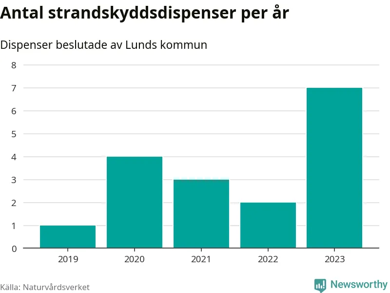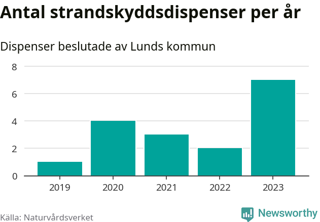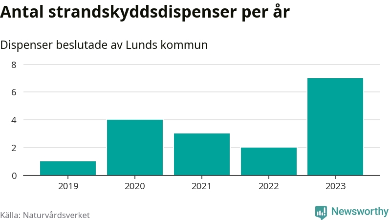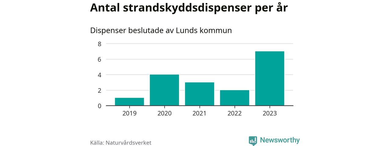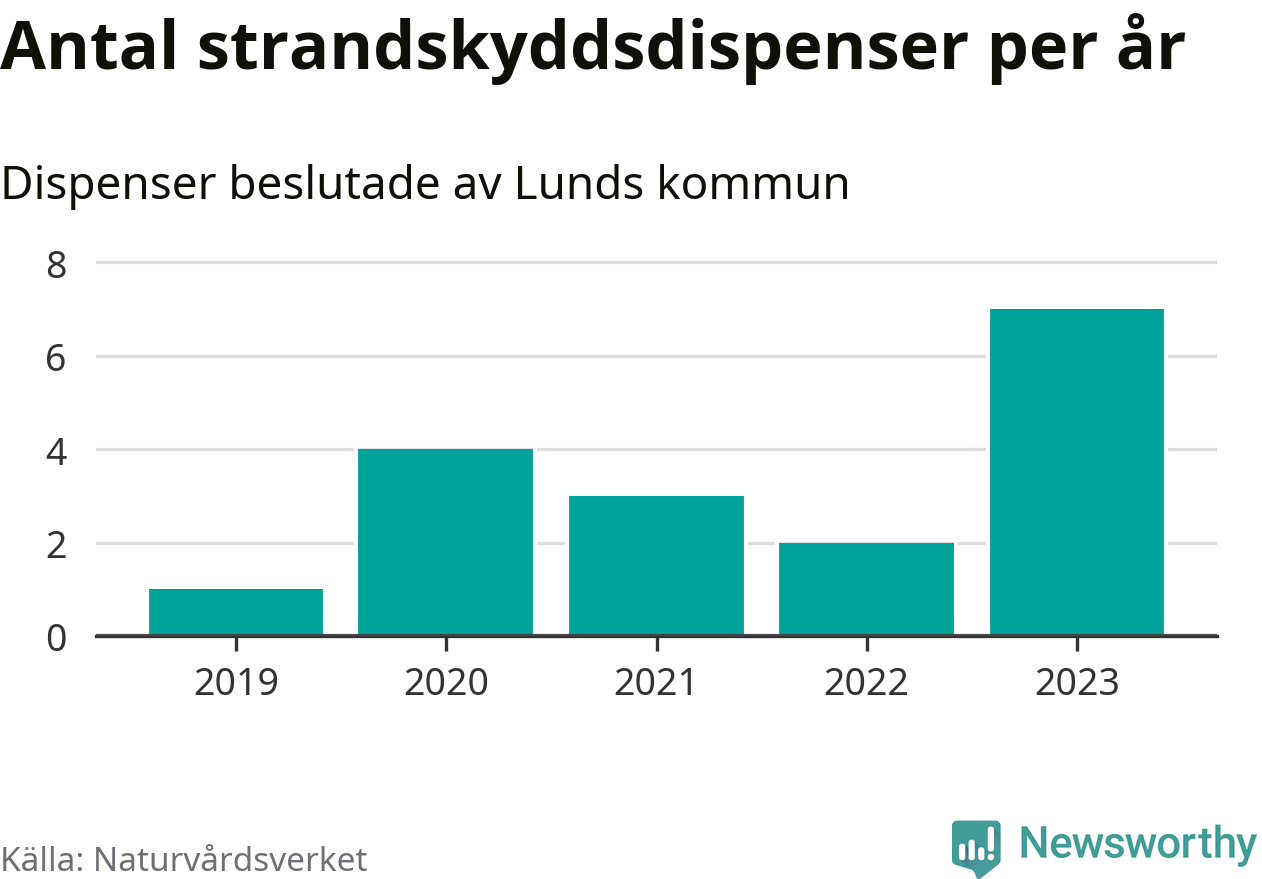 Den som vill bygga nära vatten behöver dispens från strandskyddet, lagstiftningen som ska säkra allmänhetens tillgång till stränderna och bevara livsvillkor för djur och växter. I de flesta fall är det kommunerna som godkänner dispenserna, och under de senaste fem åren har Lunds kommun fattat 17 beslut för totalt 21 åtgärder inom strandskyddat område, enligt den sammanställning Naturvårdsverket varje år gör. Det är färre än i de flesta kommuner i landet. Flest dispenser i Skåne län har godkänts i Kristianstad – 111 stycken.