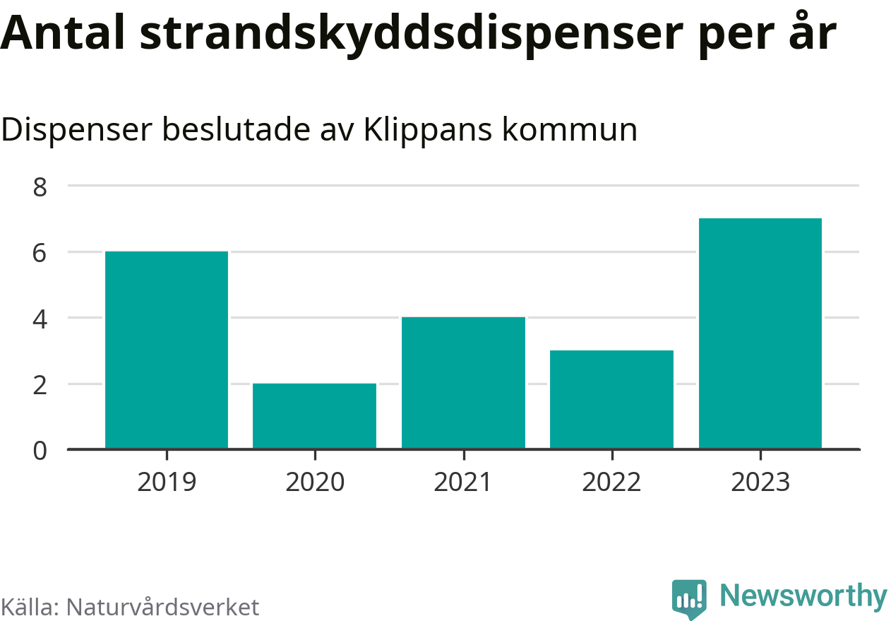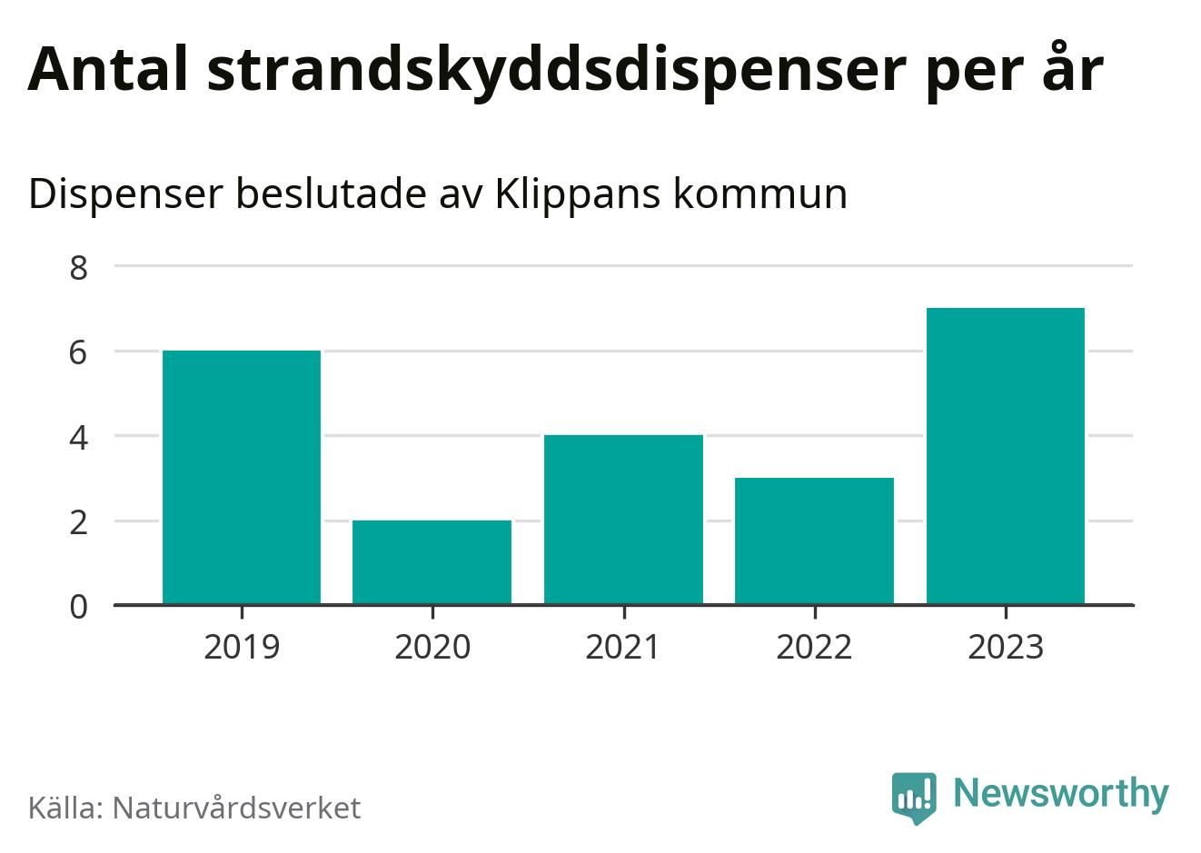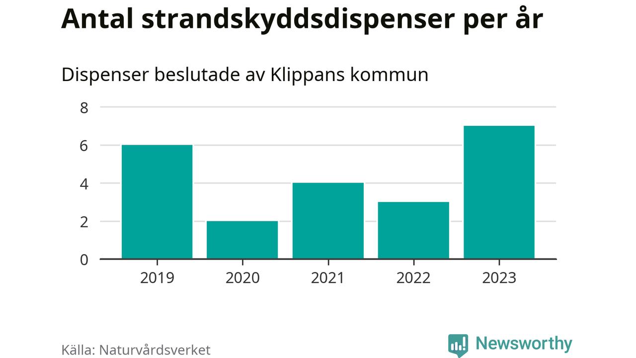 Den som vill bygga nära vatten behöver dispens från strandskyddet, lagstiftningen som ska säkra allmänhetens tillgång till stränderna och bevara livsvillkor för djur och växter. I de flesta fall är det kommunerna som godkänner dispenserna, och under de senaste fem åren har Klippans kommun fattat 22 beslut för totalt 23 åtgärder inom strandskyddat område, enligt den sammanställning Naturvårdsverket varje år gör. Det är färre än i de flesta kommuner i landet. Flest dispenser i Skåne län har godkänts i Kristianstad – 111 stycken.