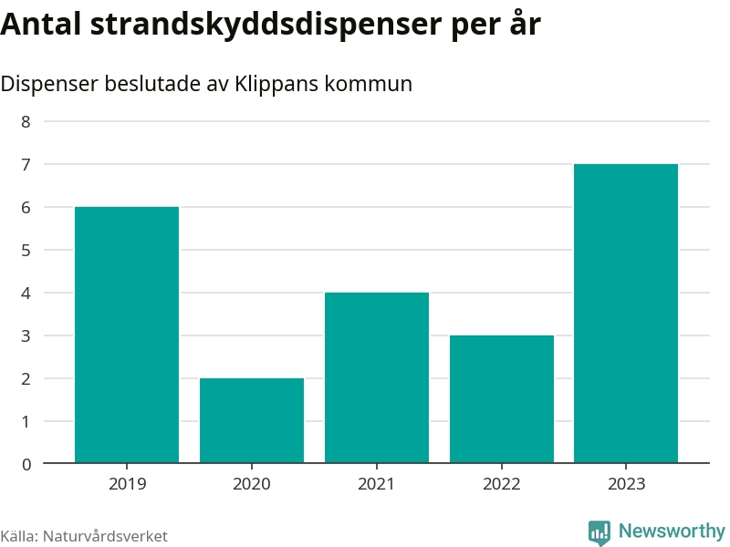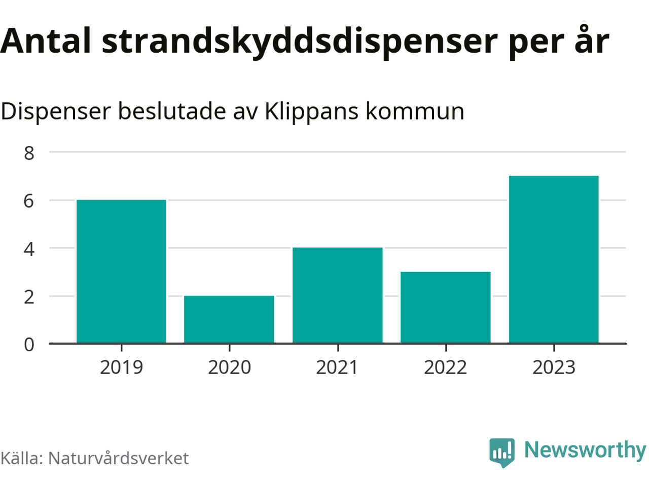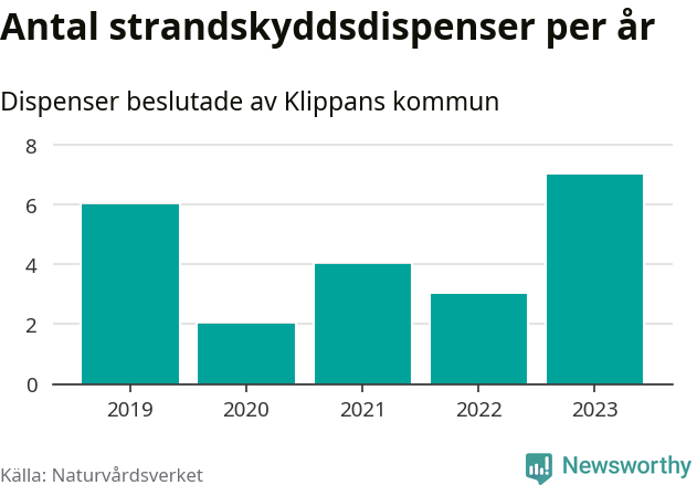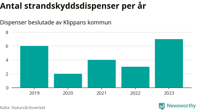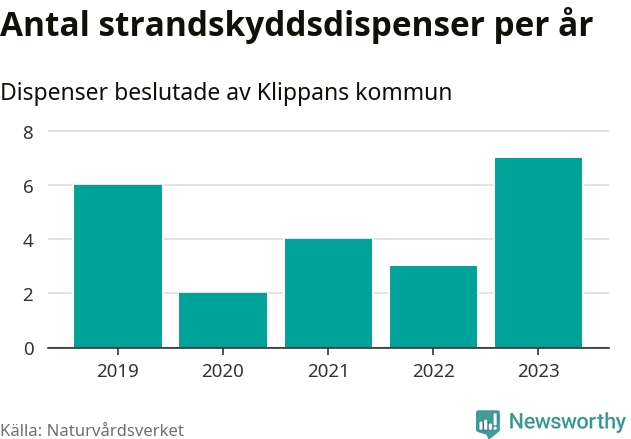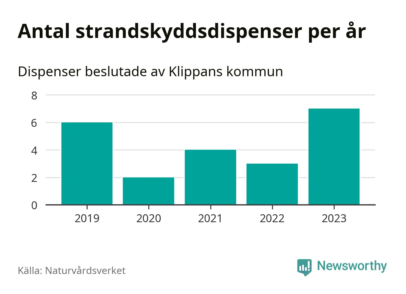 Den som vill bygga nära vatten behöver dispens från strandskyddet, lagstiftningen som ska säkra allmänhetens tillgång till stränderna och bevara livsvillkor för djur och växter. I de flesta fall är det kommunerna som godkänner dispenserna, och under de senaste fem åren har Klippans kommun fattat 22 beslut för totalt 23 åtgärder inom strandskyddat område, enligt den sammanställning Naturvårdsverket varje år gör. Det är färre än i de flesta kommuner i landet. Flest dispenser i Skåne län har godkänts i Kristianstad – 111 stycken.