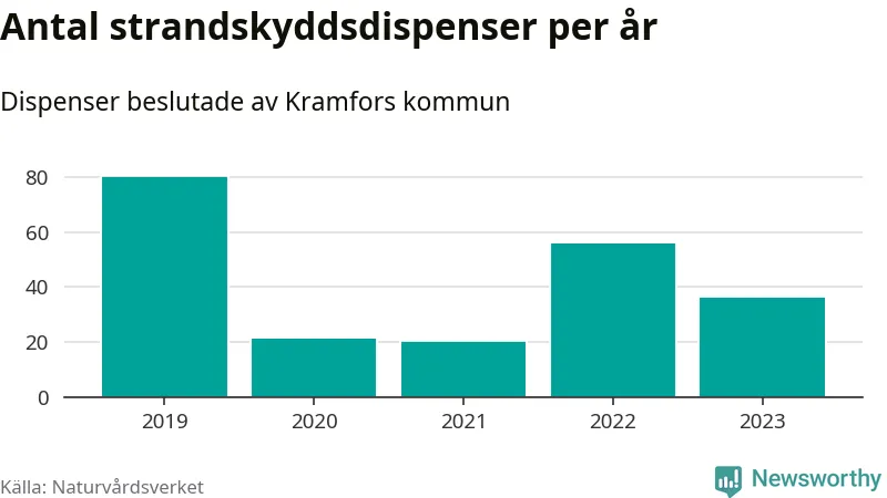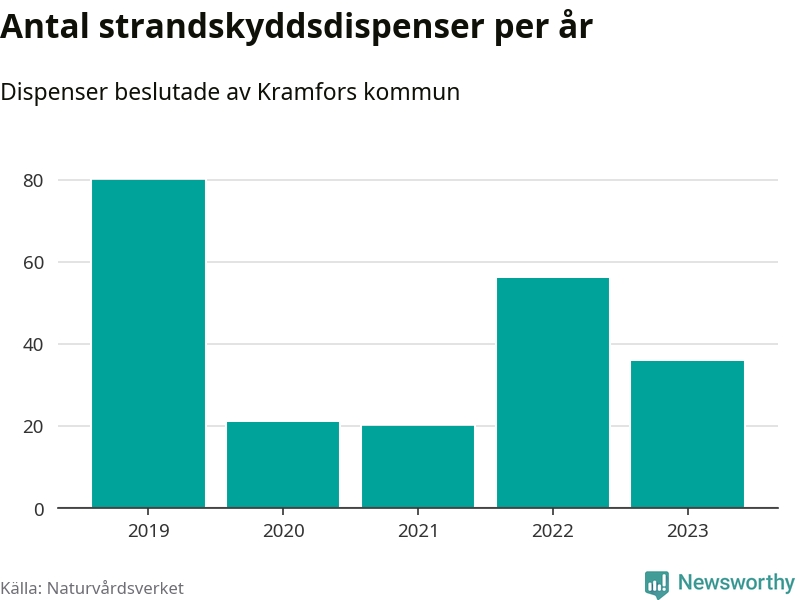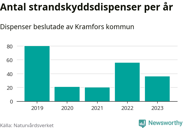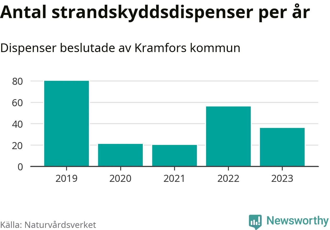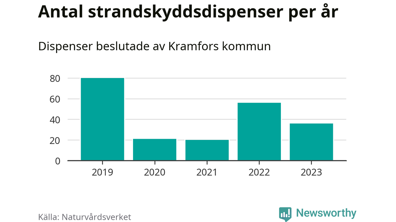 Den som vill bygga nära vatten behöver dispens från strandskyddet, lagstiftningen som ska säkra allmänhetens tillgång till stränderna och bevara livsvillkor för djur och växter. I de flesta fall är det kommunerna som godkänner dispenserna, och under de senaste fem åren har Kramfors kommun fattat 213 beslut för totalt 266 åtgärder inom strandskyddat område, enligt den sammanställning Naturvårdsverket varje år gör. Det gör kommunen till en av de mest generösa i landet. Flest dispenser i Västernorrlands län har godkänts i Örnsköldsvik – 330 stycken.