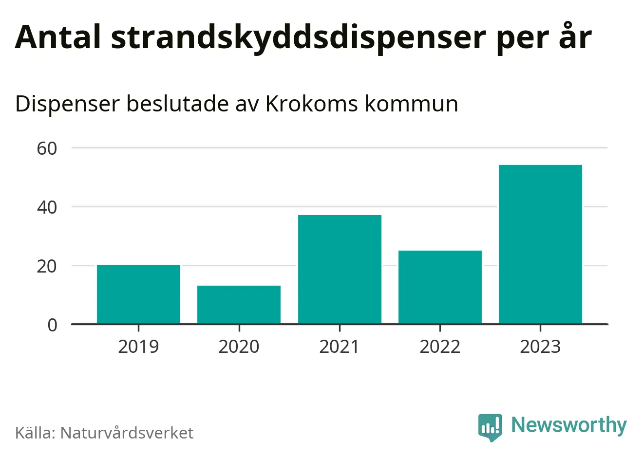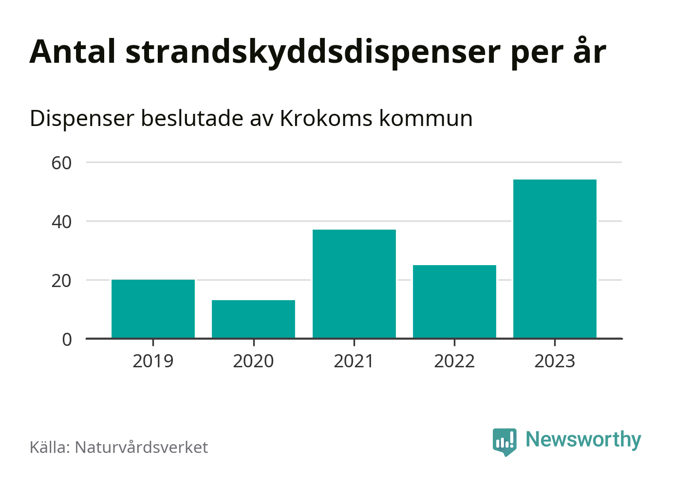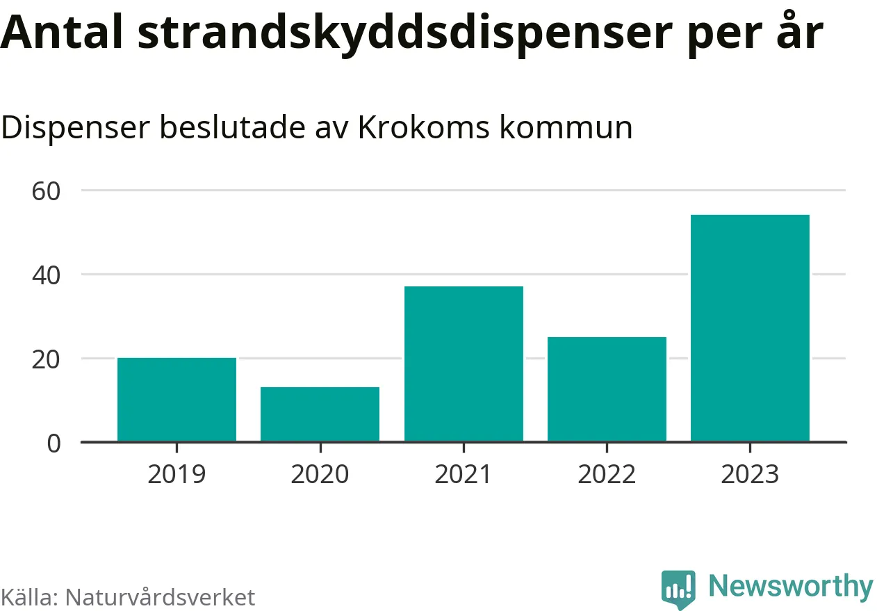Den som vill bygga nära vatten behöver dispens från strandskyddet, lagstiftningen som ska säkra allmänhetens tillgång till stränderna och bevara livsvillkor för djur och växter. I de flesta fall är det kommunerna som godkänner dispenserna, och under de senaste fem åren har Krokoms kommun fattat 149 beslut för totalt 206 åtgärder inom strandskyddat område, enligt den sammanställning Naturvårdsverket varje år gör. Det är tredje flest av kommunerna i Jämtlands län. Flest dispenser i länet har godkänts i Åre – 150 stycken.