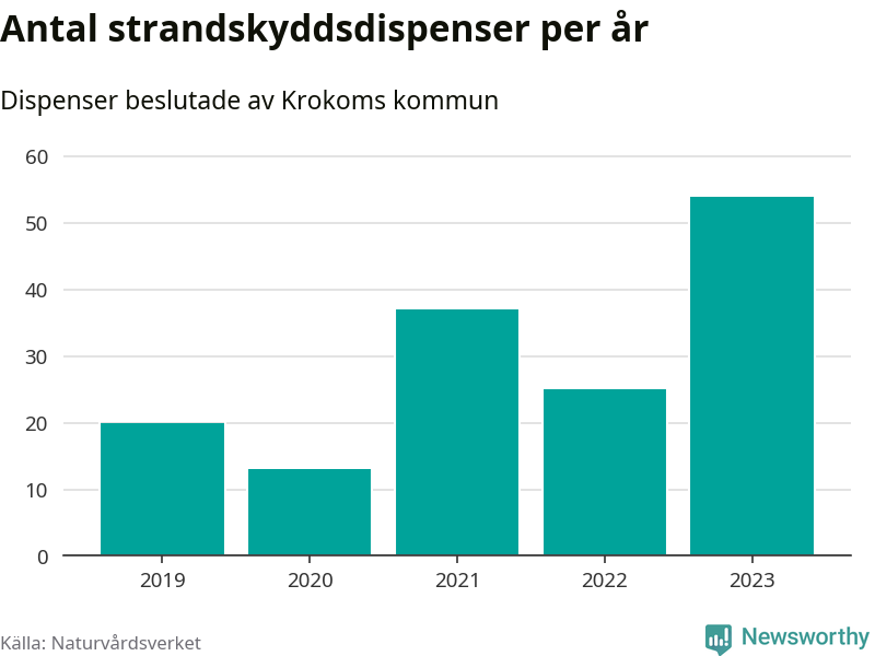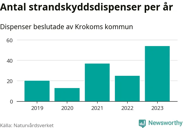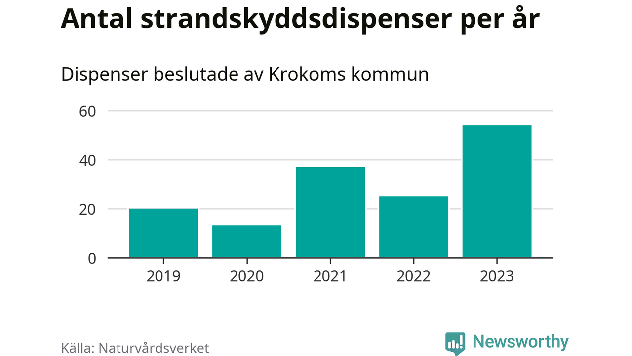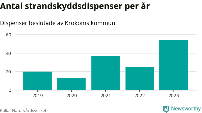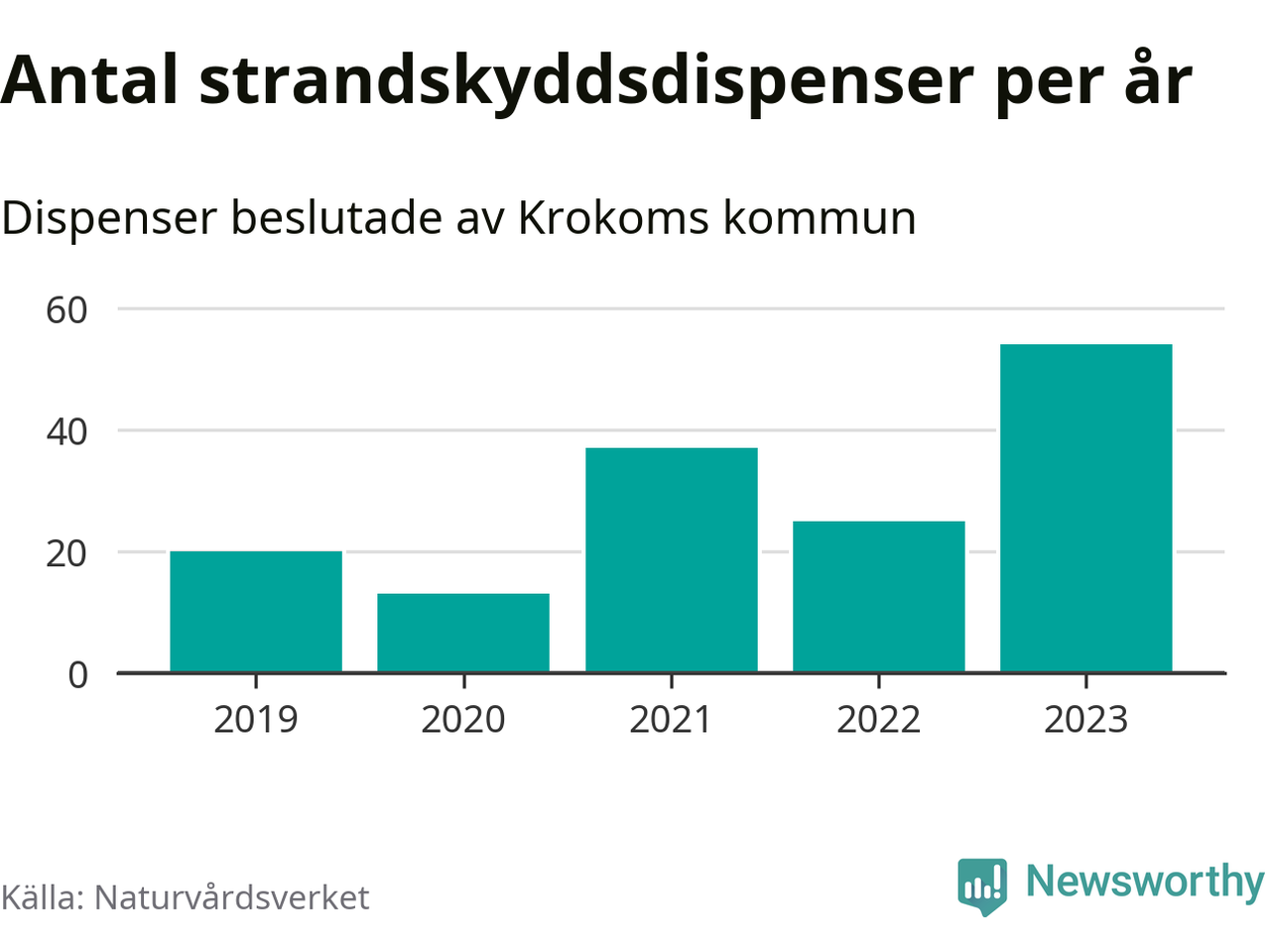 Den som vill bygga nära vatten behöver dispens från strandskyddet, lagstiftningen som ska säkra allmänhetens tillgång till stränderna och bevara livsvillkor för djur och växter. I de flesta fall är det kommunerna som godkänner dispenserna, och under de senaste fem åren har Krokoms kommun fattat 149 beslut för totalt 206 åtgärder inom strandskyddat område, enligt den sammanställning Naturvårdsverket varje år gör. Det är tredje flest av kommunerna i Jämtlands län. Flest dispenser i länet har godkänts i Åre – 150 stycken.