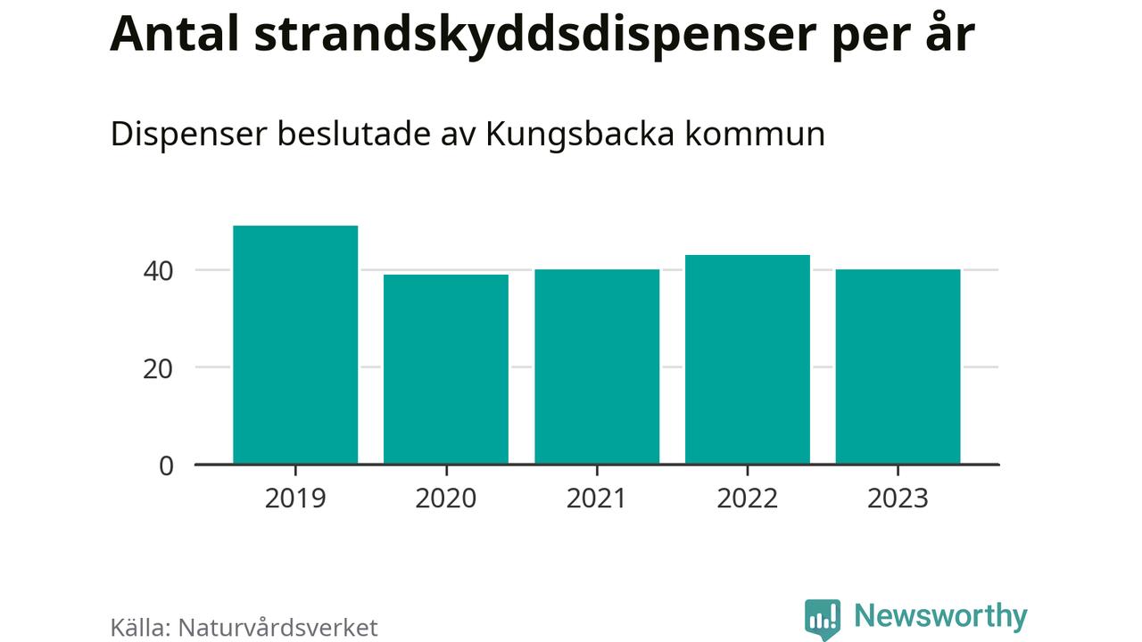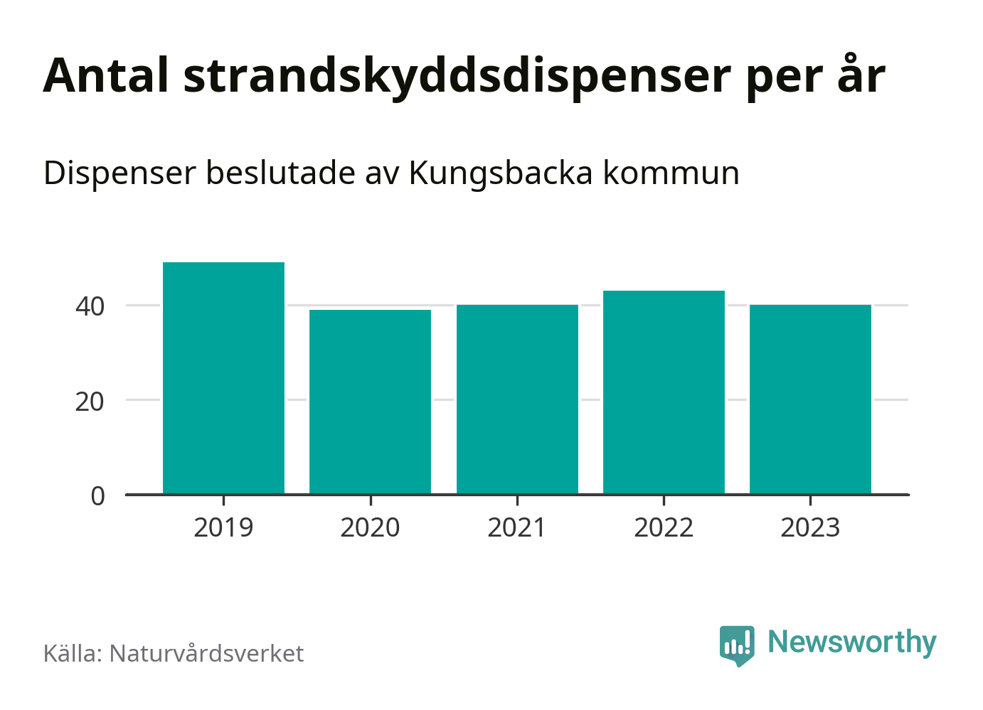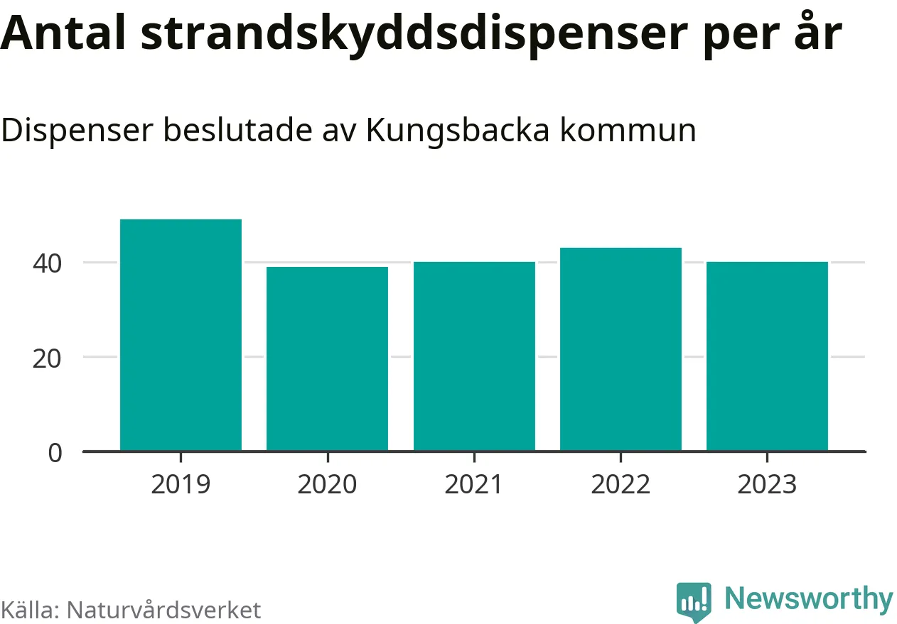 Den som vill bygga nära vatten behöver dispens från strandskyddet, lagstiftningen som ska säkra allmänhetens tillgång till stränderna och bevara livsvillkor för djur och växter. I de flesta fall är det kommunerna som godkänner dispenserna, och under de senaste fem åren har Kungsbacka kommun fattat 211 beslut för totalt 222 åtgärder inom strandskyddat område, enligt den sammanställning Naturvårdsverket varje år gör. Det gör kommunen till en av de mest generösa i landet och mest generös av kommunerna i Hallands län.