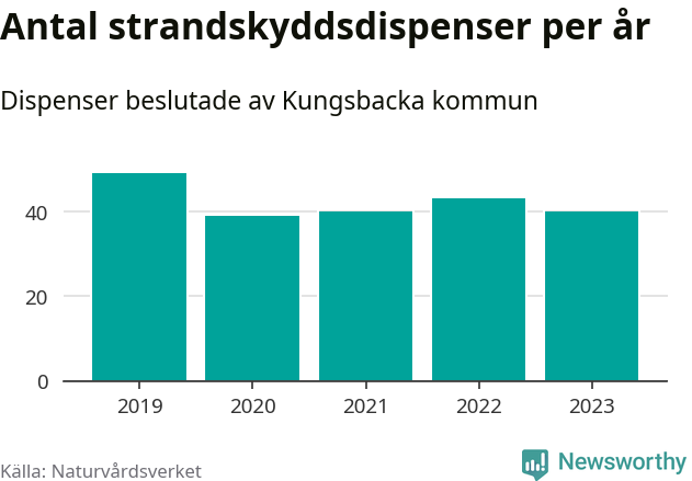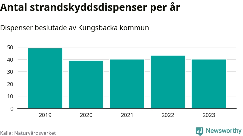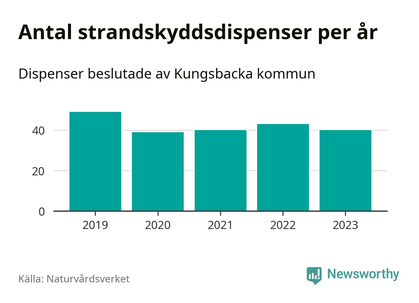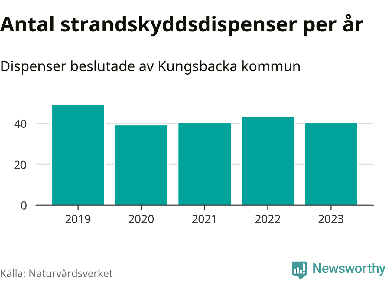 Den som vill bygga nära vatten behöver dispens från strandskyddet, lagstiftningen som ska säkra allmänhetens tillgång till stränderna och bevara livsvillkor för djur och växter. I de flesta fall är det kommunerna som godkänner dispenserna, och under de senaste fem åren har Kungsbacka kommun fattat 211 beslut för totalt 222 åtgärder inom strandskyddat område, enligt den sammanställning Naturvårdsverket varje år gör. Det gör kommunen till en av de mest generösa i landet och mest generös av kommunerna i Hallands län.