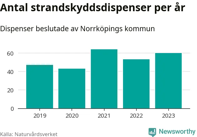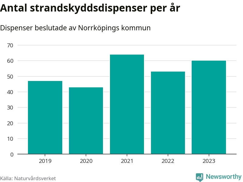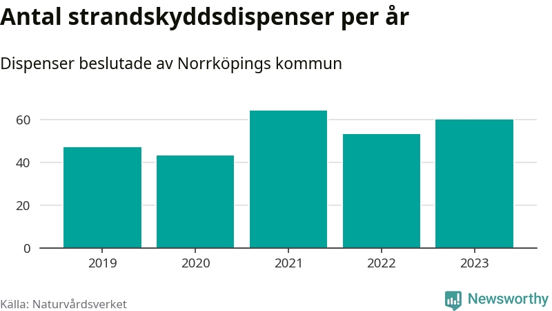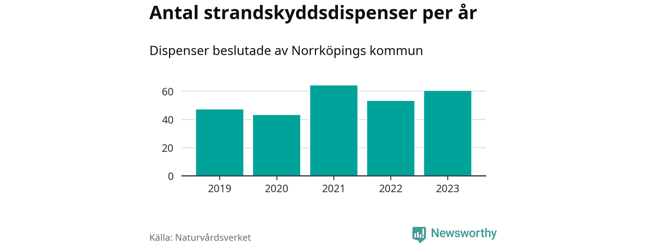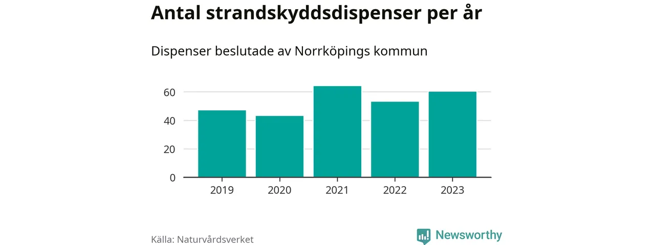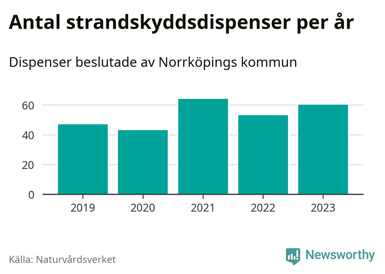 Den som vill bygga nära vatten behöver dispens från strandskyddet, lagstiftningen som ska säkra allmänhetens tillgång till stränderna och bevara livsvillkor för djur och växter. I de flesta fall är det kommunerna som godkänner dispenserna, och under de senaste fem åren har Norrköpings kommun fattat 267 beslut för totalt 389 åtgärder inom strandskyddat område, enligt den sammanställning Naturvårdsverket varje år gör. Det gör kommunen till en av de mest generösa i landet och mest generös av kommunerna i Östergötlands län.