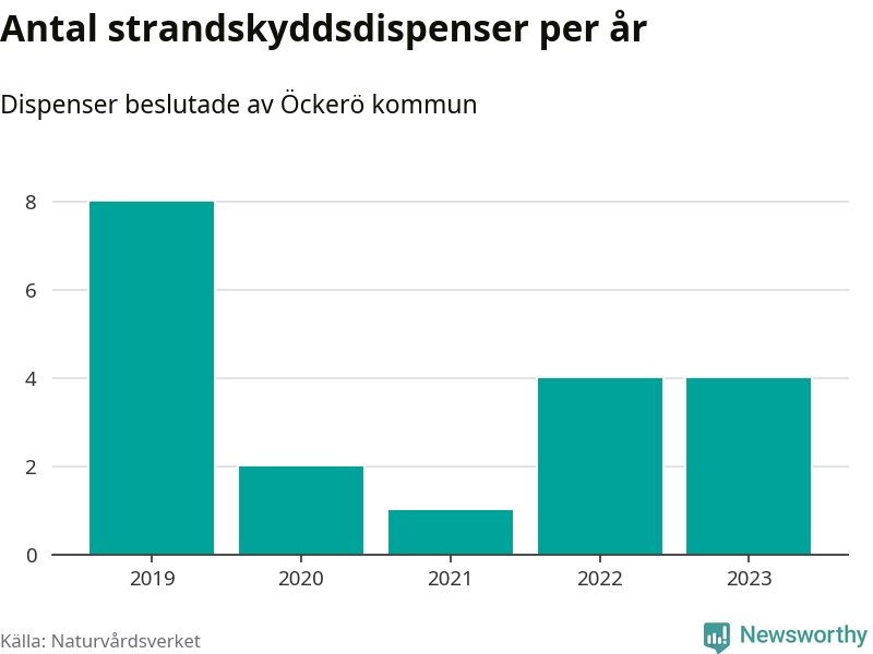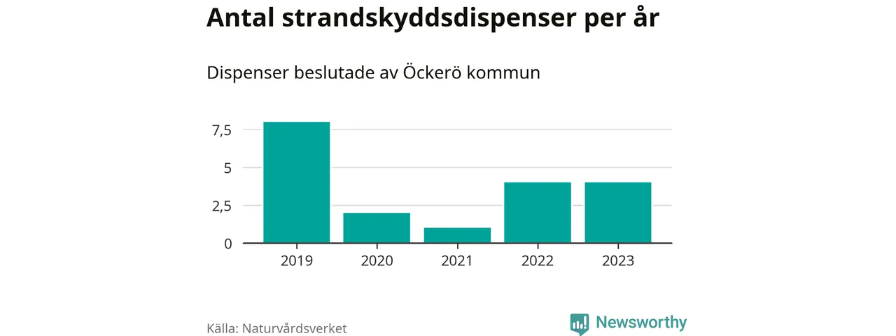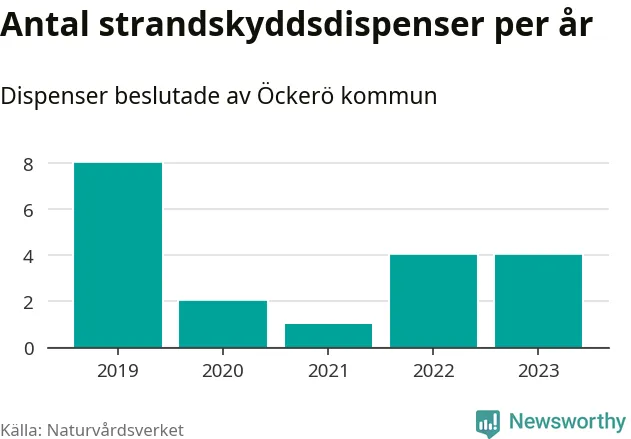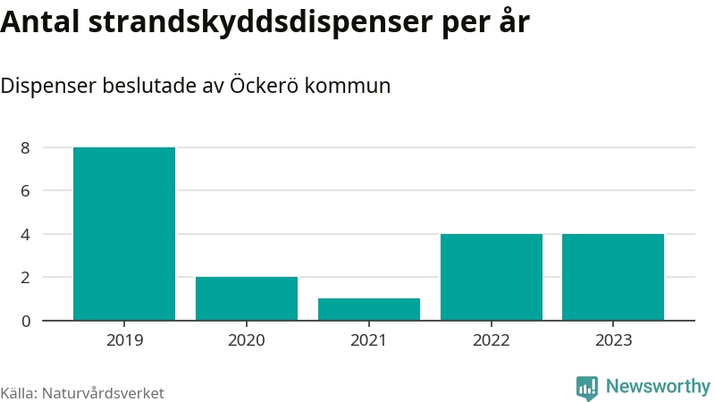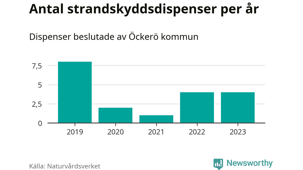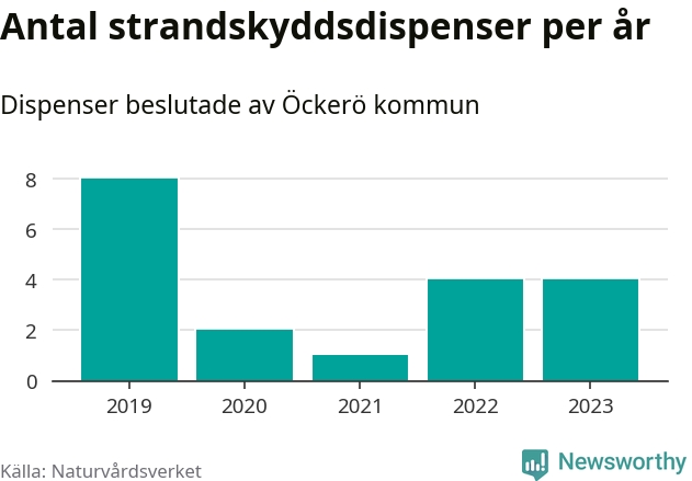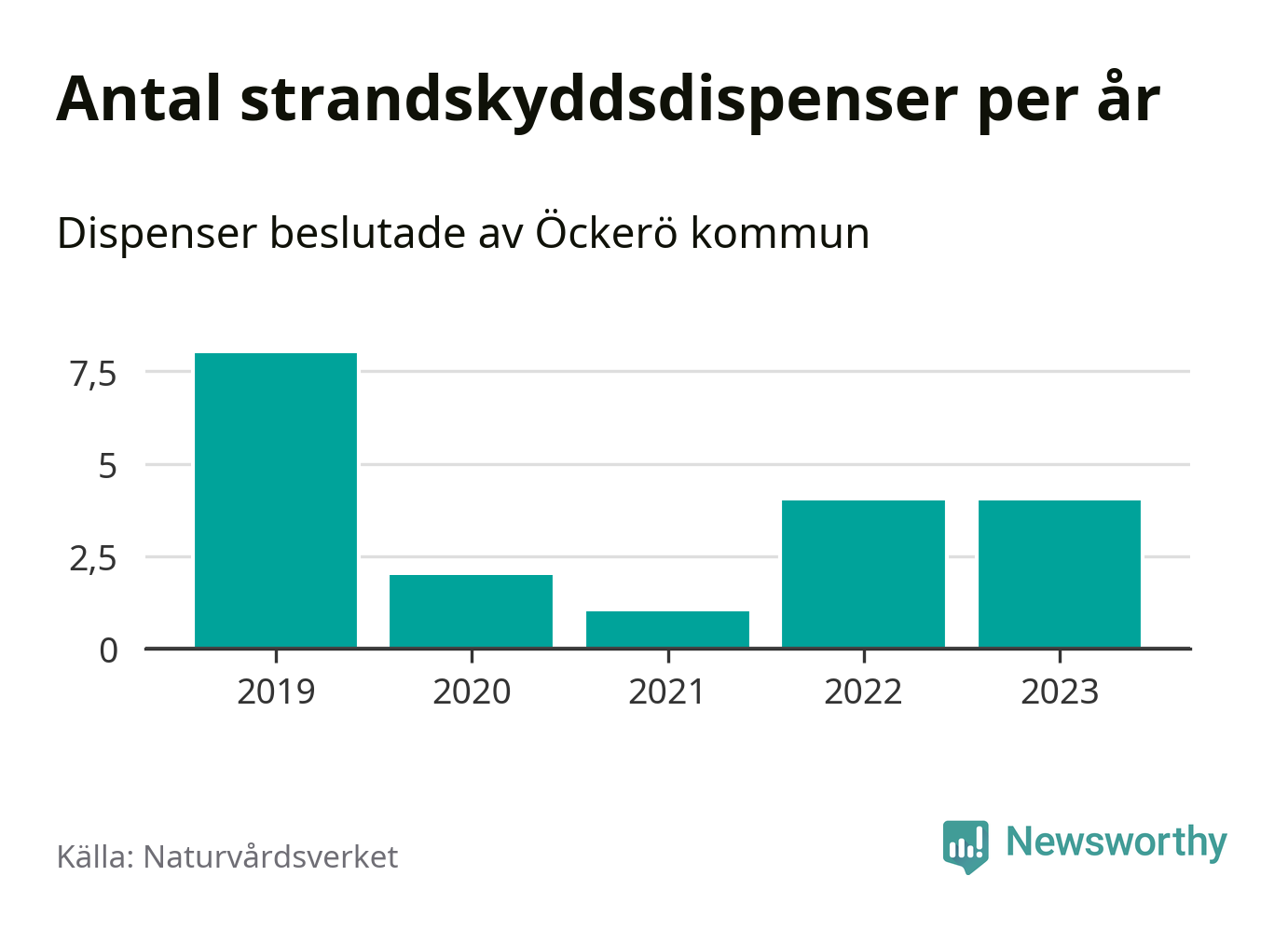 Den som vill bygga nära vatten behöver dispens från strandskyddet, lagstiftningen som ska säkra allmänhetens tillgång till stränderna och bevara livsvillkor för djur och växter. I de flesta fall är det kommunerna som godkänner dispenserna, och under de senaste fem åren har Öckerö kommun fattat 19 beslut för totalt 39 åtgärder inom strandskyddat område, enligt den sammanställning Naturvårdsverket varje år gör. Det är färre än i de flesta kommuner i landet. Flest dispenser i Västra Götalands län har godkänts i Borås – 220 stycken.