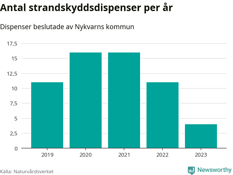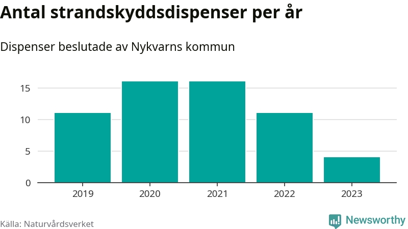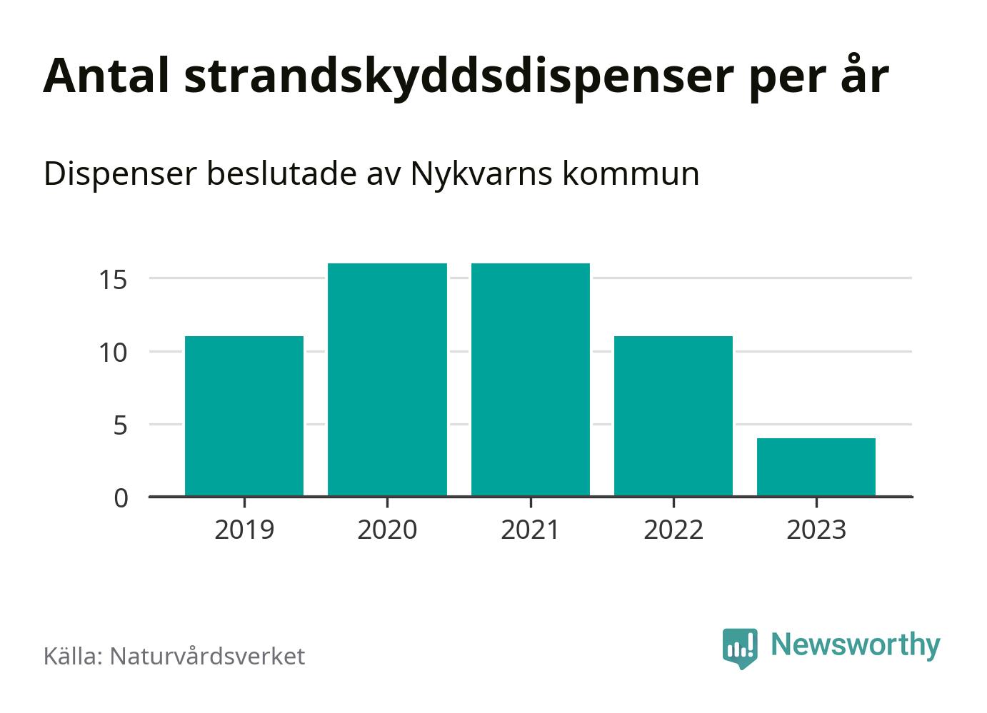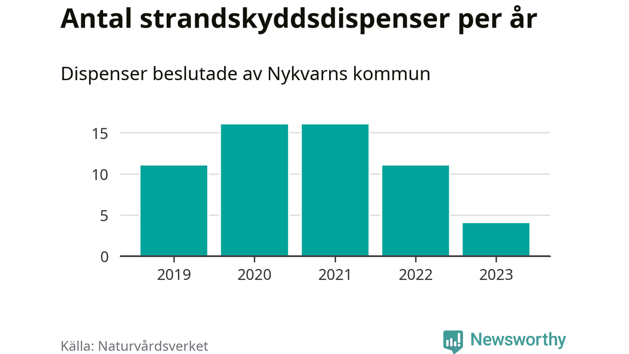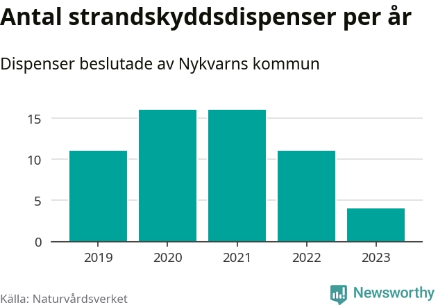 Den som vill bygga nära vatten behöver dispens från strandskyddet, lagstiftningen som ska säkra allmänhetens tillgång till stränderna och bevara livsvillkor för djur och växter. I de flesta fall är det kommunerna som godkänner dispenserna, och under de senaste fem åren har Nykvarns kommun fattat 58 beslut för totalt 81 åtgärder inom strandskyddat område, enligt den sammanställning Naturvårdsverket varje år gör. Det är inte en siffra som sticker ut särskilt jämfört med andra kommuner. Flest dispenser i Stockholms län har godkänts i Värmdö – 1 571 stycken.