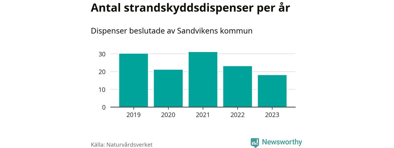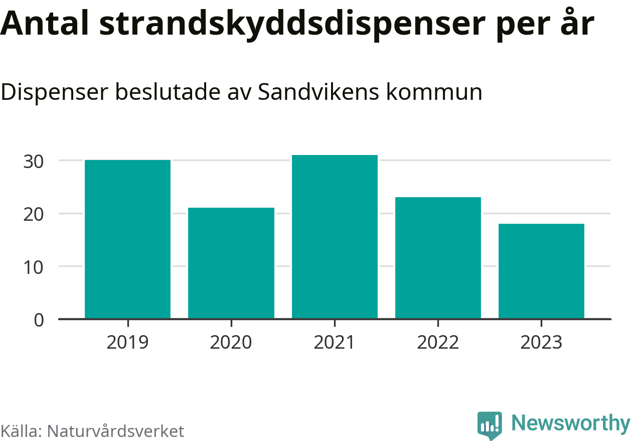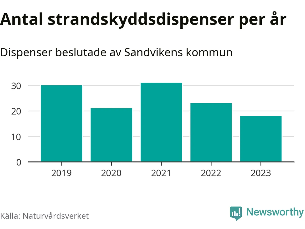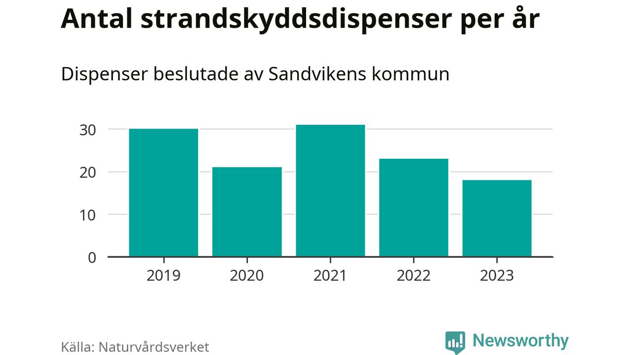 Den som vill bygga nära vatten behöver dispens från strandskyddet, lagstiftningen som ska säkra allmänhetens tillgång till stränderna och bevara livsvillkor för djur och växter. I de flesta fall är det kommunerna som godkänner dispenserna, och under de senaste fem åren har Sandvikens kommun fattat 123 beslut för totalt 169 åtgärder inom strandskyddat område, enligt den sammanställning Naturvårdsverket varje år gör. Det är fler än i de flesta kommuner i landet. Flest dispenser i Gävleborgs län har godkänts i Hudiksvall – 526 stycken.