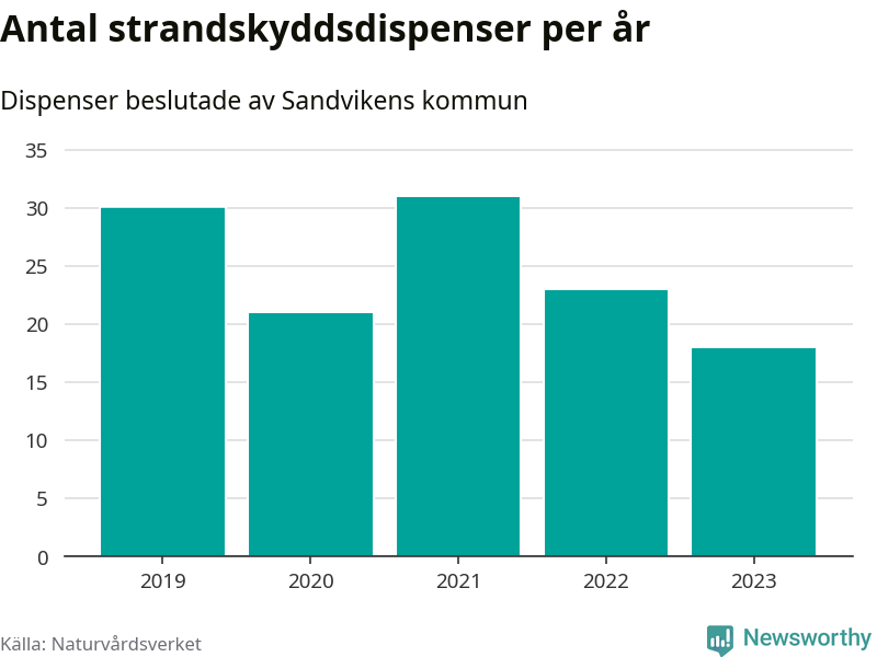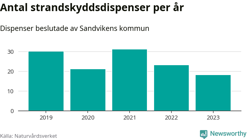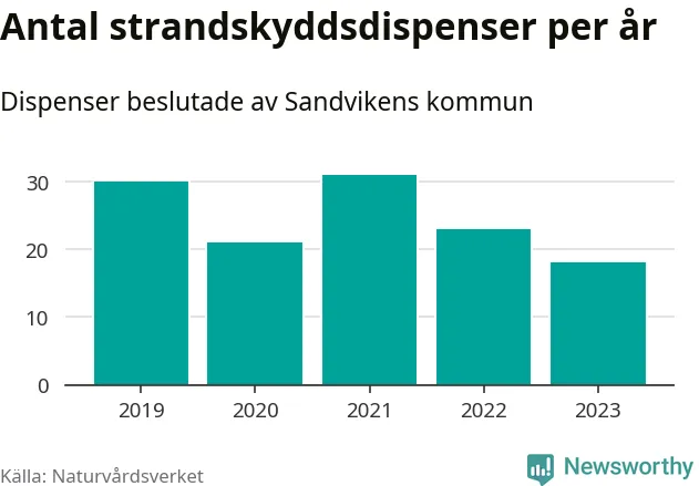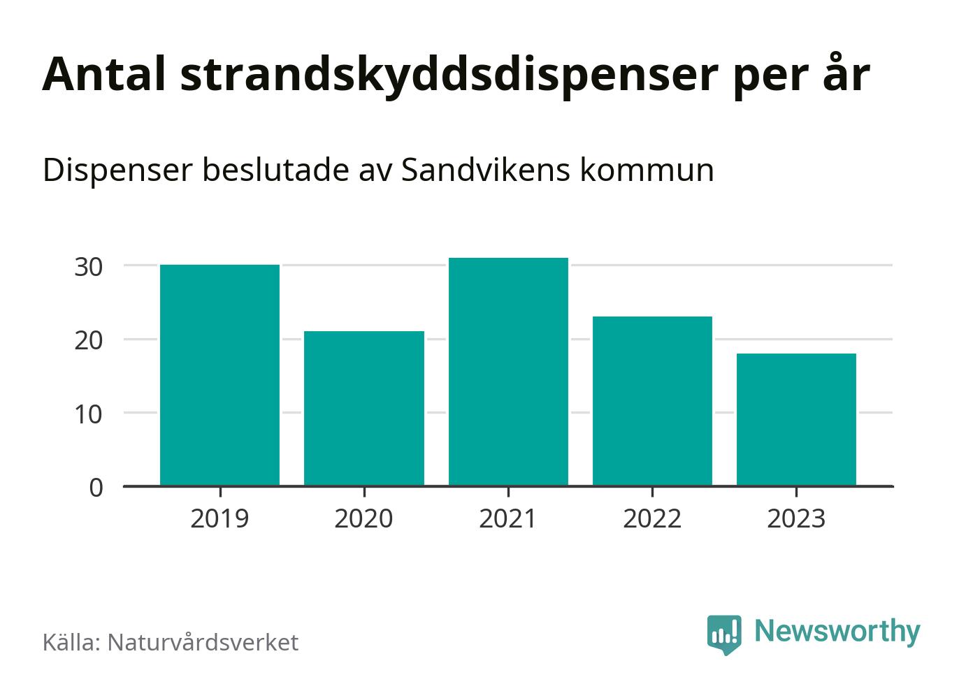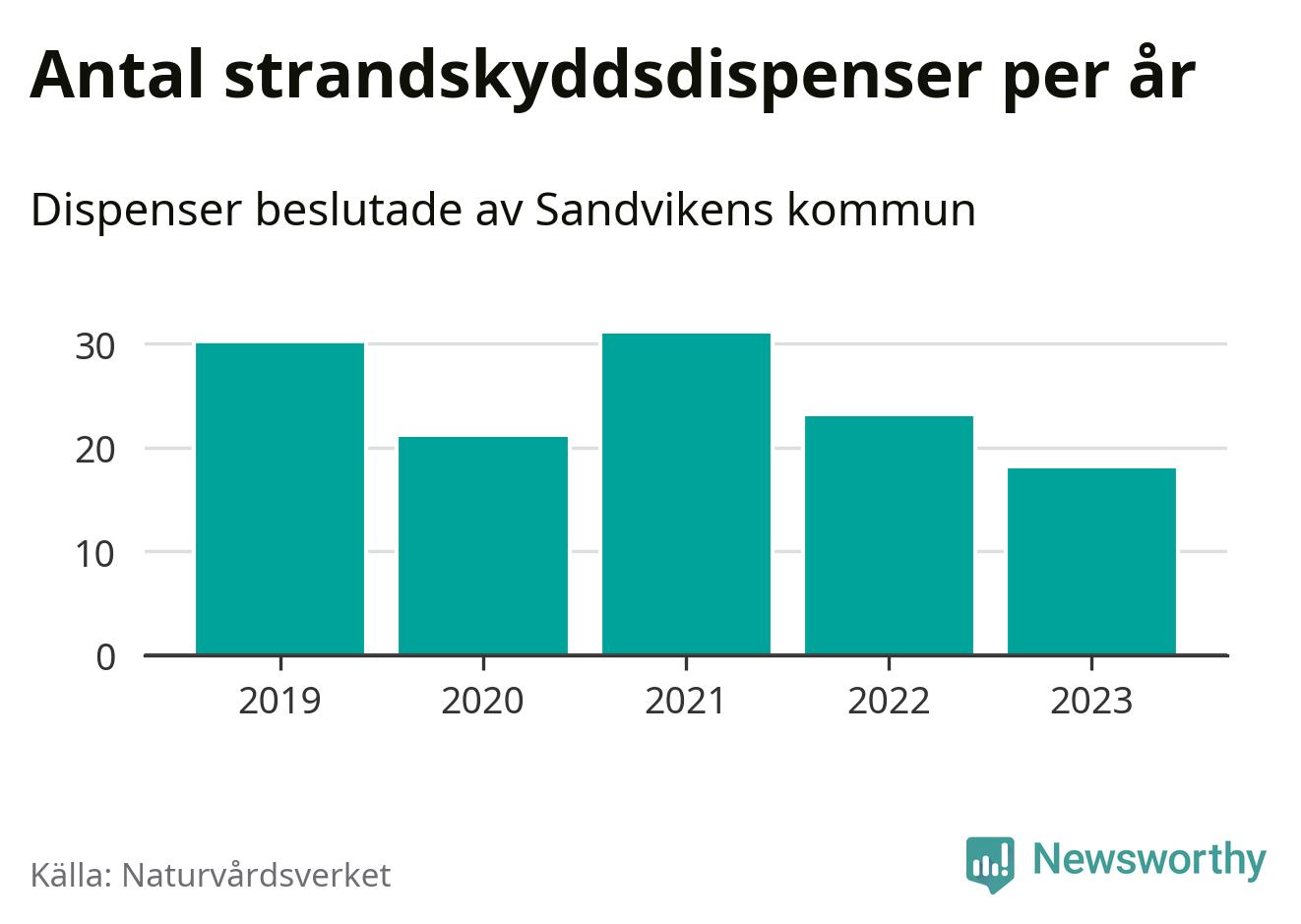 Den som vill bygga nära vatten behöver dispens från strandskyddet, lagstiftningen som ska säkra allmänhetens tillgång till stränderna och bevara livsvillkor för djur och växter. I de flesta fall är det kommunerna som godkänner dispenserna, och under de senaste fem åren har Sandvikens kommun fattat 123 beslut för totalt 169 åtgärder inom strandskyddat område, enligt den sammanställning Naturvårdsverket varje år gör. Det är fler än i de flesta kommuner i landet. Flest dispenser i Gävleborgs län har godkänts i Hudiksvall – 526 stycken.