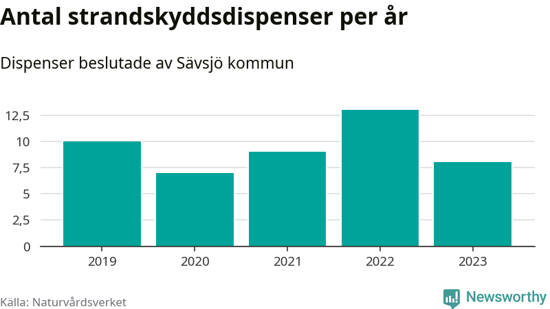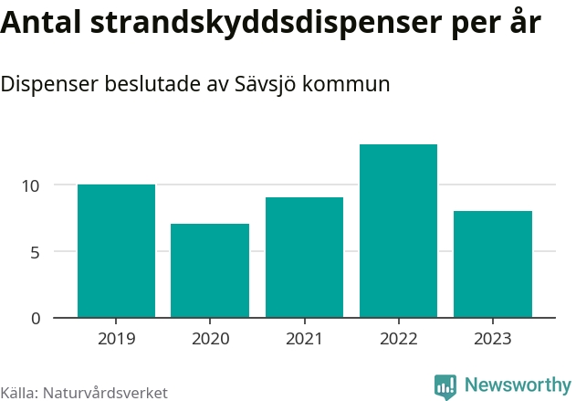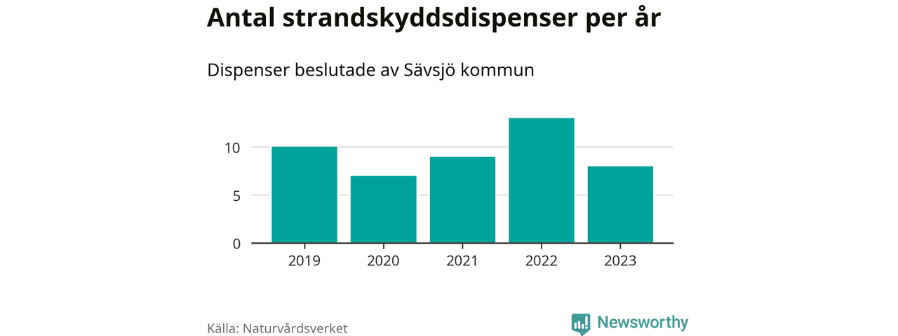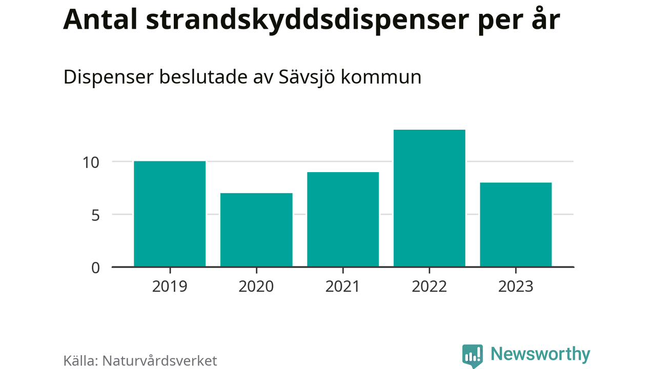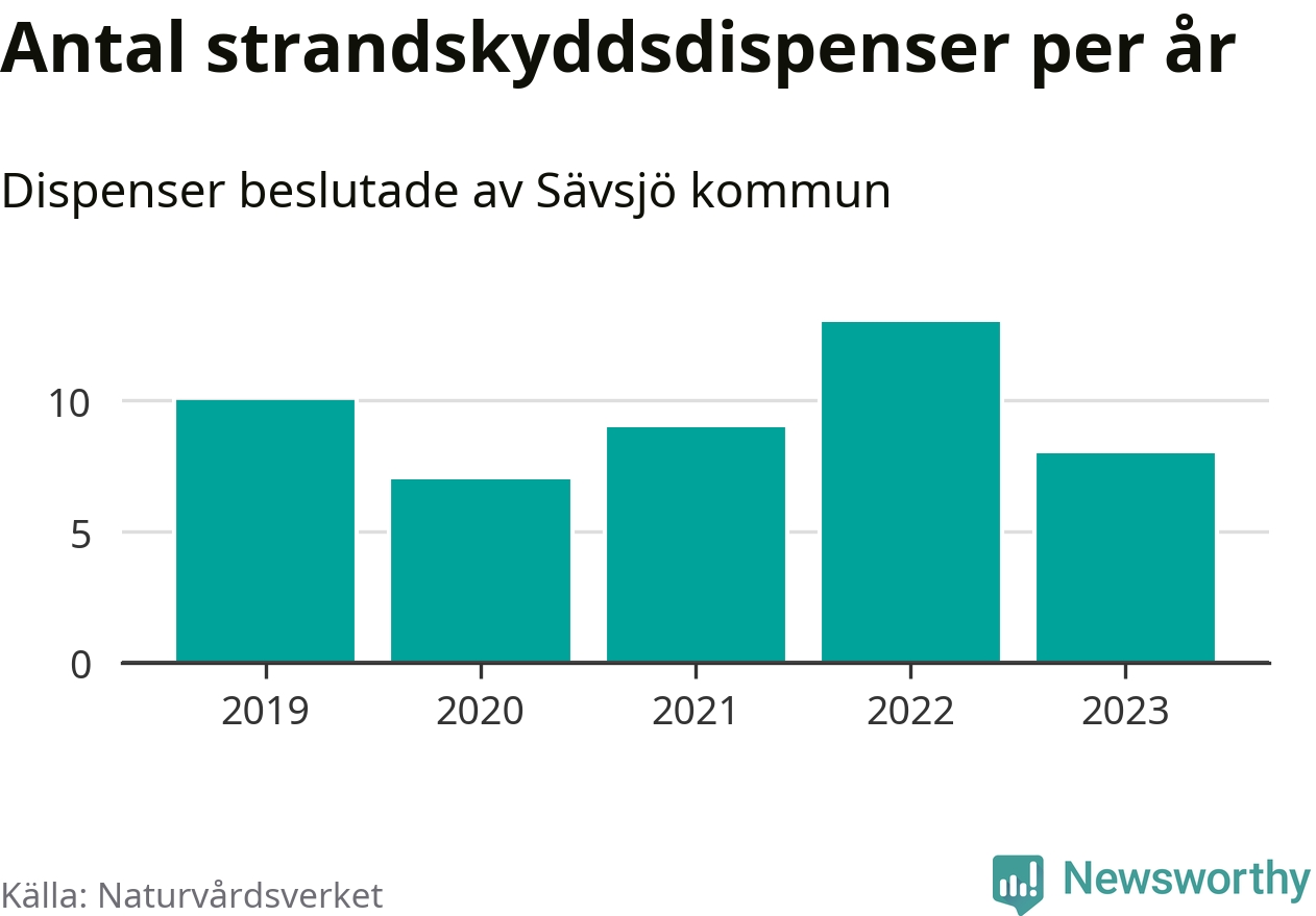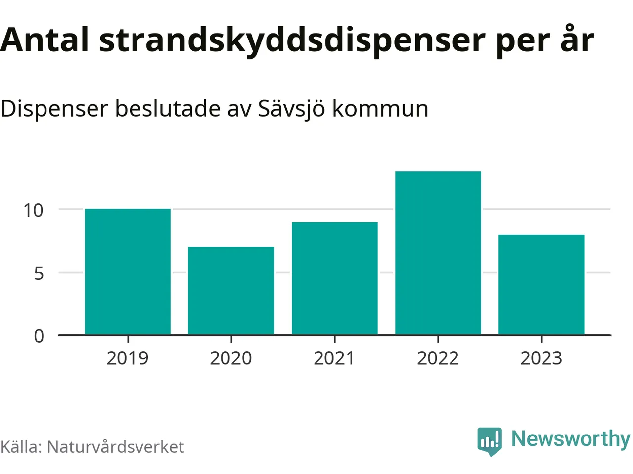 Den som vill bygga nära vatten behöver dispens från strandskyddet, lagstiftningen som ska säkra allmänhetens tillgång till stränderna och bevara livsvillkor för djur och växter. I de flesta fall är det kommunerna som godkänner dispenserna, och under de senaste fem åren har Sävsjö kommun fattat 47 beslut för totalt 50 åtgärder inom strandskyddat område, enligt den sammanställning Naturvårdsverket varje år gör. Det är inte en siffra som sticker ut särskilt jämfört med andra kommuner. Flest dispenser i Jönköpings län har godkänts i Jönköping – 157 stycken.
