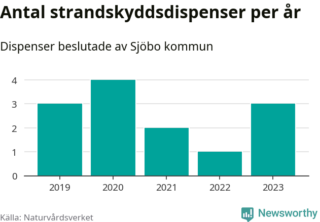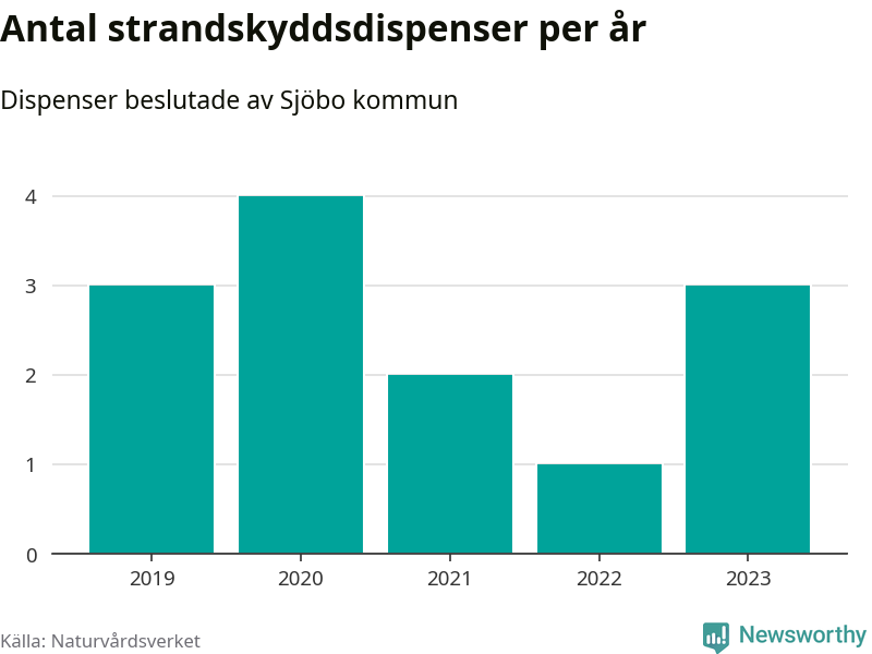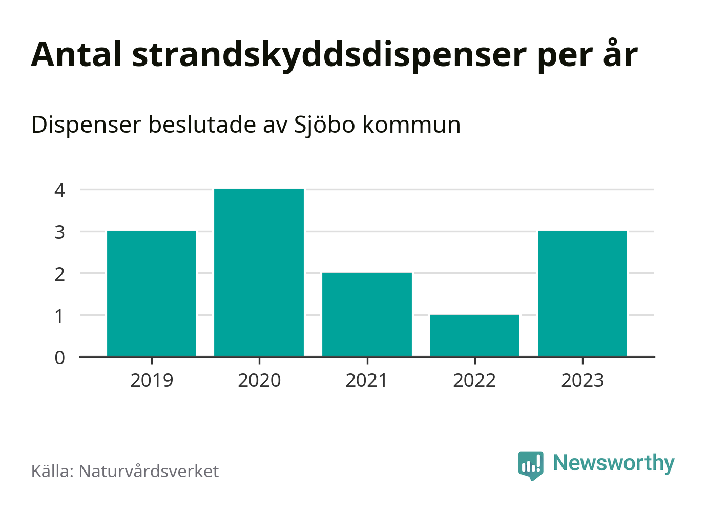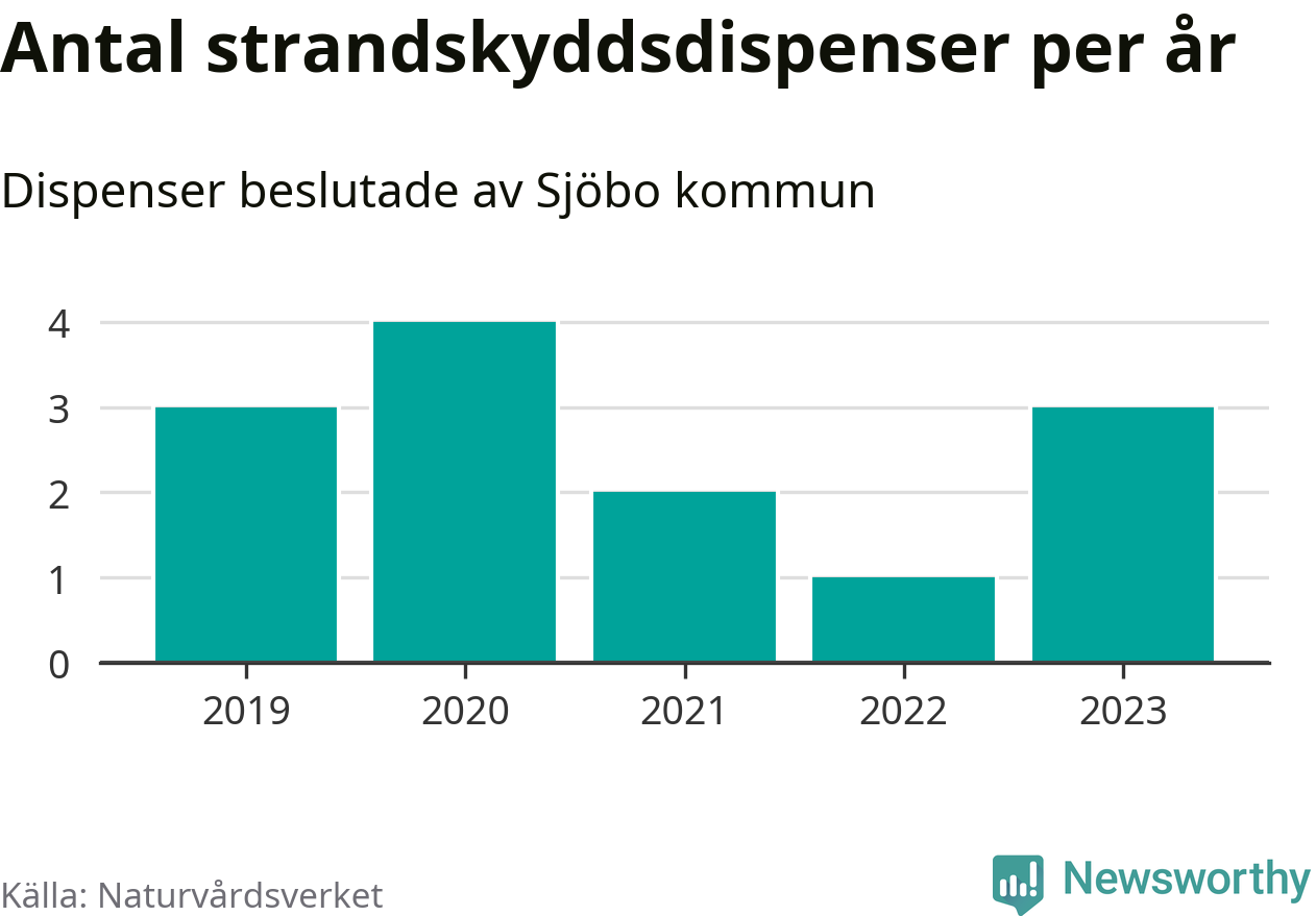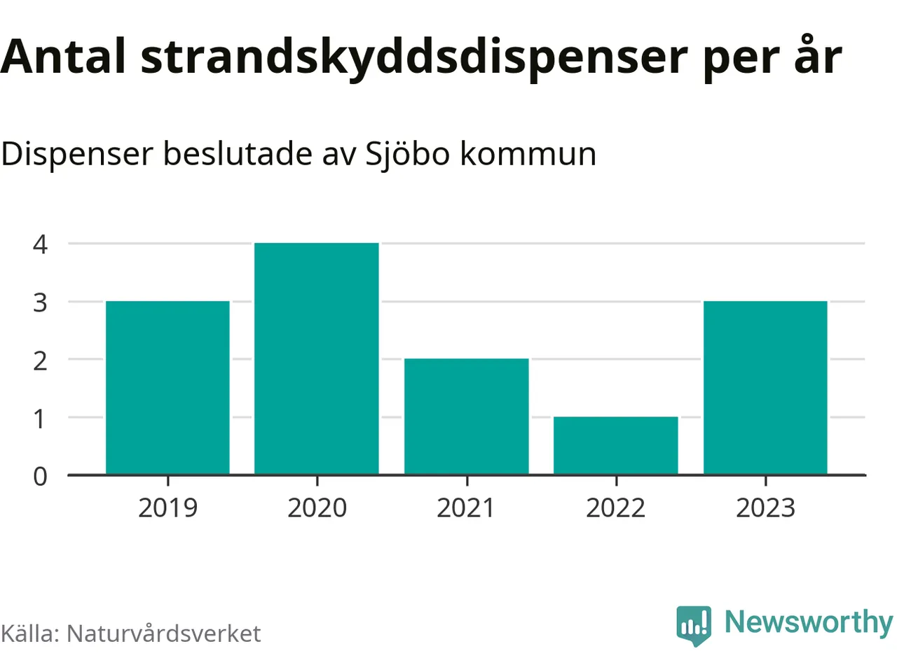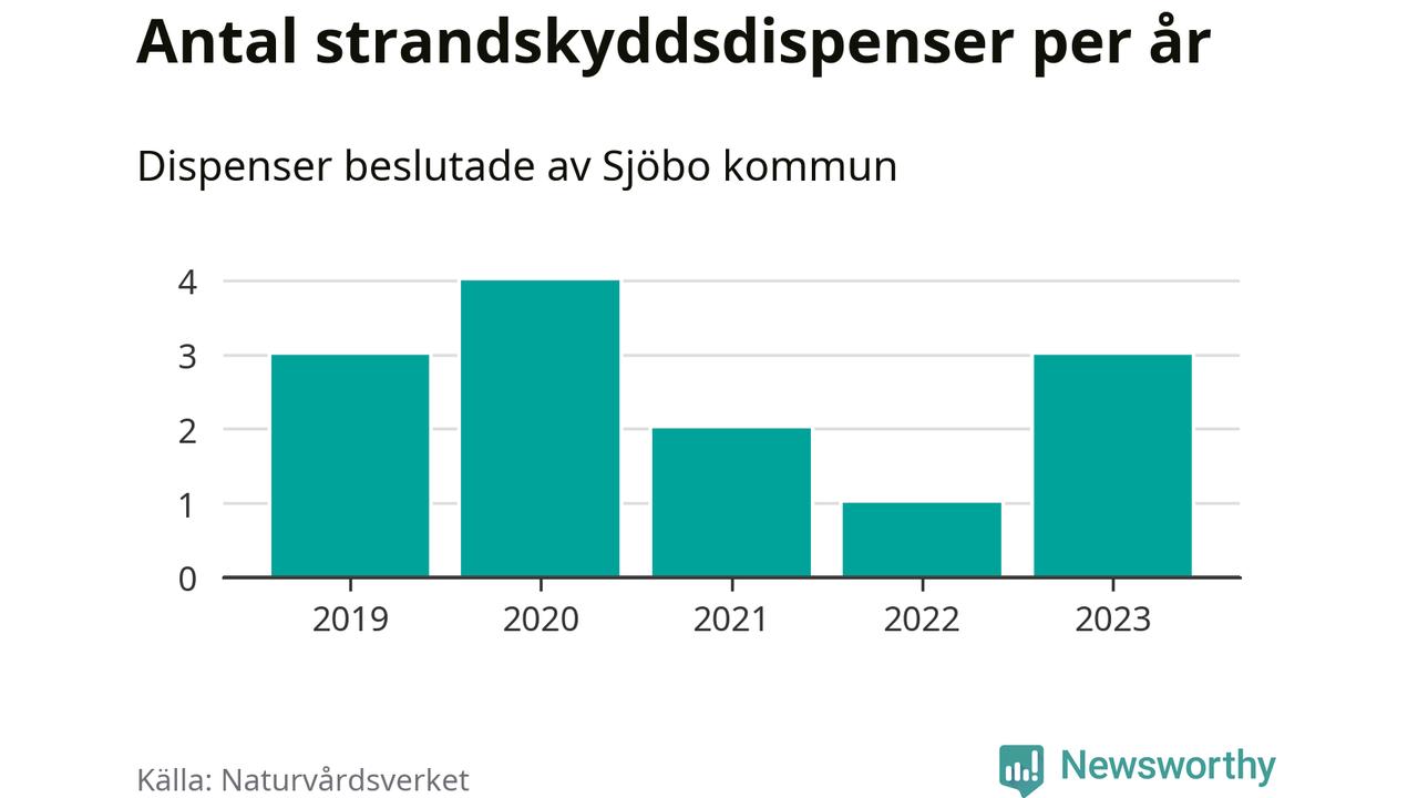 Den som vill bygga nära vatten behöver dispens från strandskyddet, lagstiftningen som ska säkra allmänhetens tillgång till stränderna och bevara livsvillkor för djur och växter. I de flesta fall är det kommunerna som godkänner dispenserna, och under de senaste fem åren har Sjöbo kommun fattat 13 beslut om dispens inom strandskyddat område, enligt den sammanställning Naturvårdsverket varje år gör. Det är färre än i de flesta kommuner i landet. Flest dispenser i Skåne län har godkänts i Kristianstad – 111 stycken.