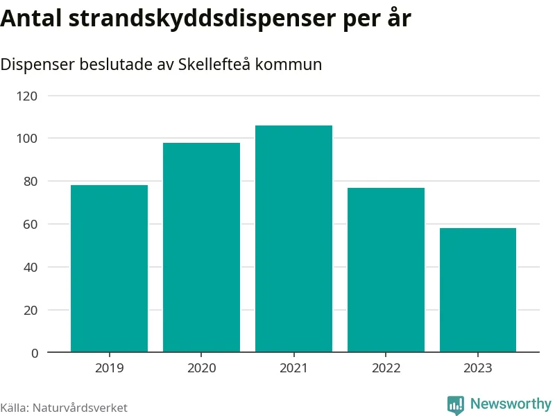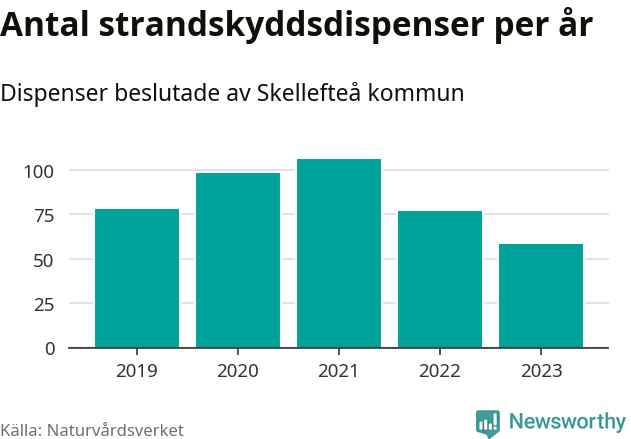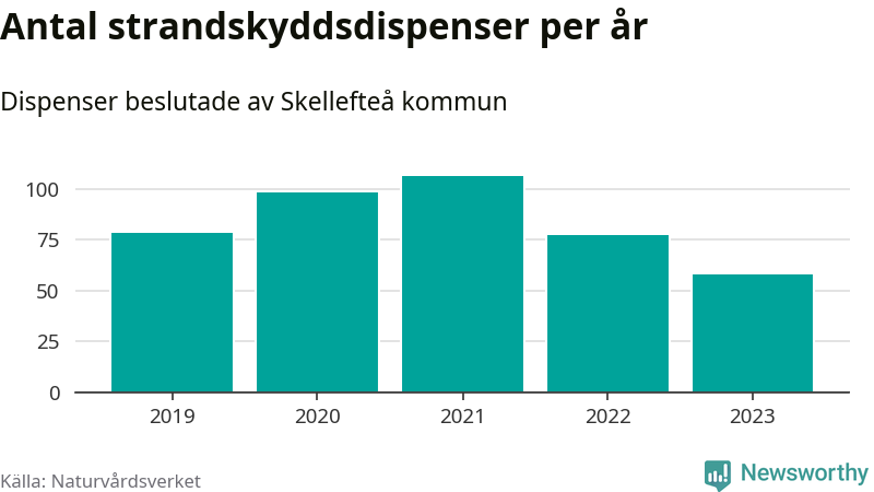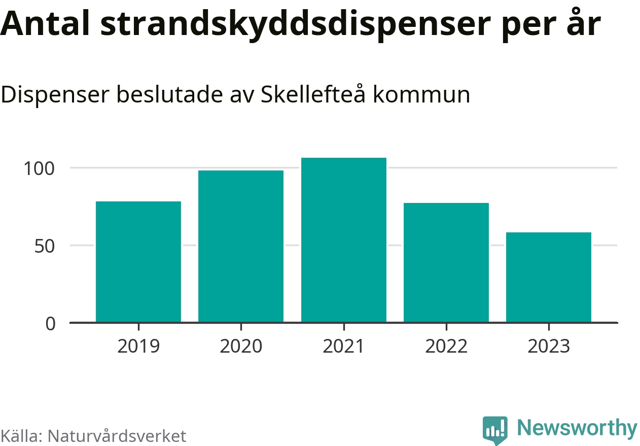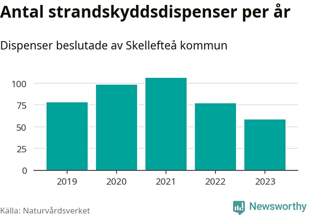 Den som vill bygga nära vatten behöver dispens från strandskyddet, lagstiftningen som ska säkra allmänhetens tillgång till stränderna och bevara livsvillkor för djur och växter. I de flesta fall är det kommunerna som godkänner dispenserna, och under de senaste fem åren har Skellefteå kommun fattat 417 beslut för totalt 538 åtgärder inom strandskyddat område, enligt den sammanställning Naturvårdsverket varje år gör. Det är fjärde flest av alla kommuner i landet och flest av kommunerna i Västerbottens län.