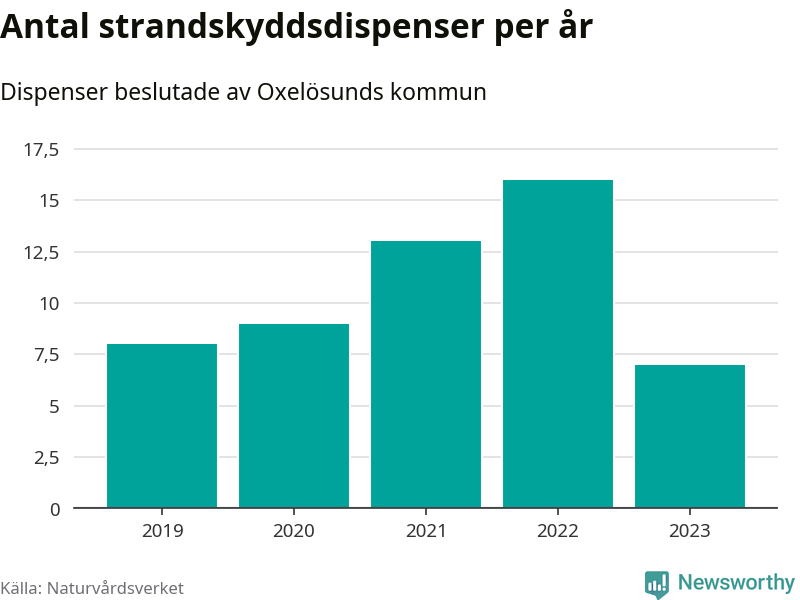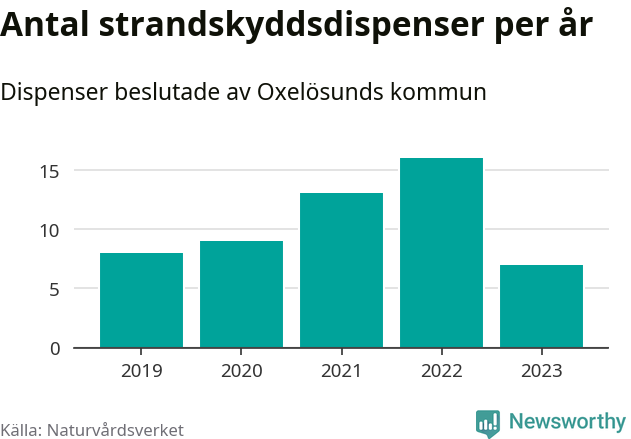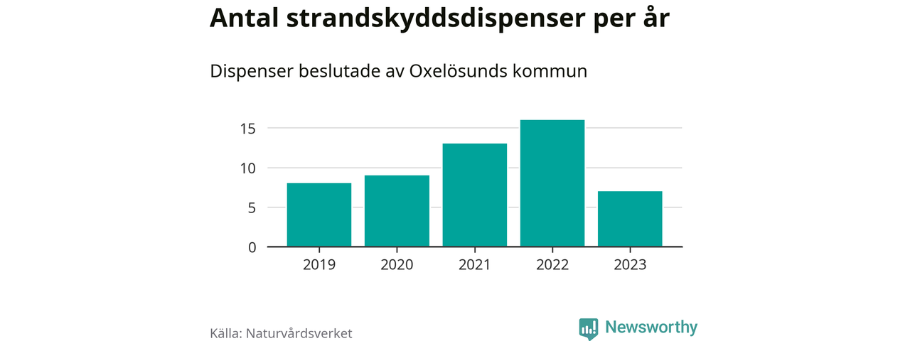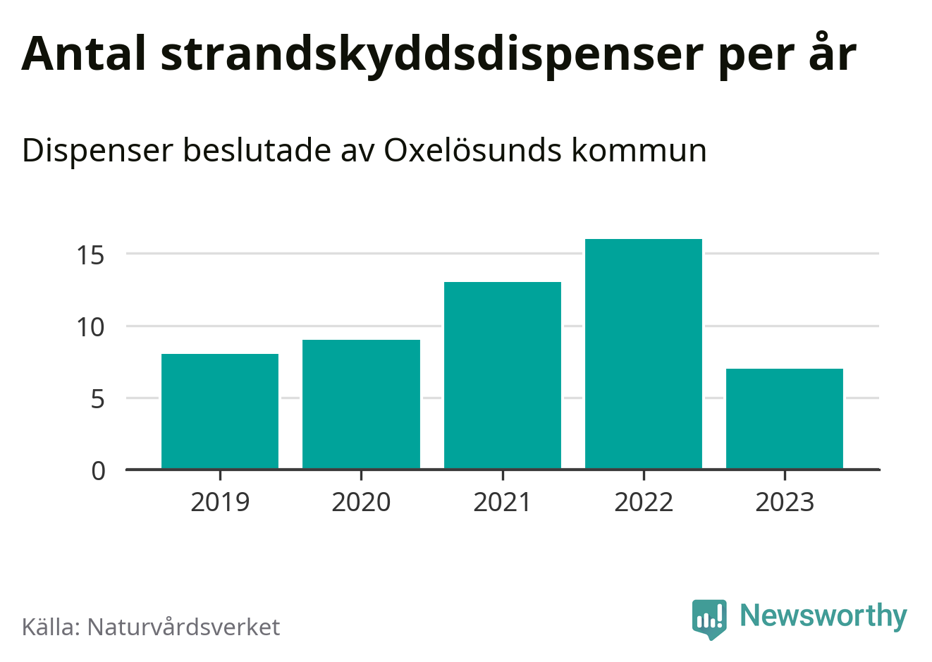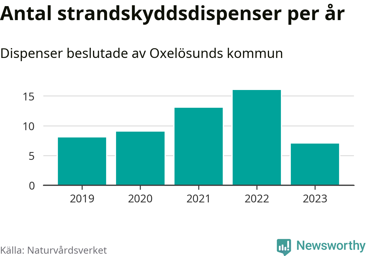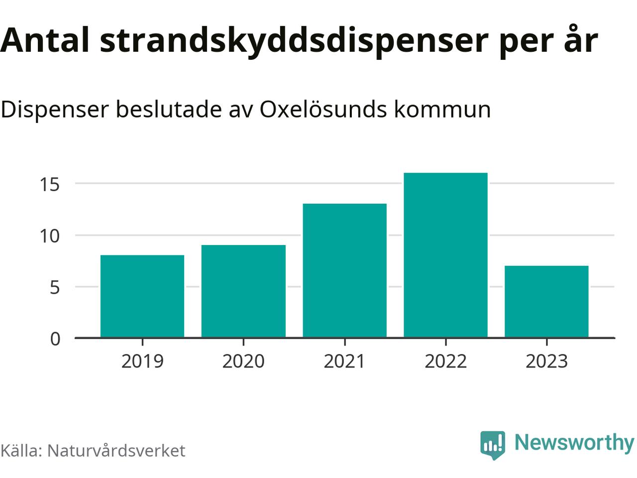 Den som vill bygga nära vatten behöver dispens från strandskyddet, lagstiftningen som ska säkra allmänhetens tillgång till stränderna och bevara livsvillkor för djur och växter. I de flesta fall är det kommunerna som godkänner dispenserna, och under de senaste fem åren har Oxelösunds kommun fattat 53 beslut för totalt 73 åtgärder inom strandskyddat område, enligt den sammanställning Naturvårdsverket varje år gör. Det är inte en siffra som sticker ut särskilt jämfört med andra kommuner. Flest dispenser i Södermanlands län har godkänts i Eskilstuna – 157 stycken.