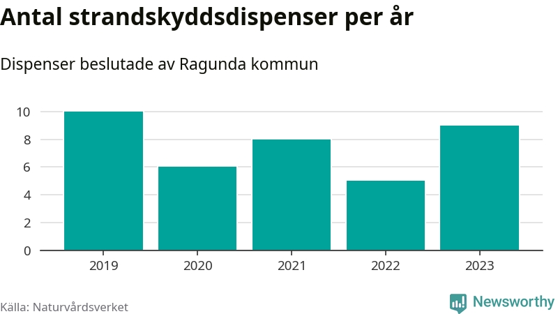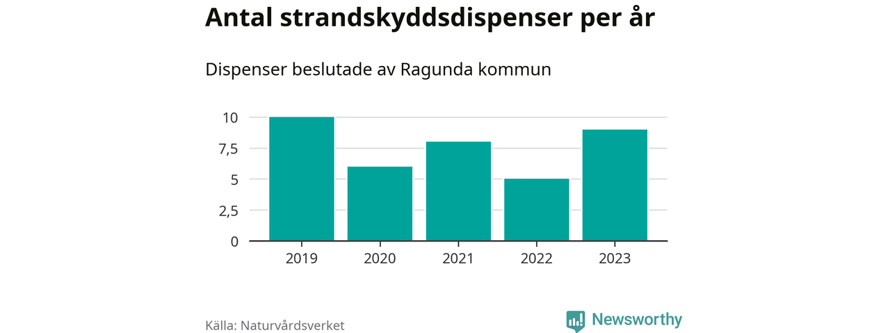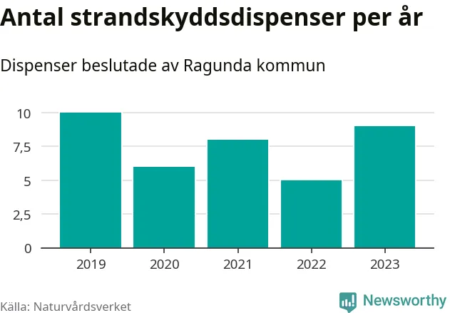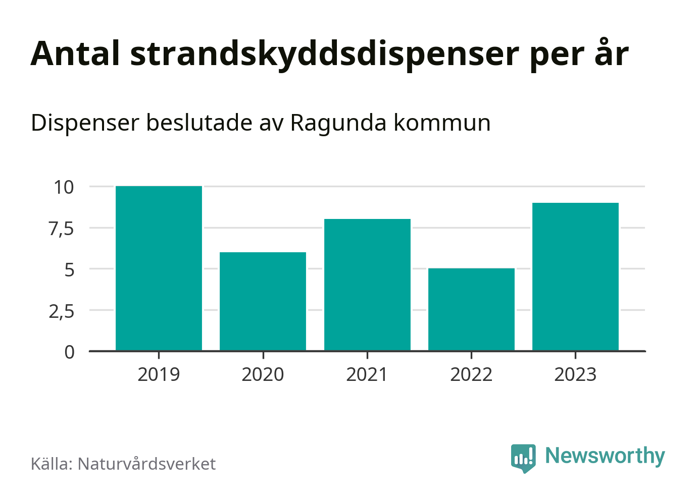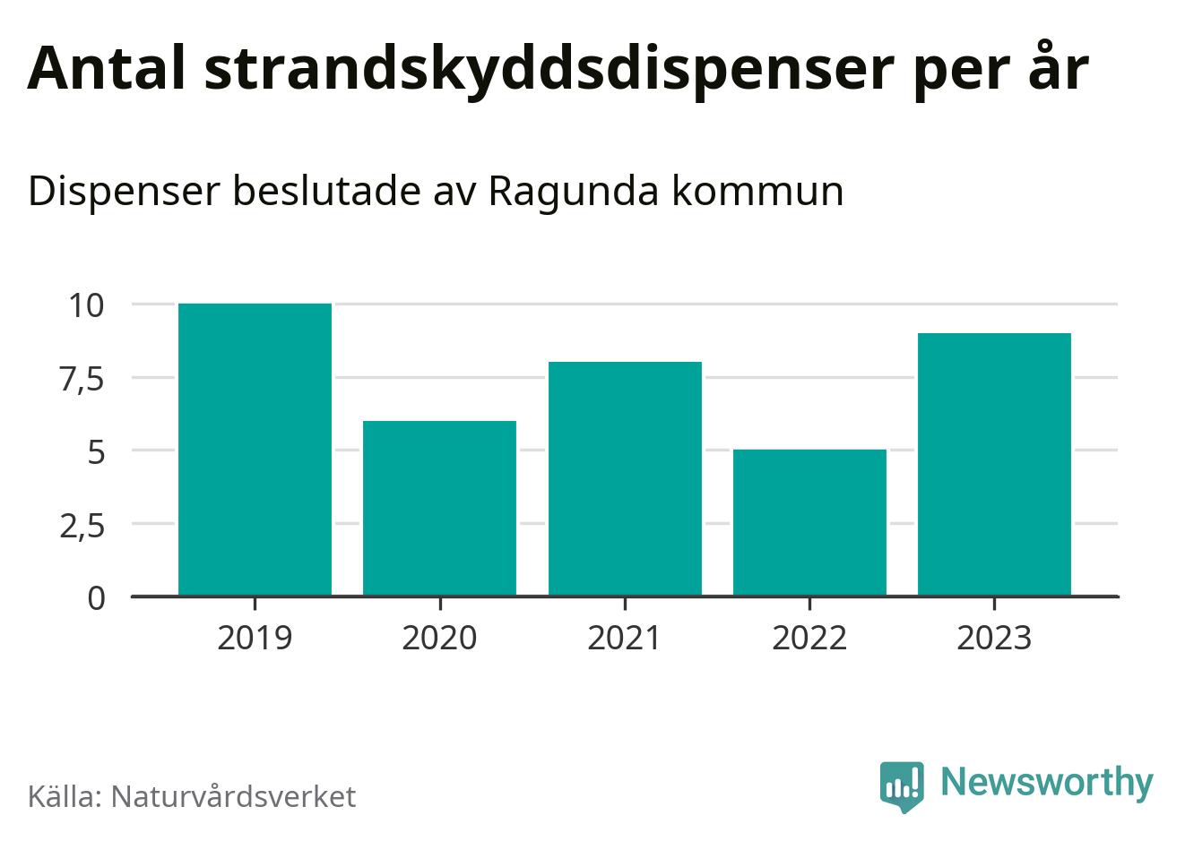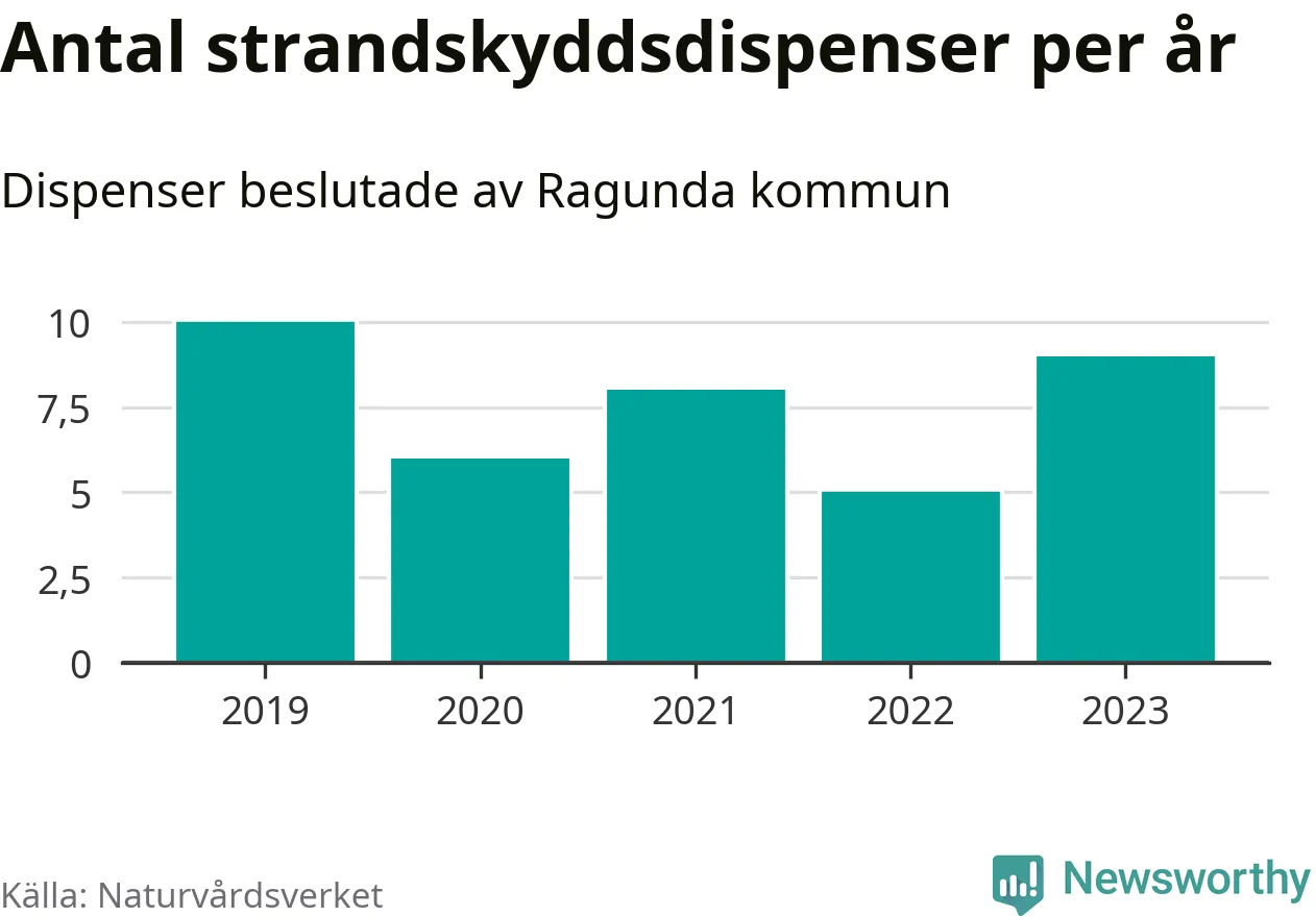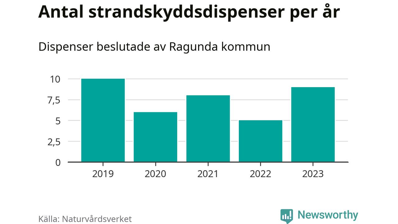 Den som vill bygga nära vatten behöver dispens från strandskyddet, lagstiftningen som ska säkra allmänhetens tillgång till stränderna och bevara livsvillkor för djur och växter. I de flesta fall är det kommunerna som godkänner dispenserna, och under de senaste fem åren har Ragunda kommun fattat 38 beslut för totalt 49 åtgärder inom strandskyddat område, enligt den sammanställning Naturvårdsverket varje år gör. Det är inte en siffra som sticker ut särskilt jämfört med andra kommuner. Flest dispenser i Jämtlands län har godkänts i Åre – 150 stycken.